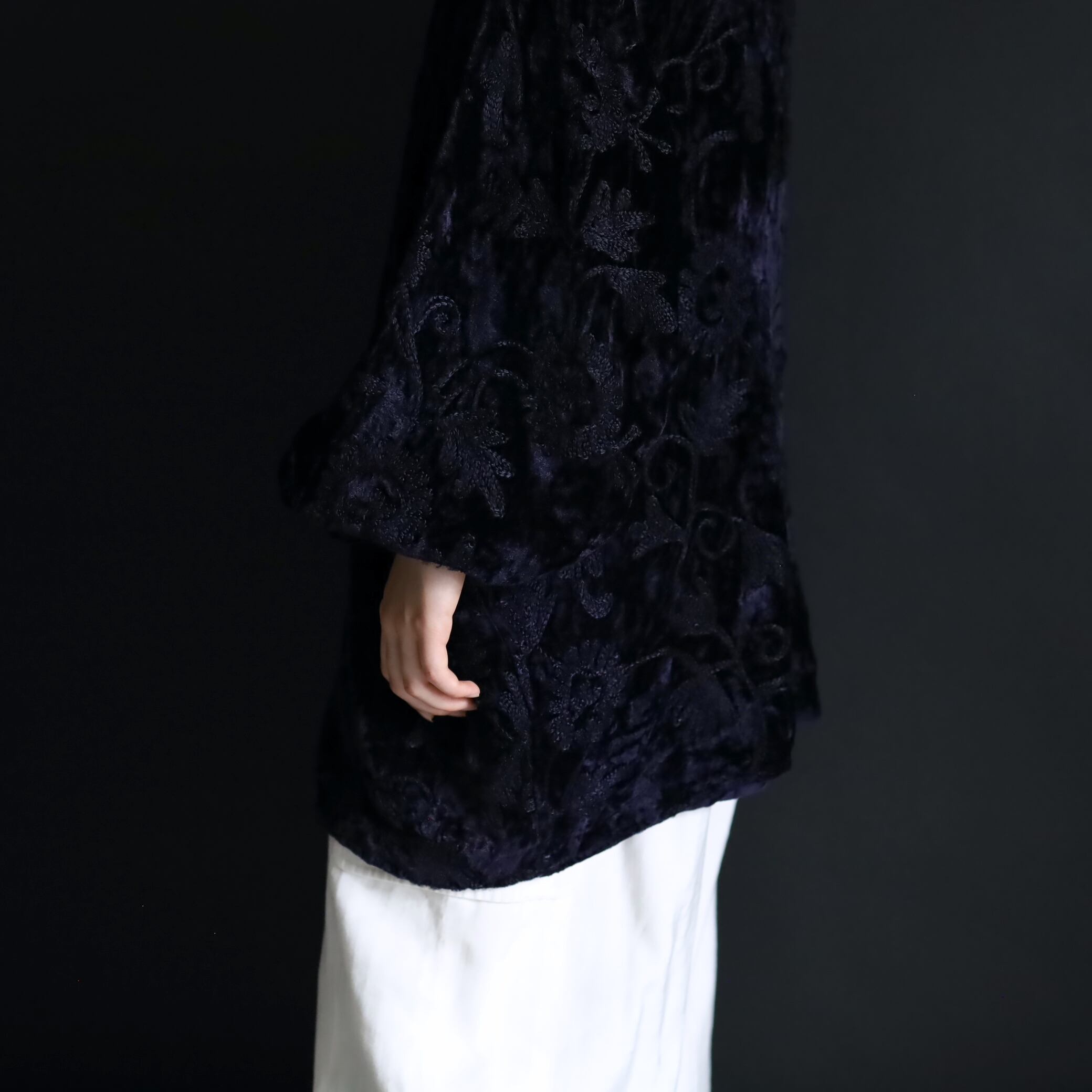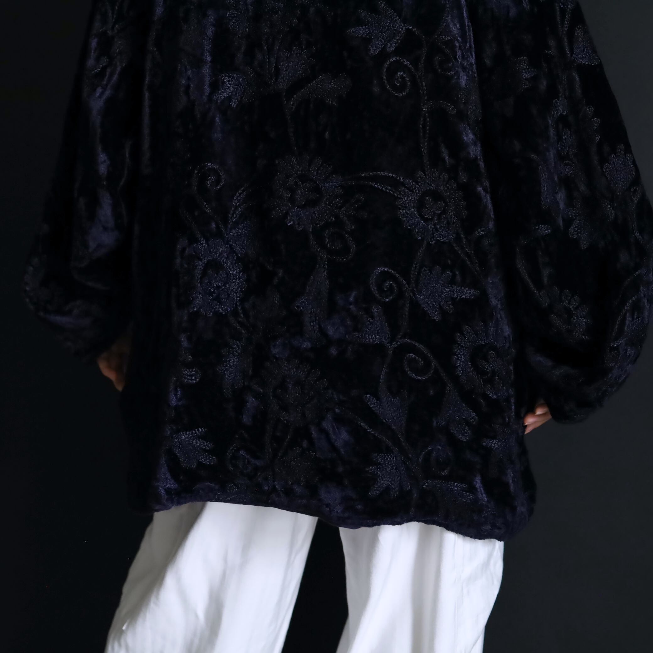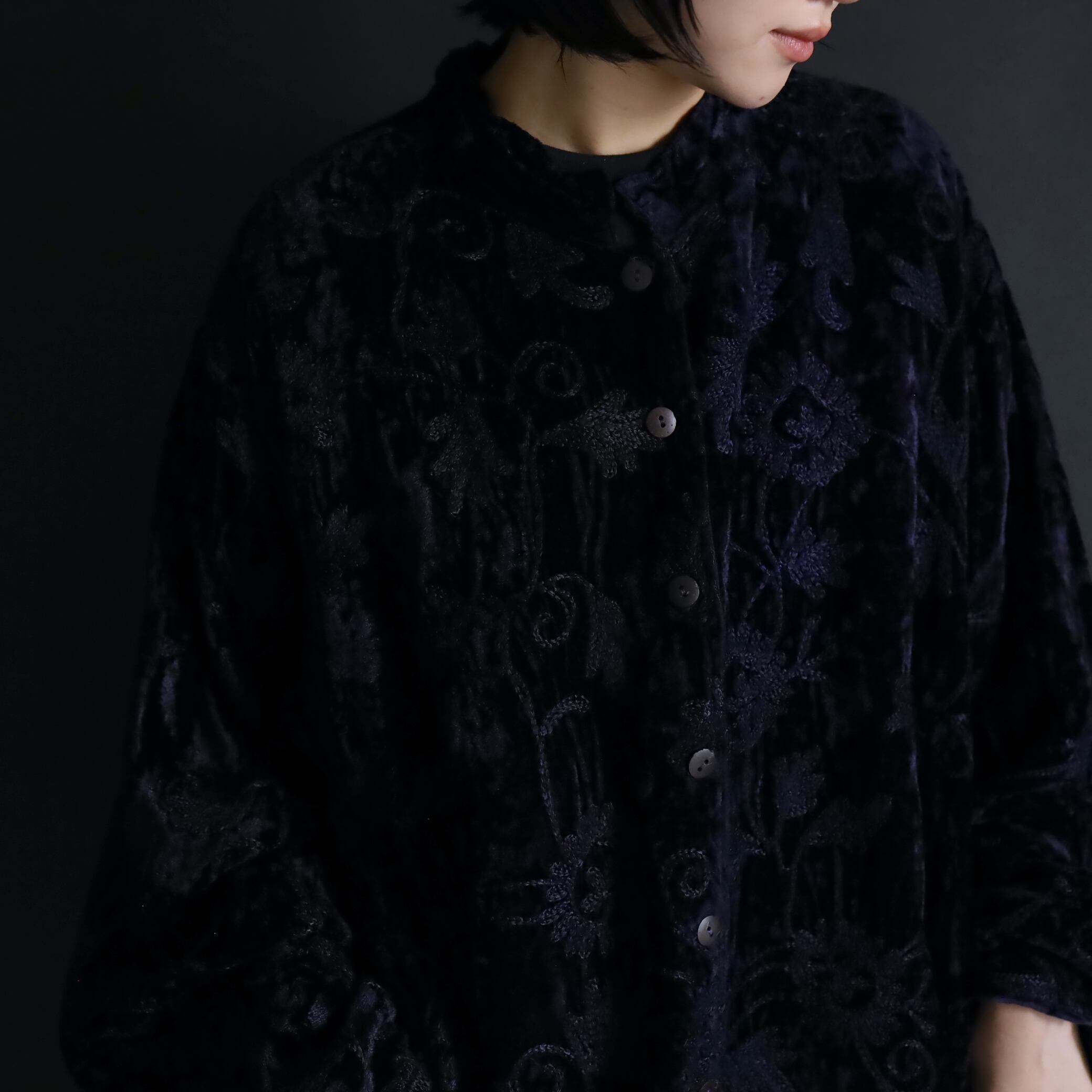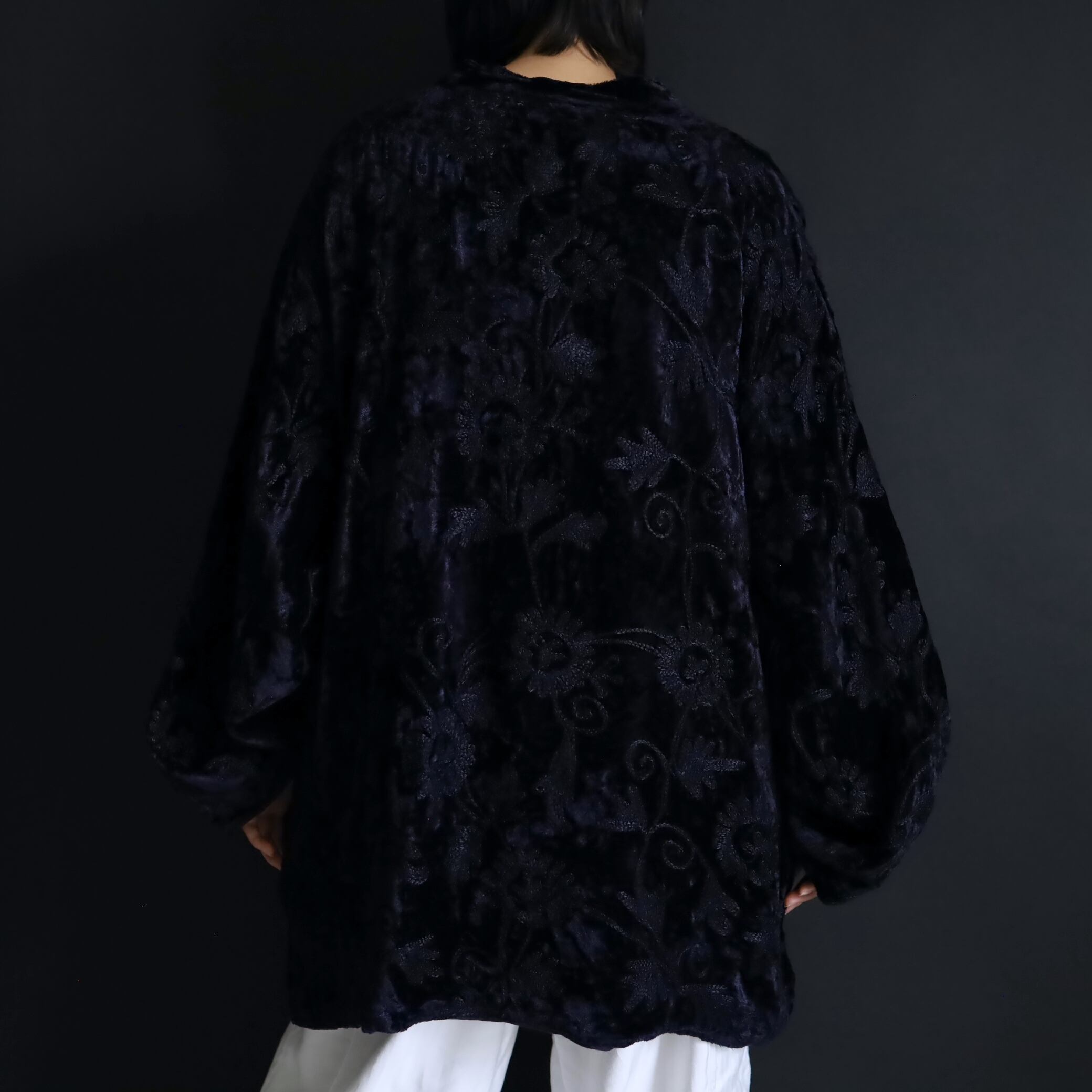 総刺繍でデザインされたスタンドカラージャケット.