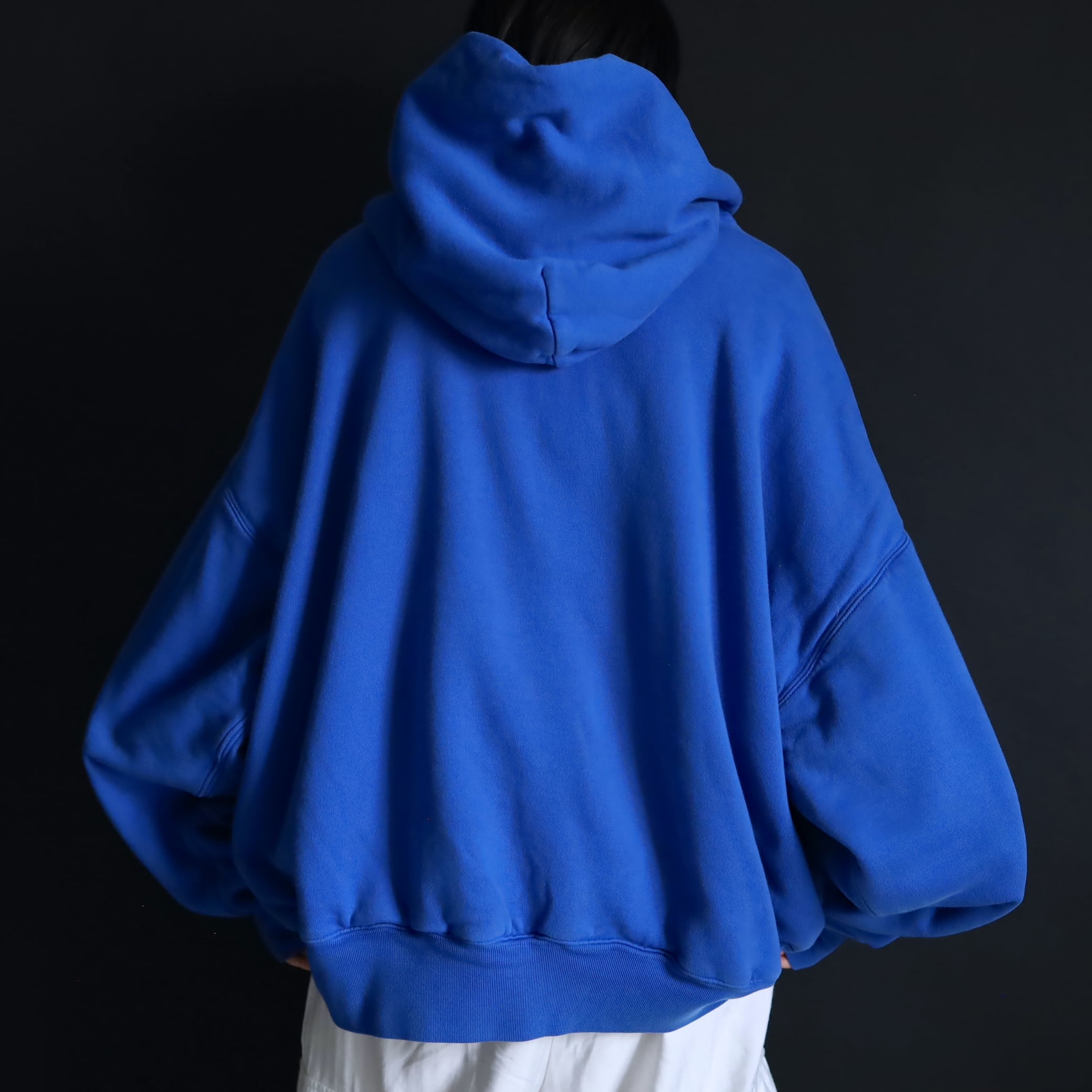 ドロップショルダーデザインに加えて広い身幅や袖幅で,とにかくボリューム満点なシルエット.