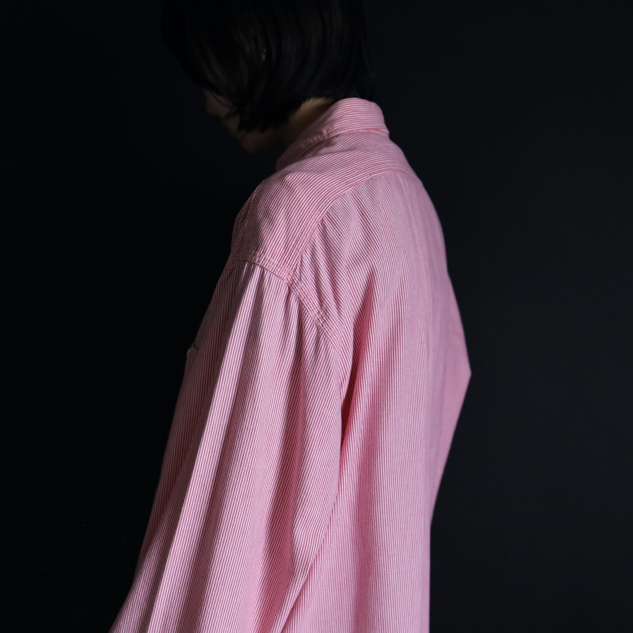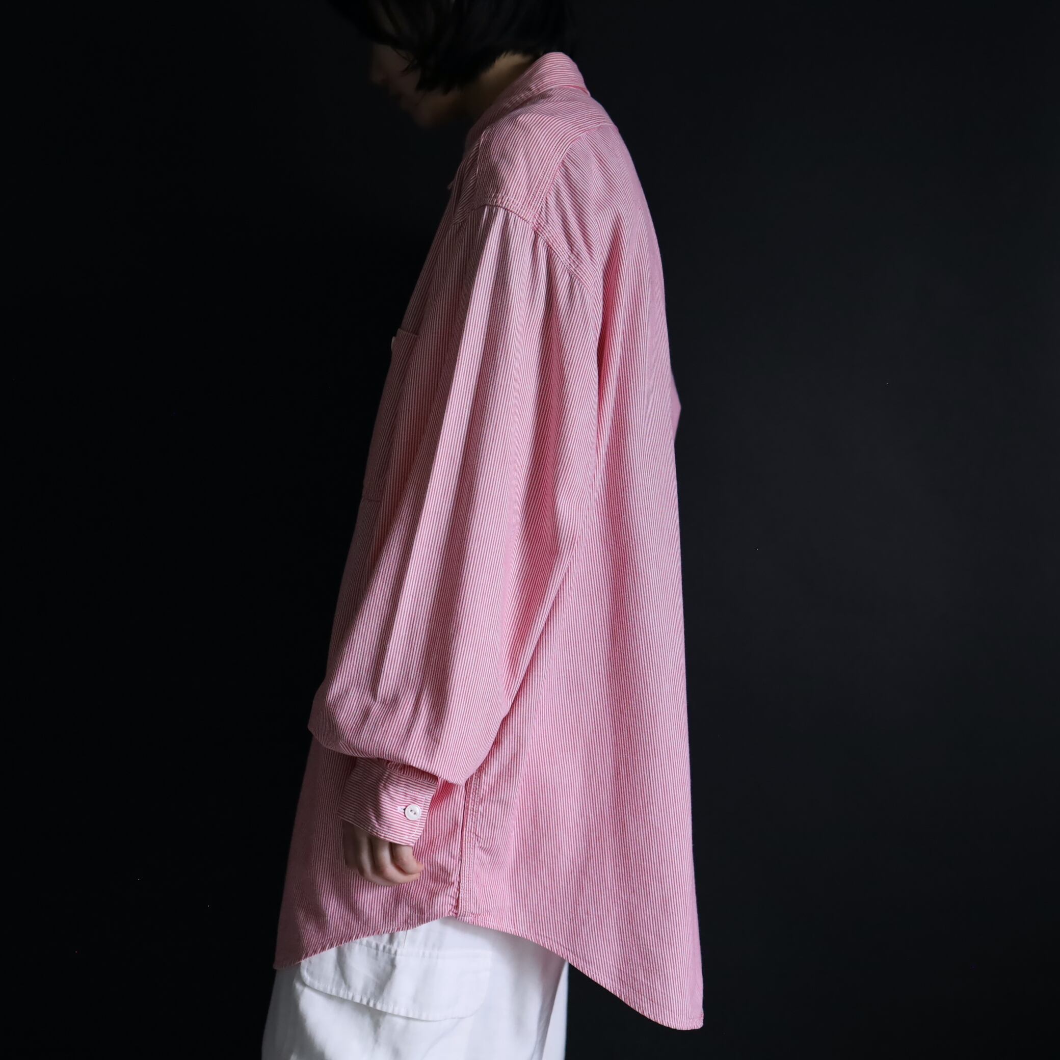 ホワイトとピンクによるヒッコリーストライプ.