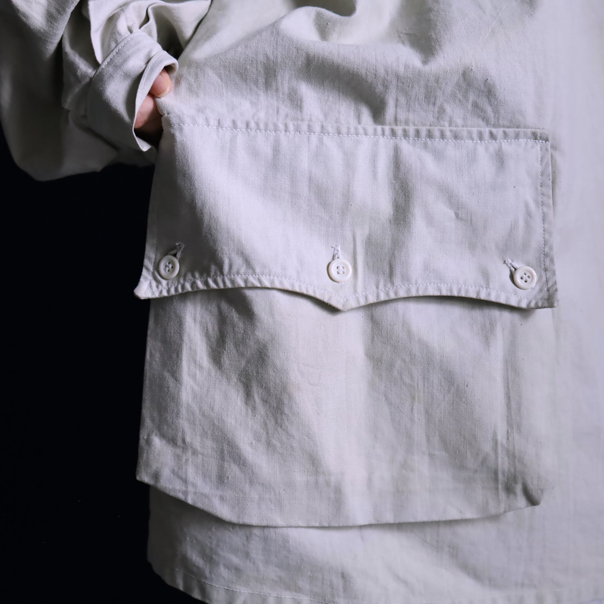 生成りゆえに光沢感のないスモーキーな表情で,ミリタリー感があまり強くないという印象.