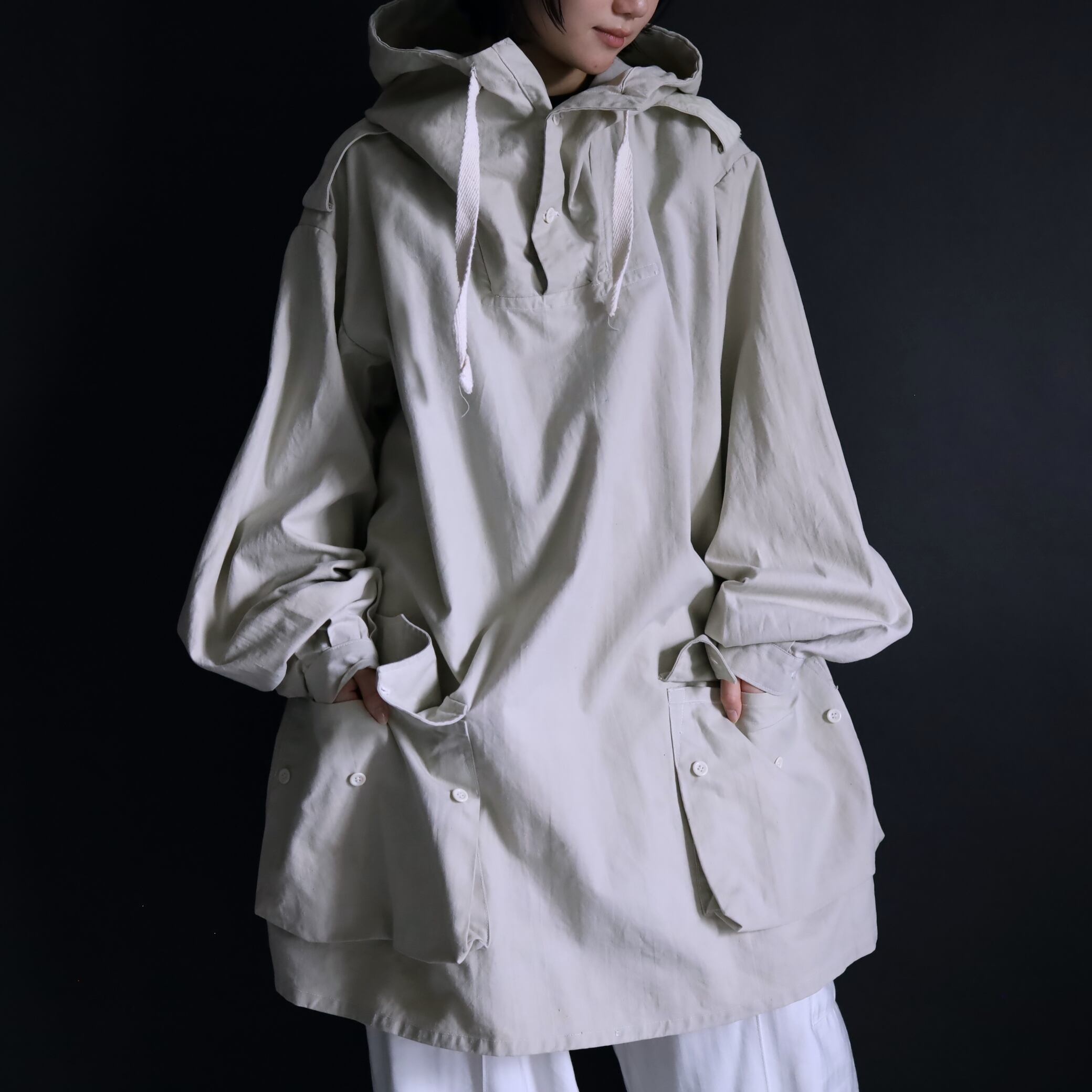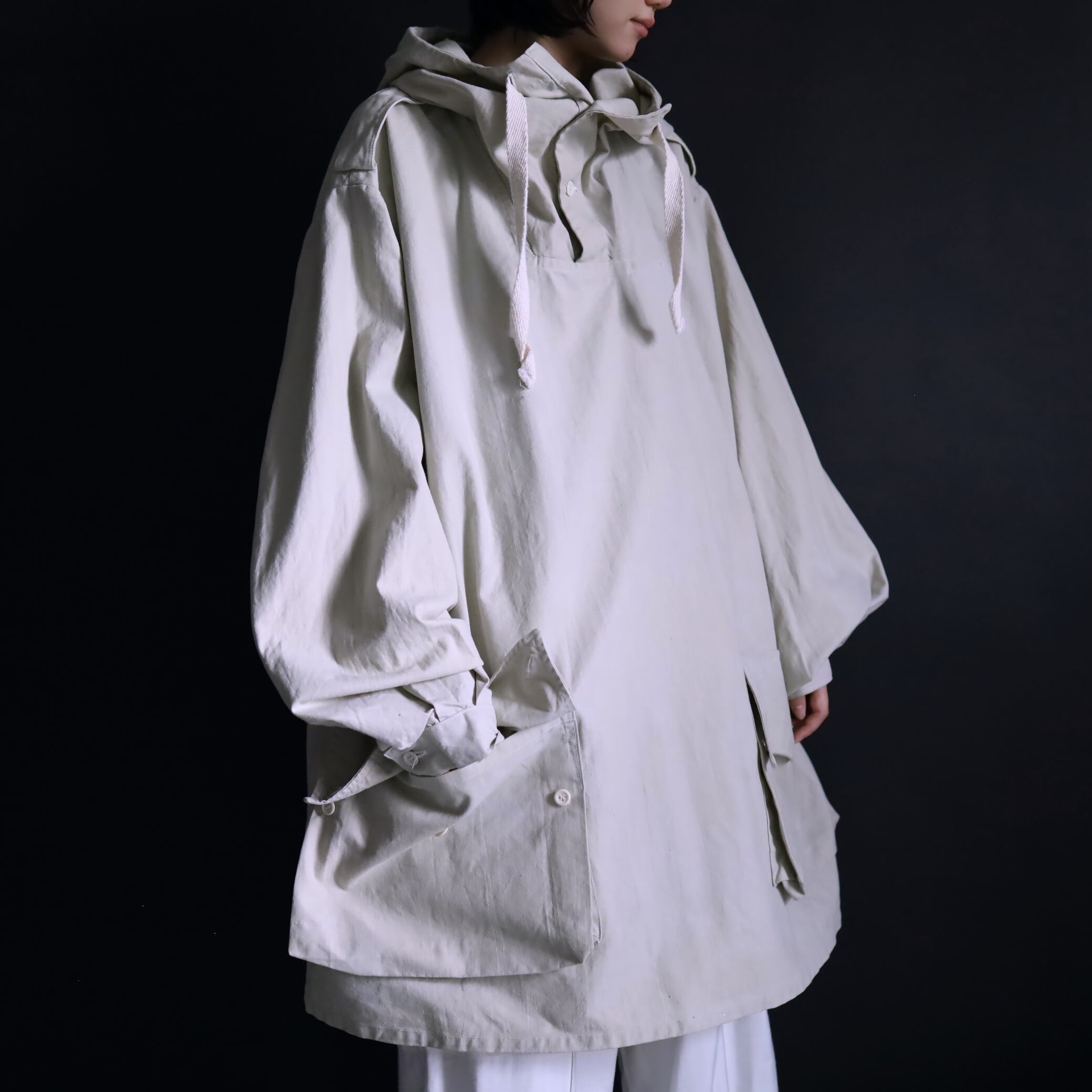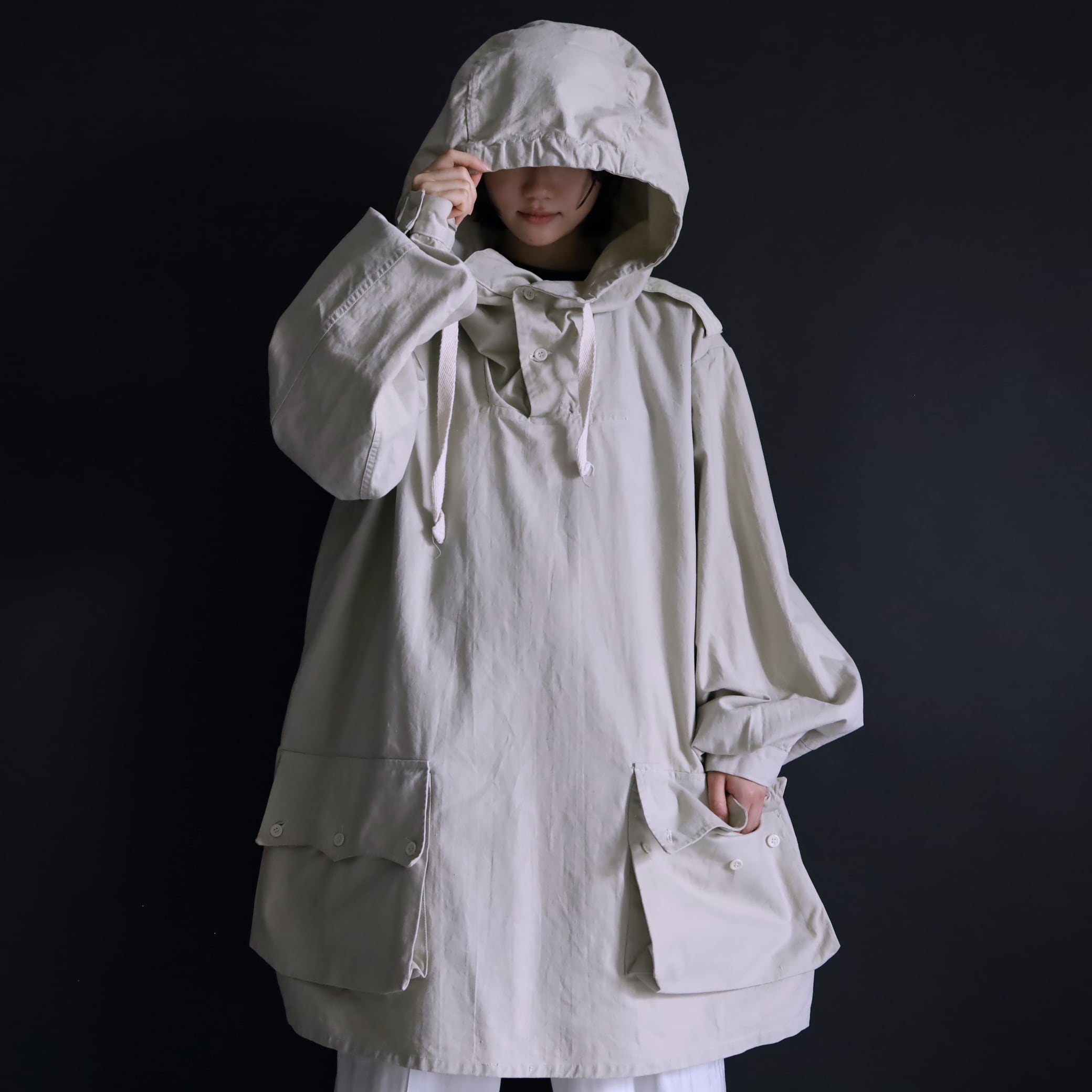 降雪地帯での雪のカモフラージュとして用いられ,ジャケットの上に被るオーバージャケットのため,基本スペックが大きく作られています.