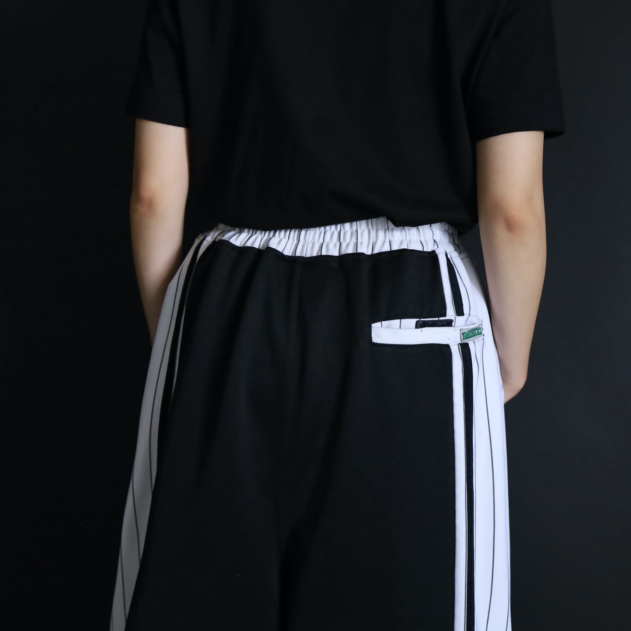 渡り幅から裾までもたっぷりとゆとりがあり,トラックパンツの中でも類稀なワイドシルエット.