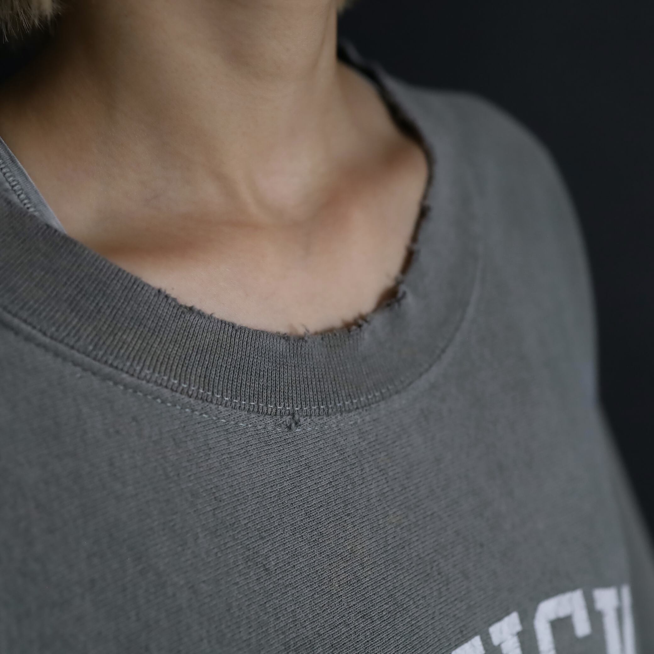 全体の色のフェード感,リブの擦れ感など,いい育ち方をしたグランジテイストな一枚.