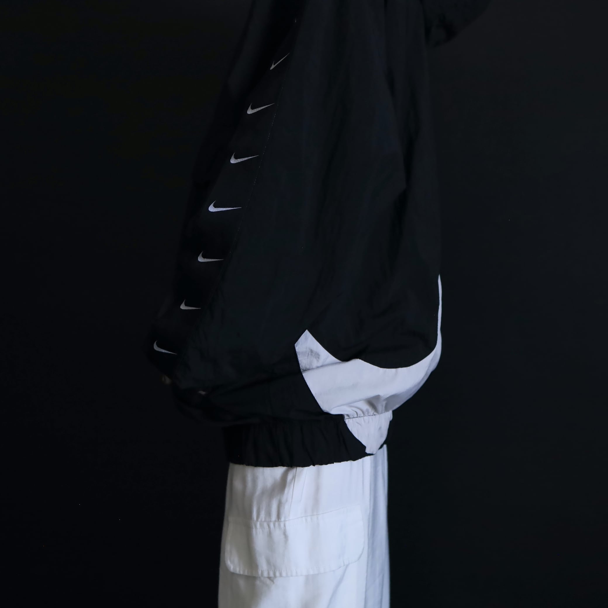 肩から袖先にかけてブラックのライトが走り,ライン上には小さなスウッシュロゴが並びます.