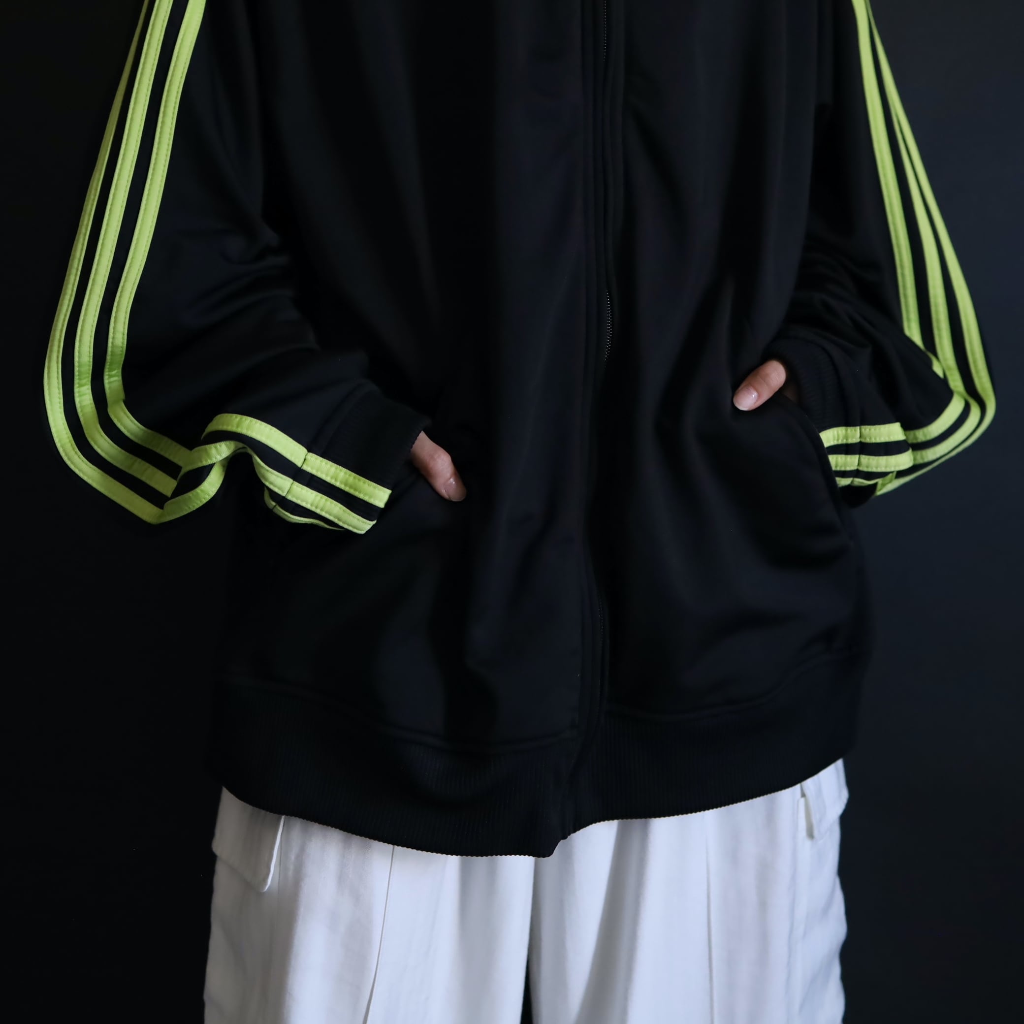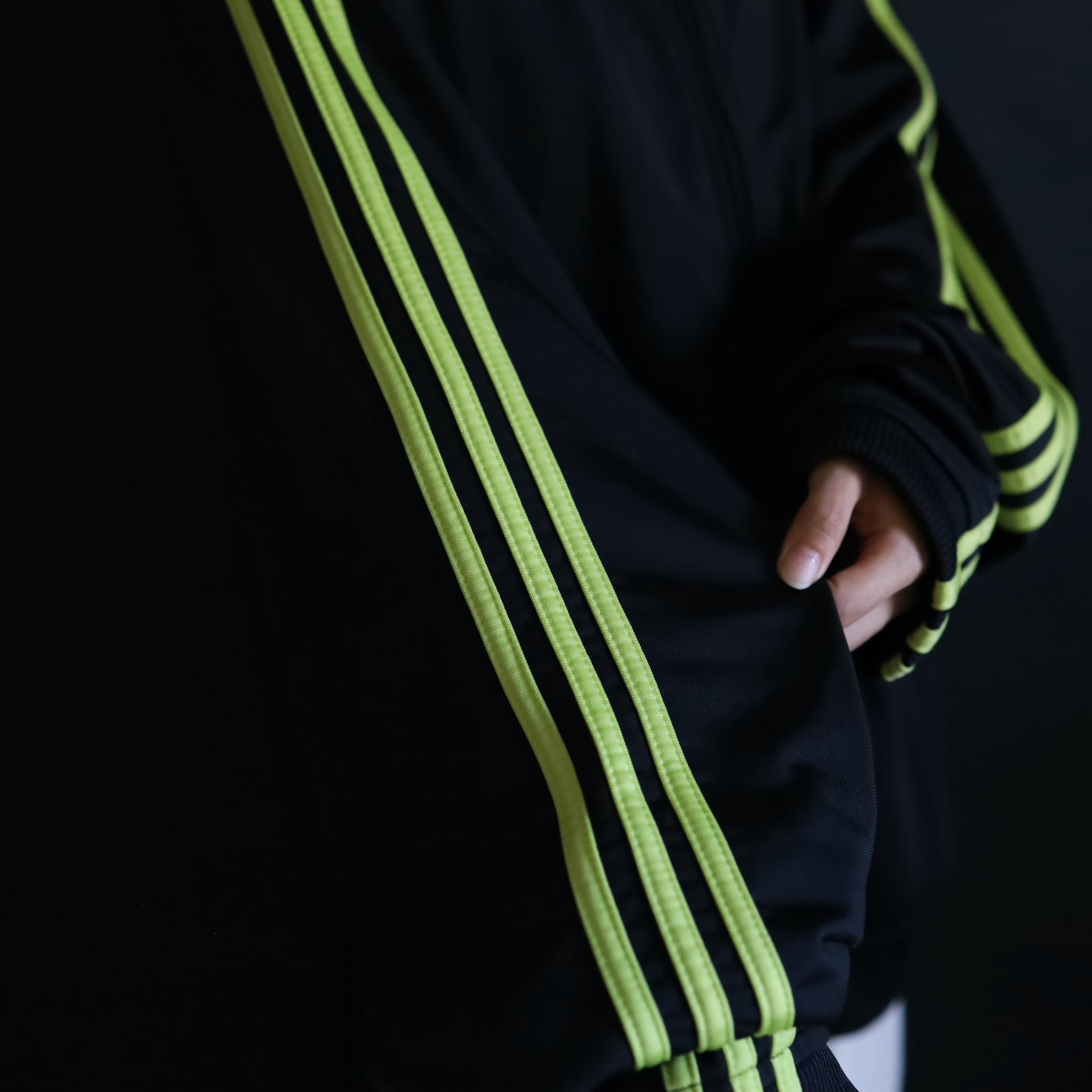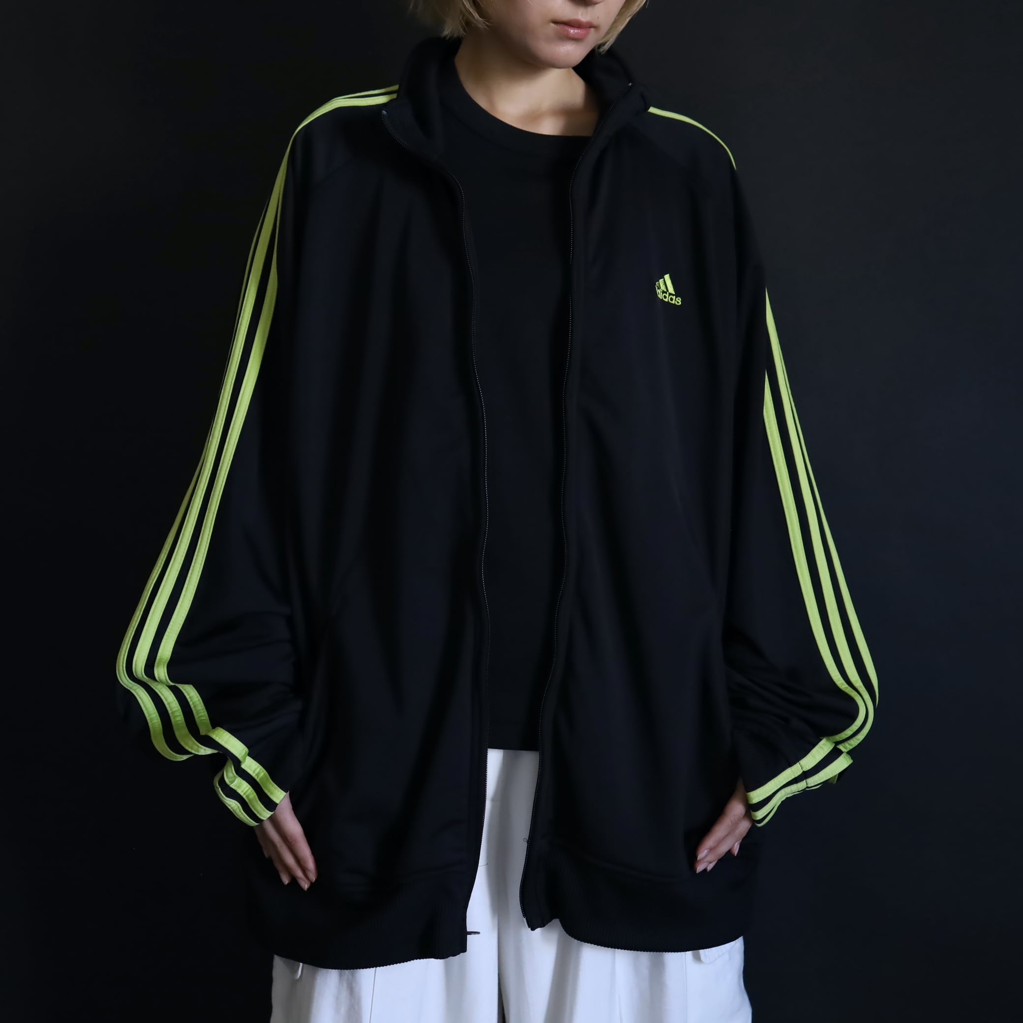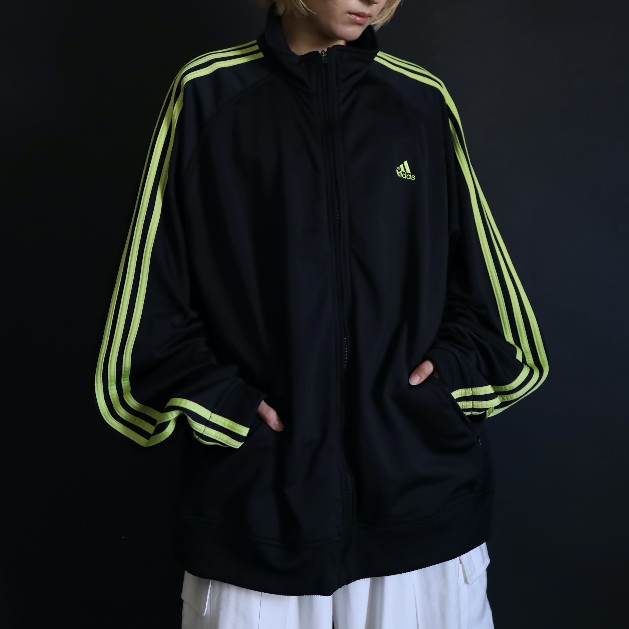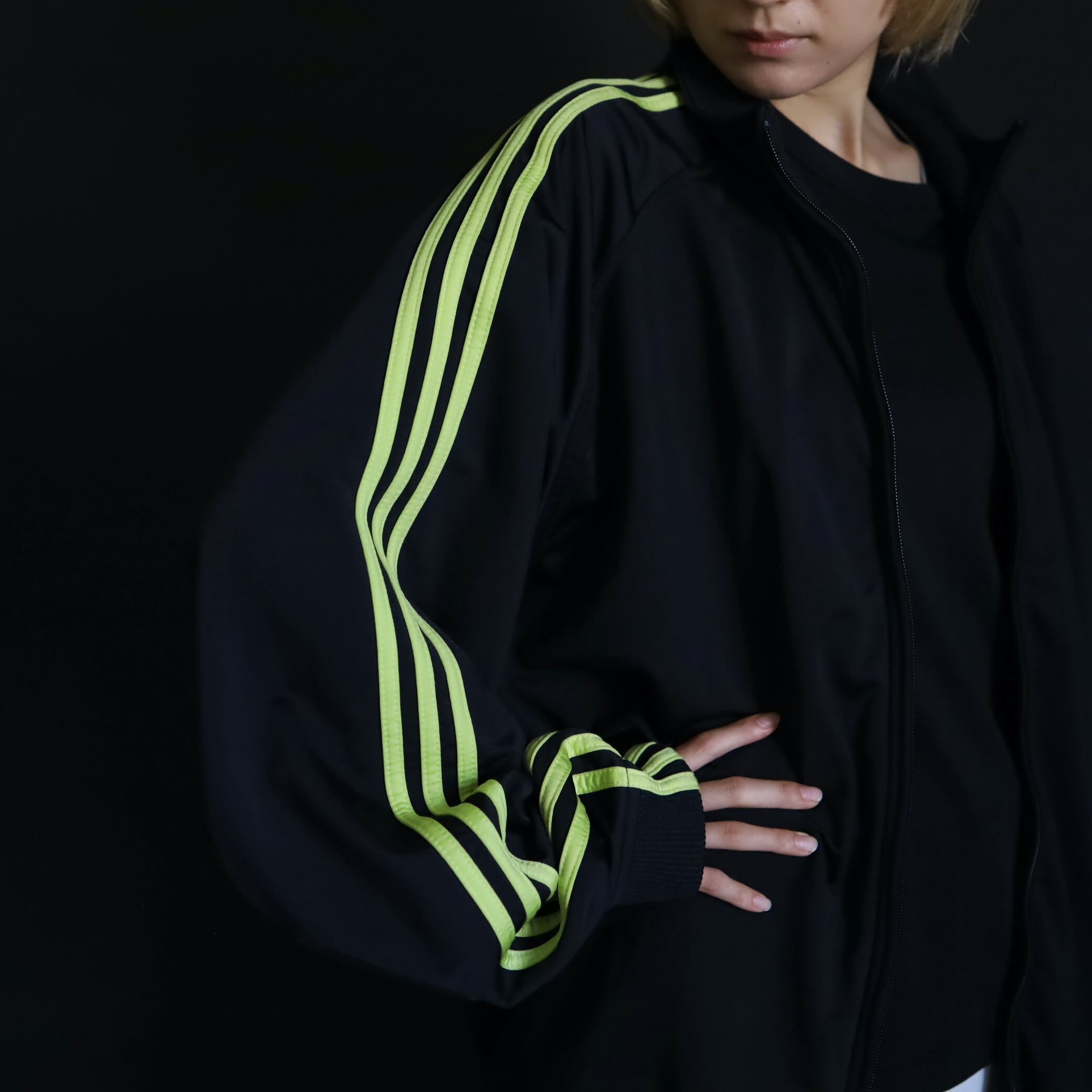 肩から袖にかけてはお馴染みの3ライン,胸にはパフォーマンスロゴ刺繍.