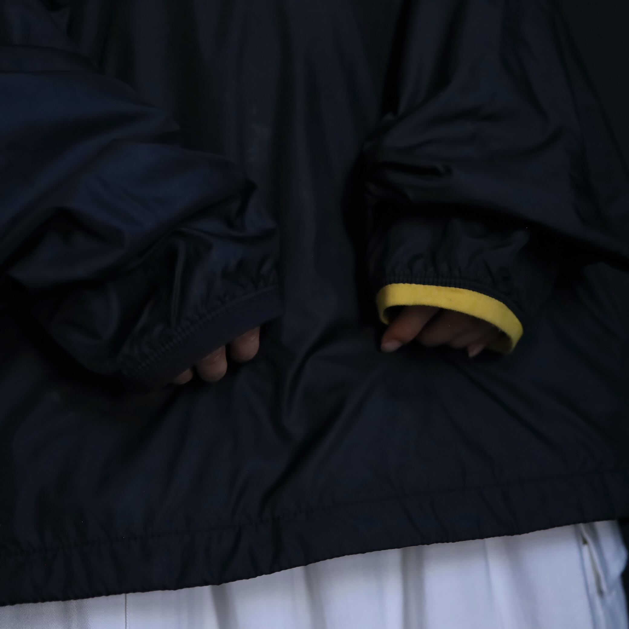 袖先のリブの色が左右で黒,黄と異なるのもポイント.