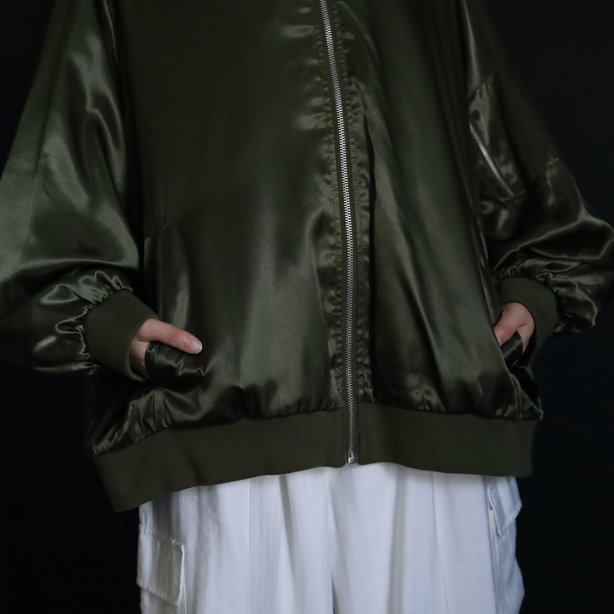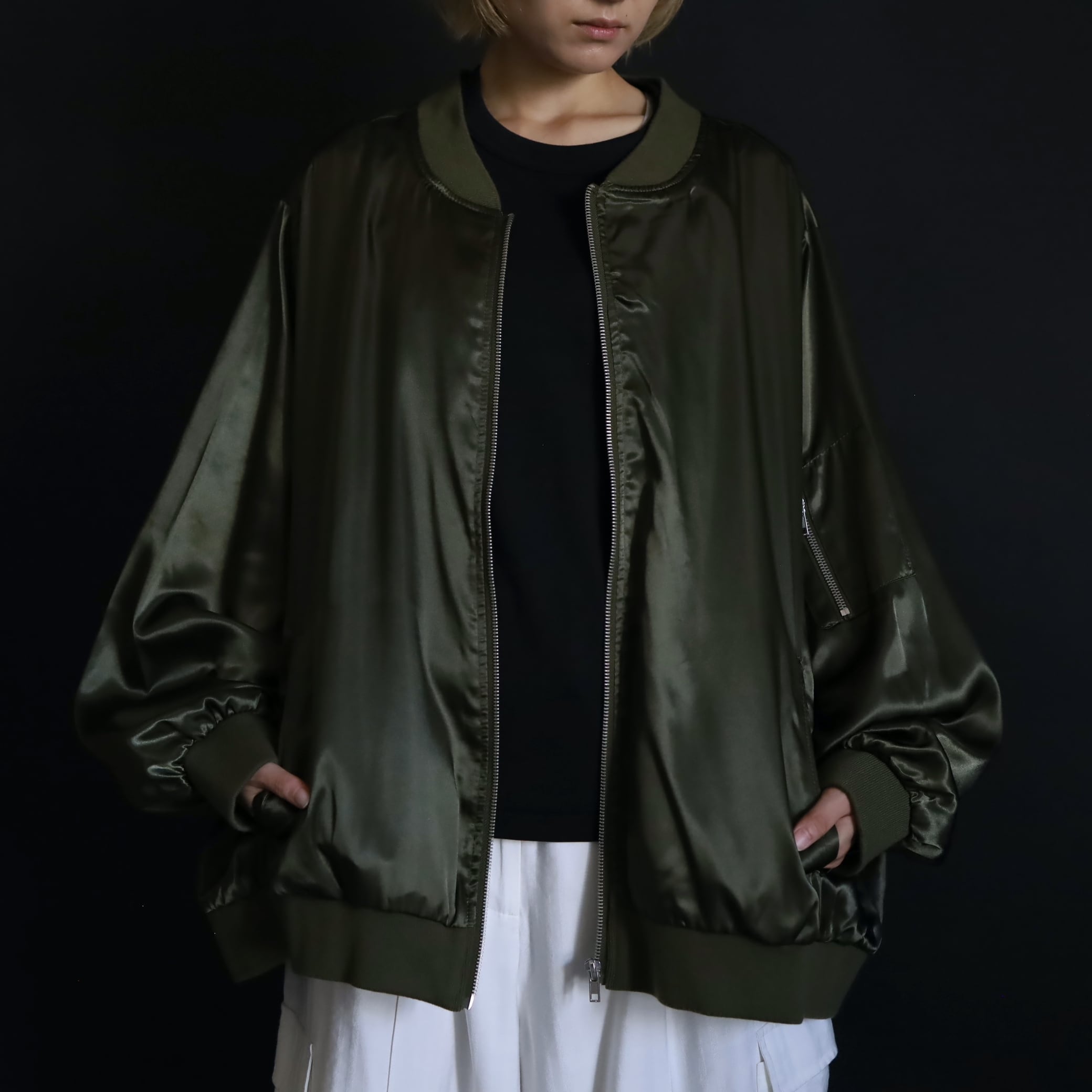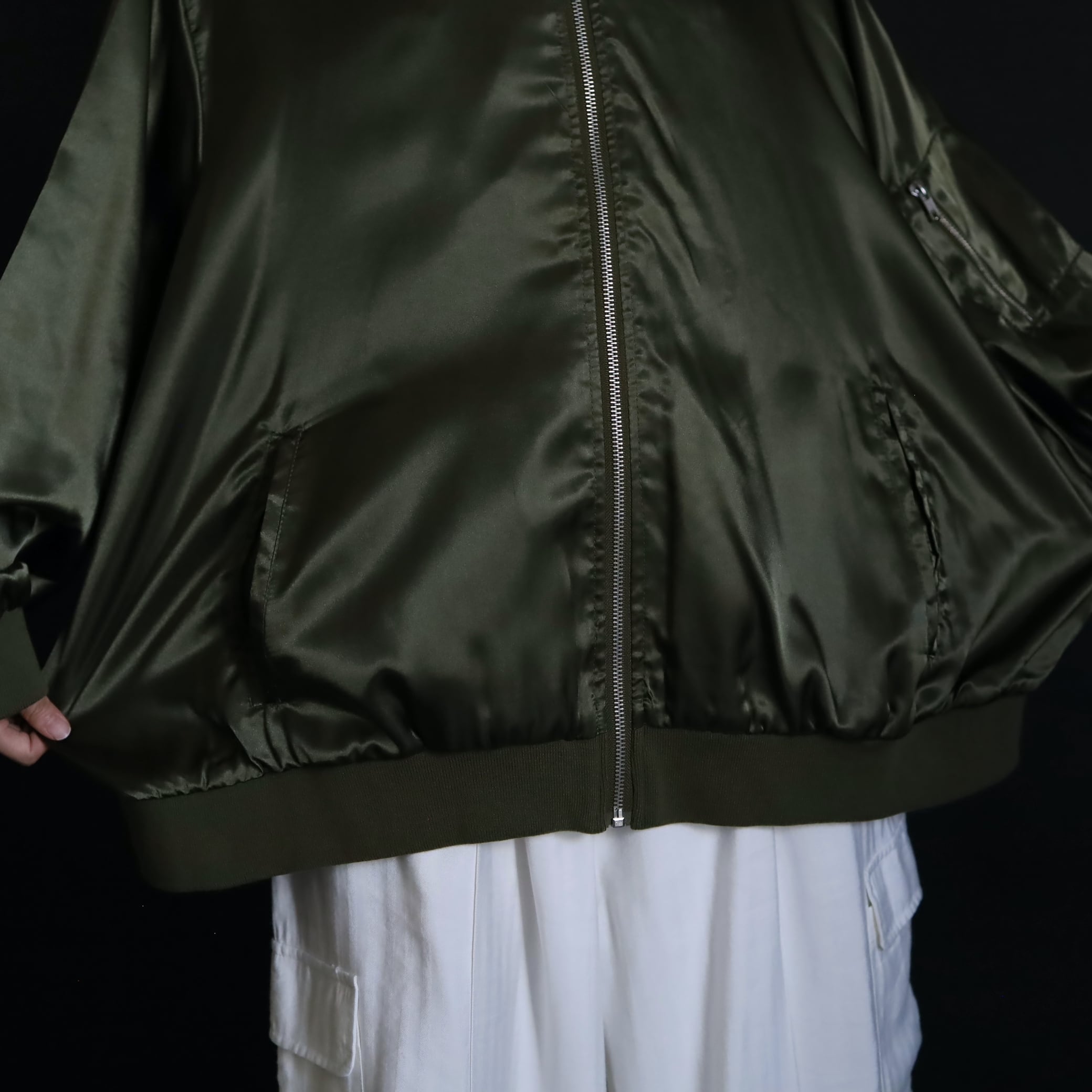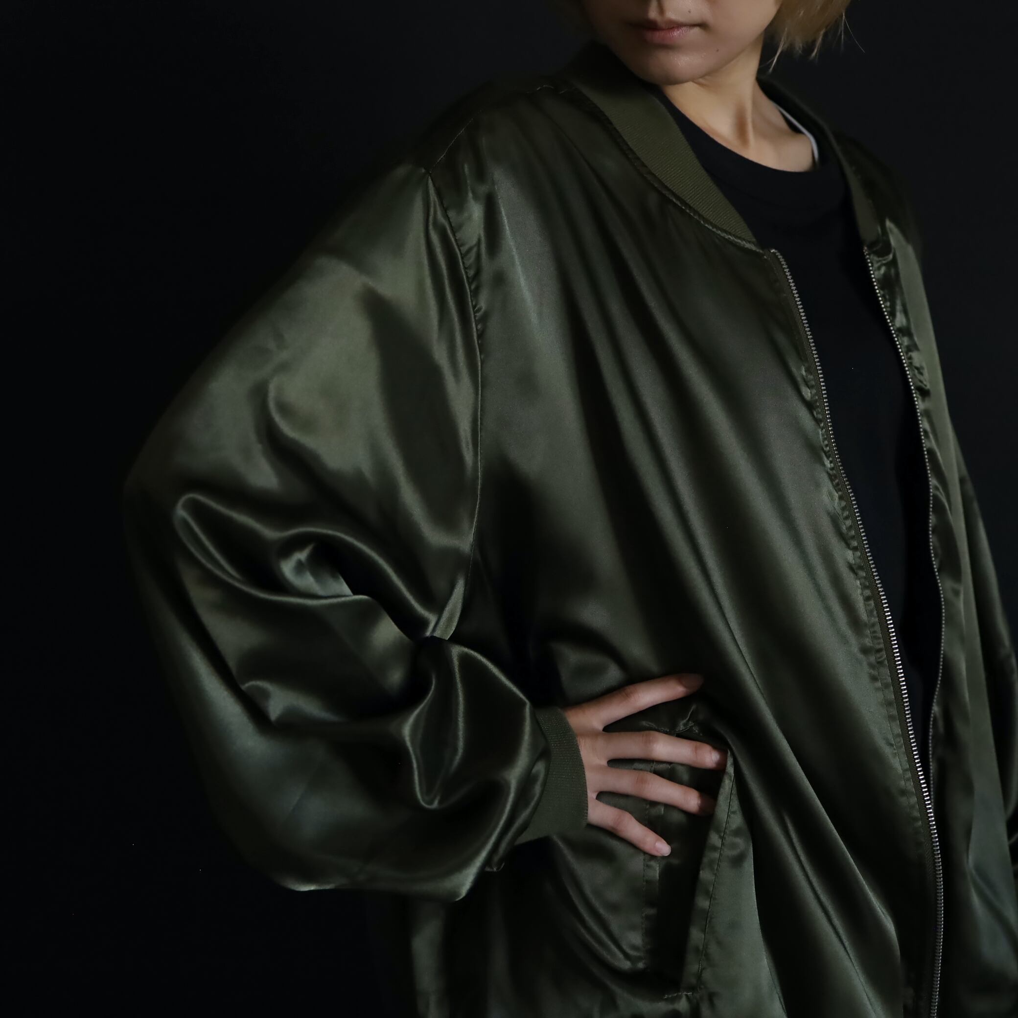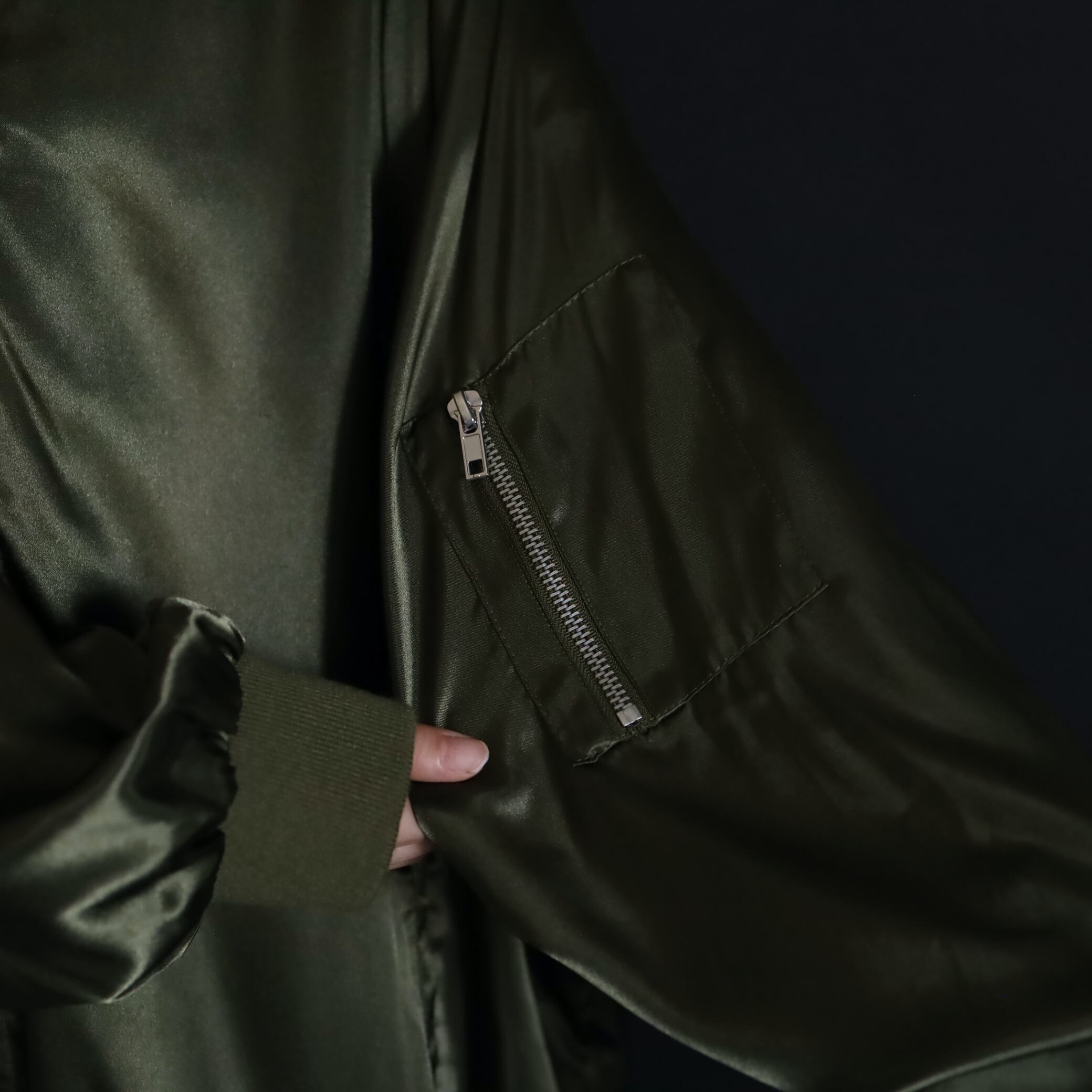 滑らかで落ち感のある分ボリュームはないですが,シガレットポケット付きの所謂MA-1タイプ.