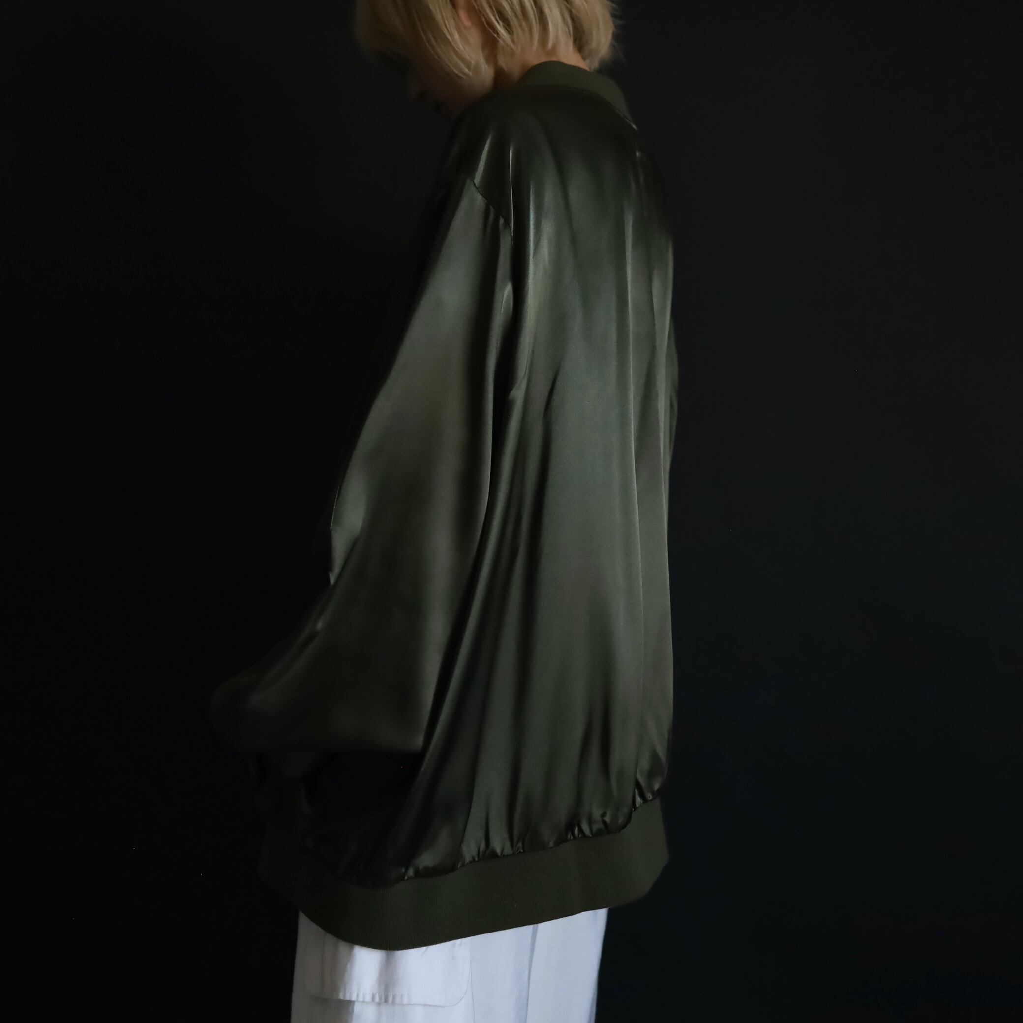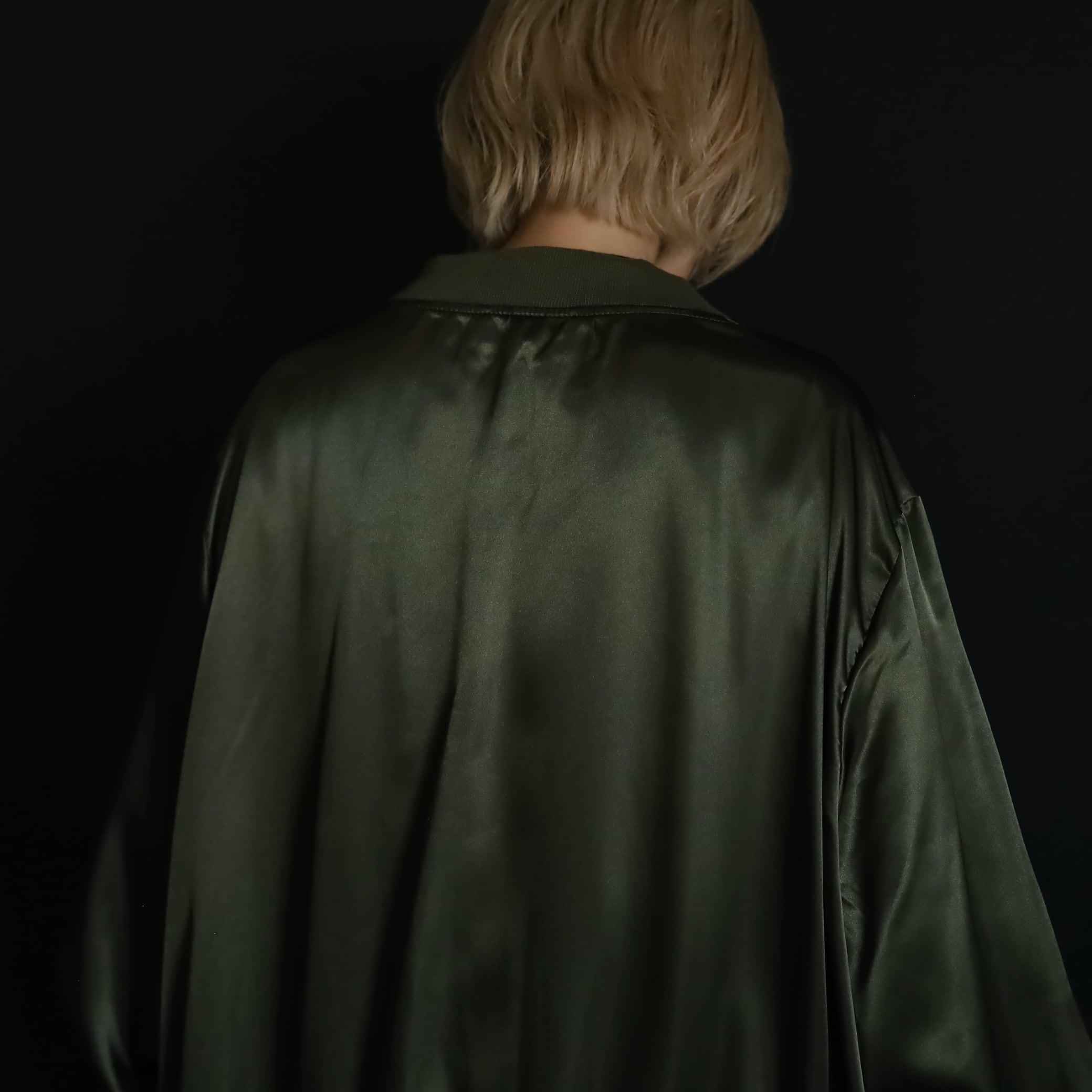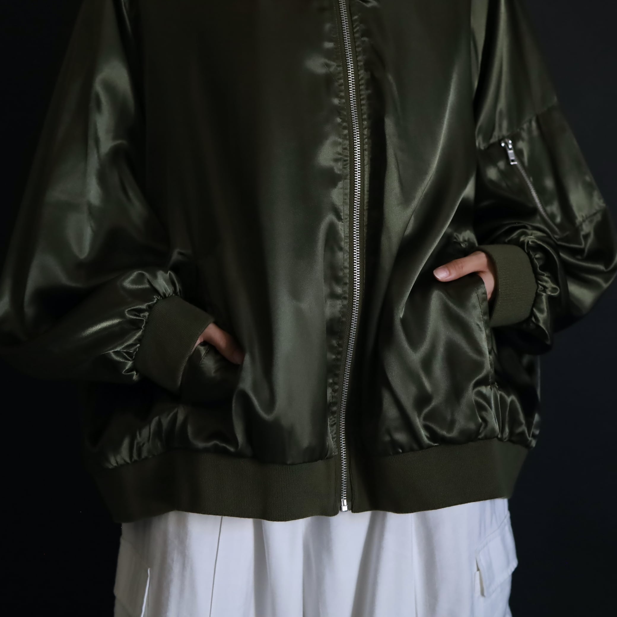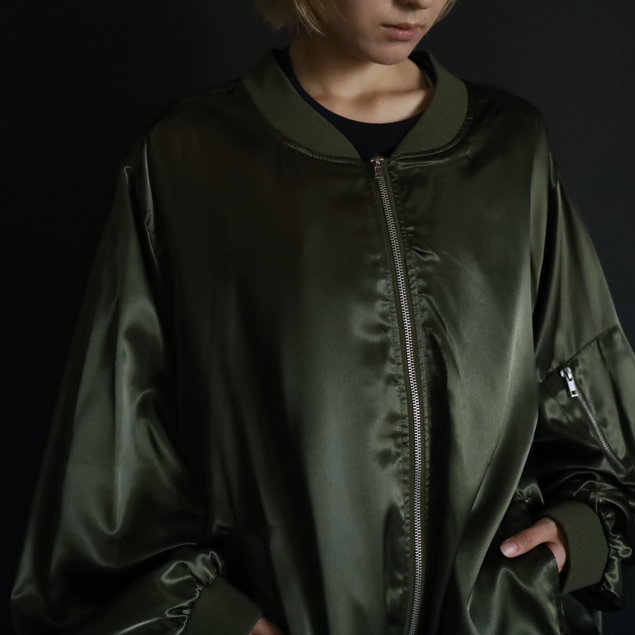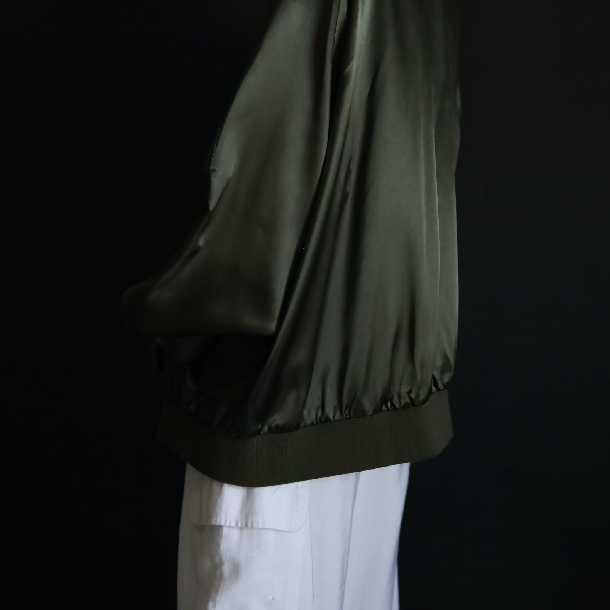 滑らかで落ち感のある分ボリュームはないですが,シガレットポケット付きの所謂MA-1タイプ.