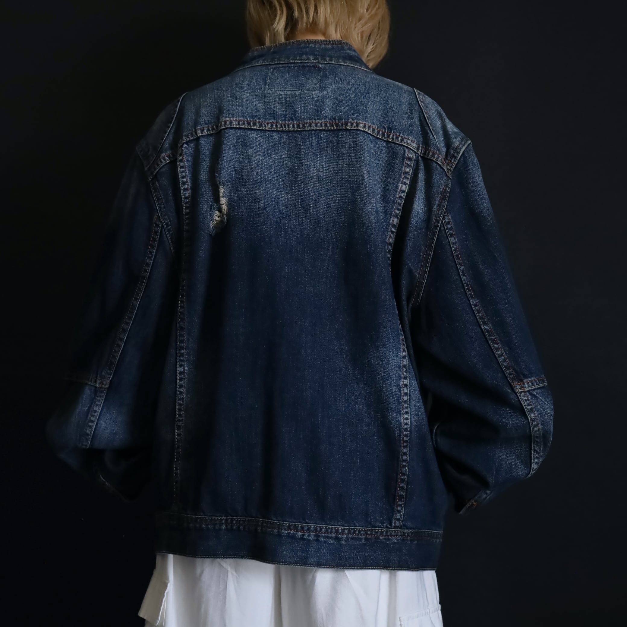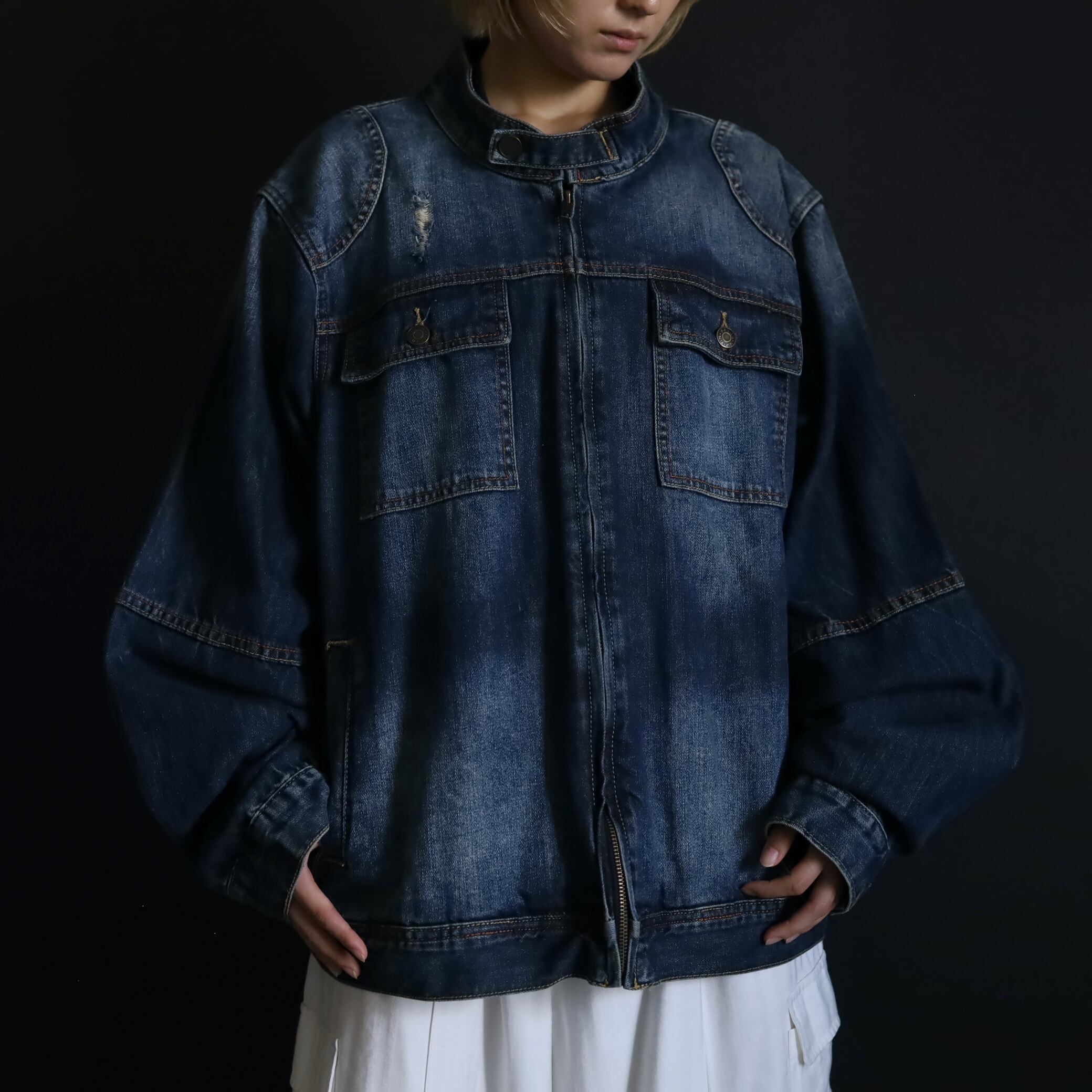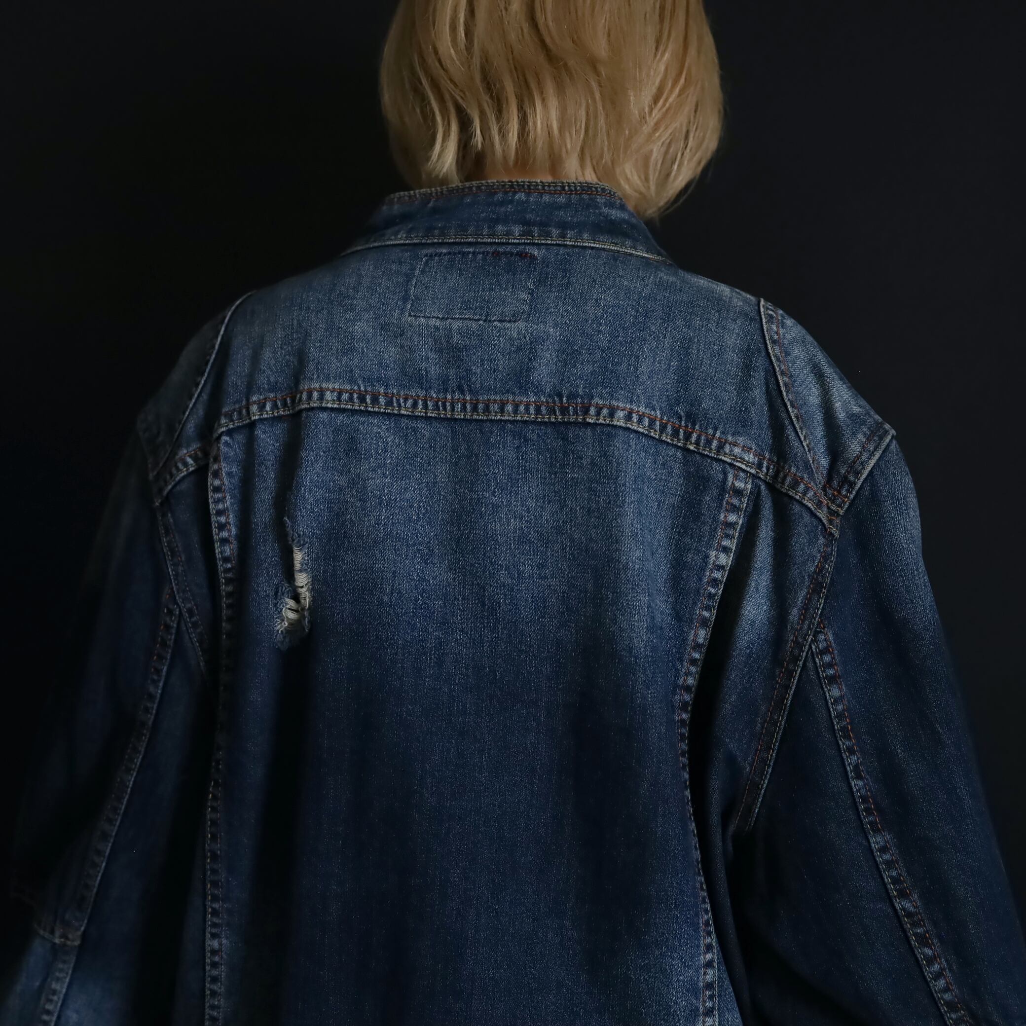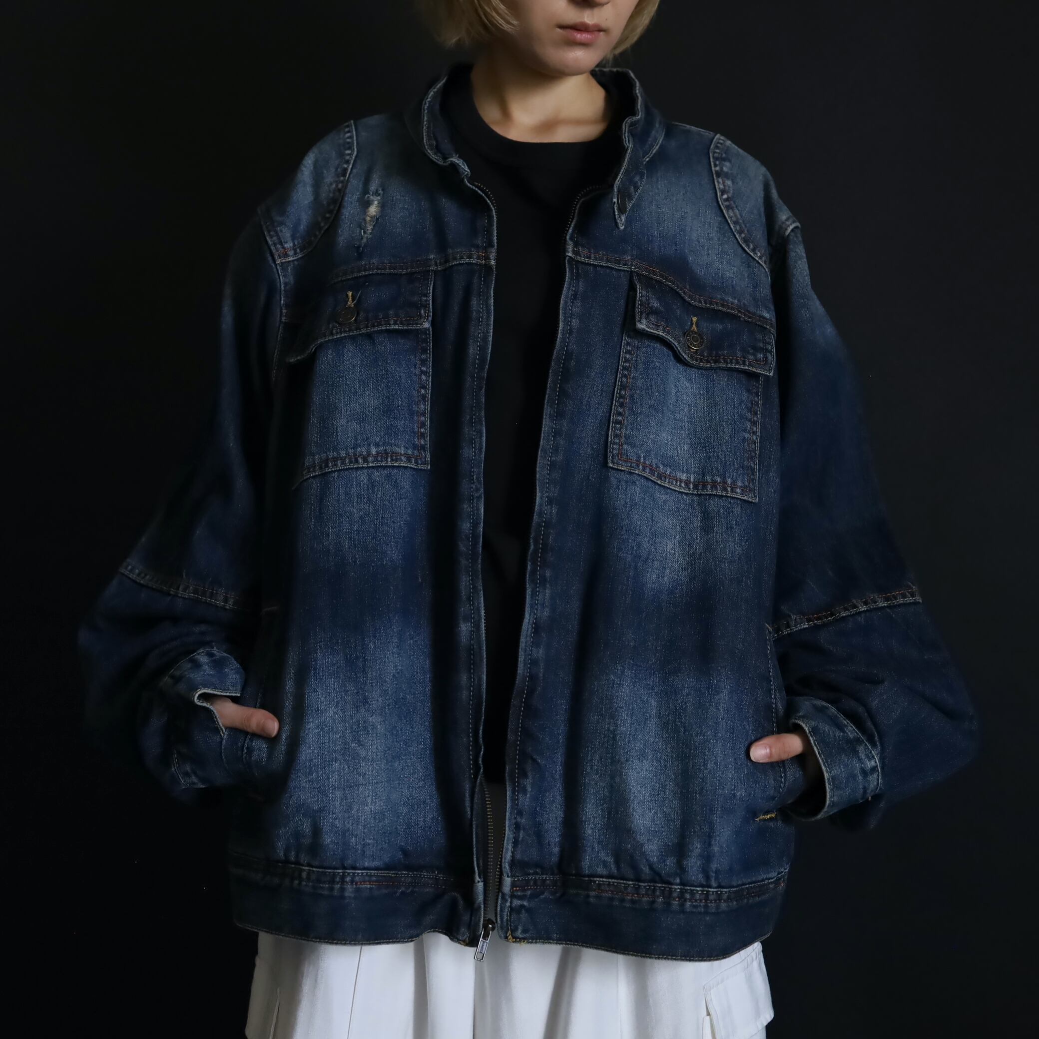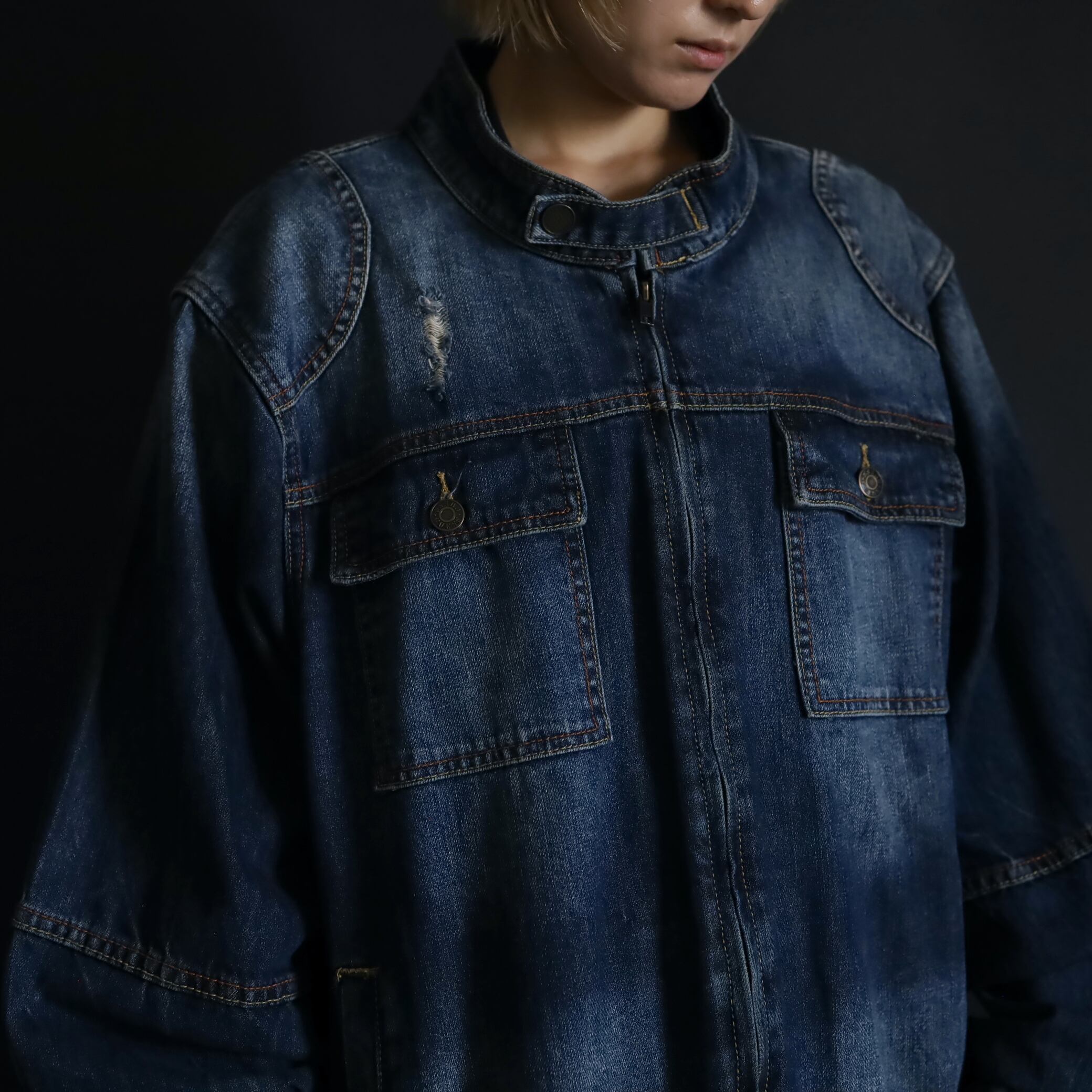 デニムジャケットで数少ないスタンドカラー仕様で,首元がスッキリとした印象.