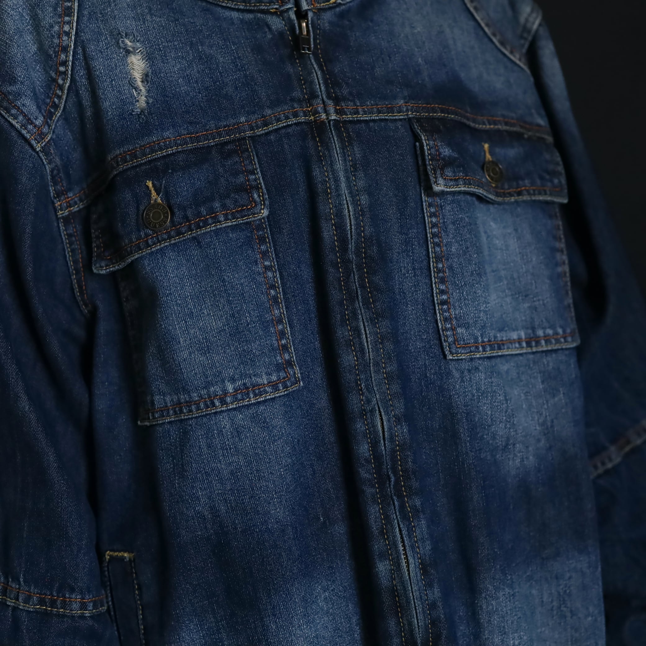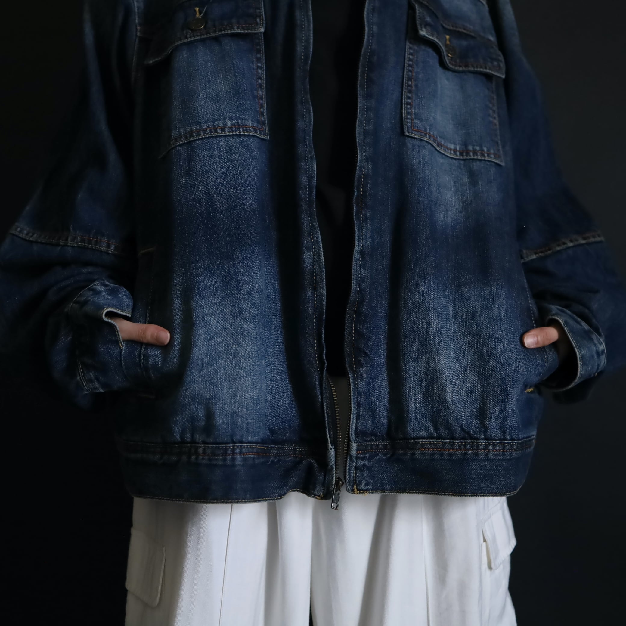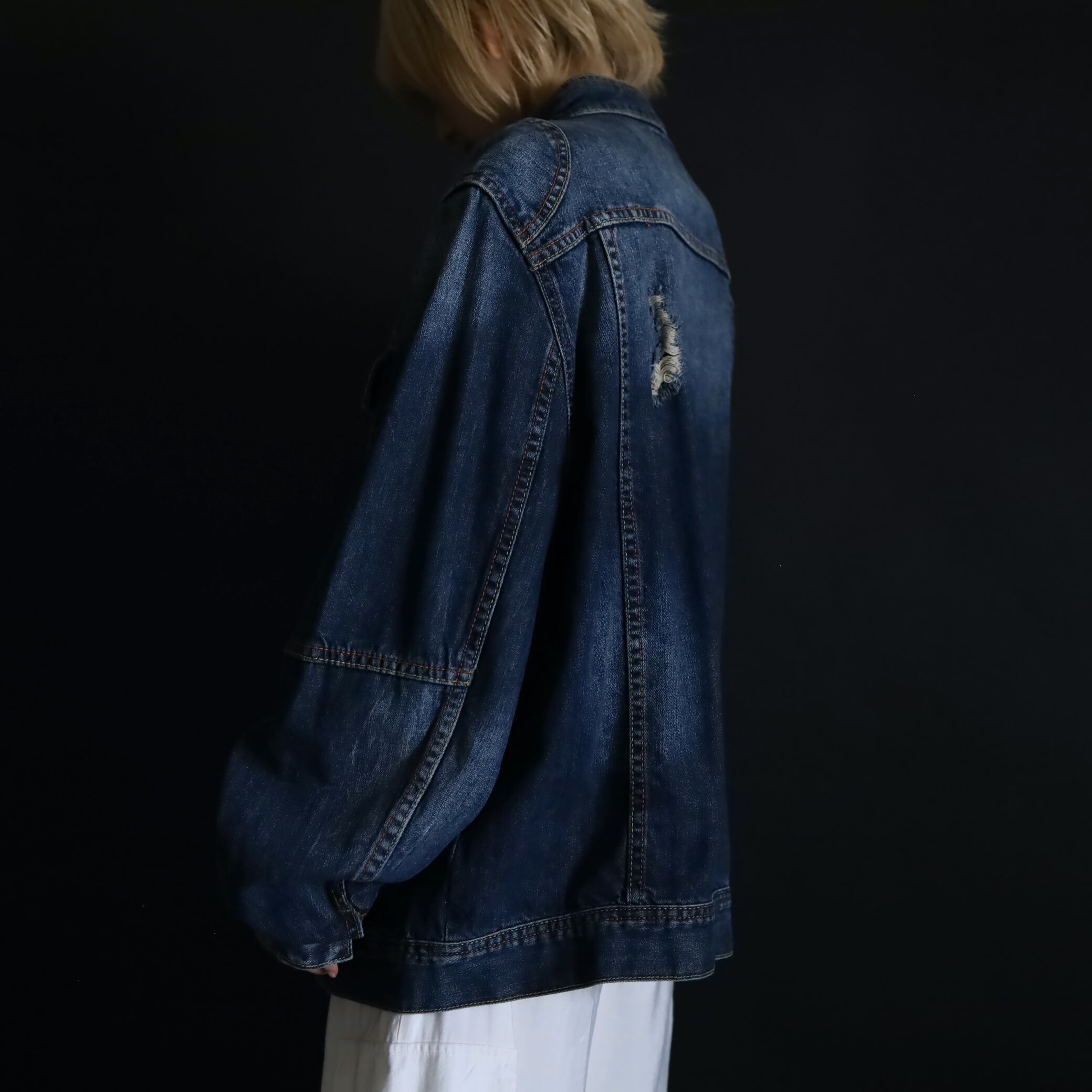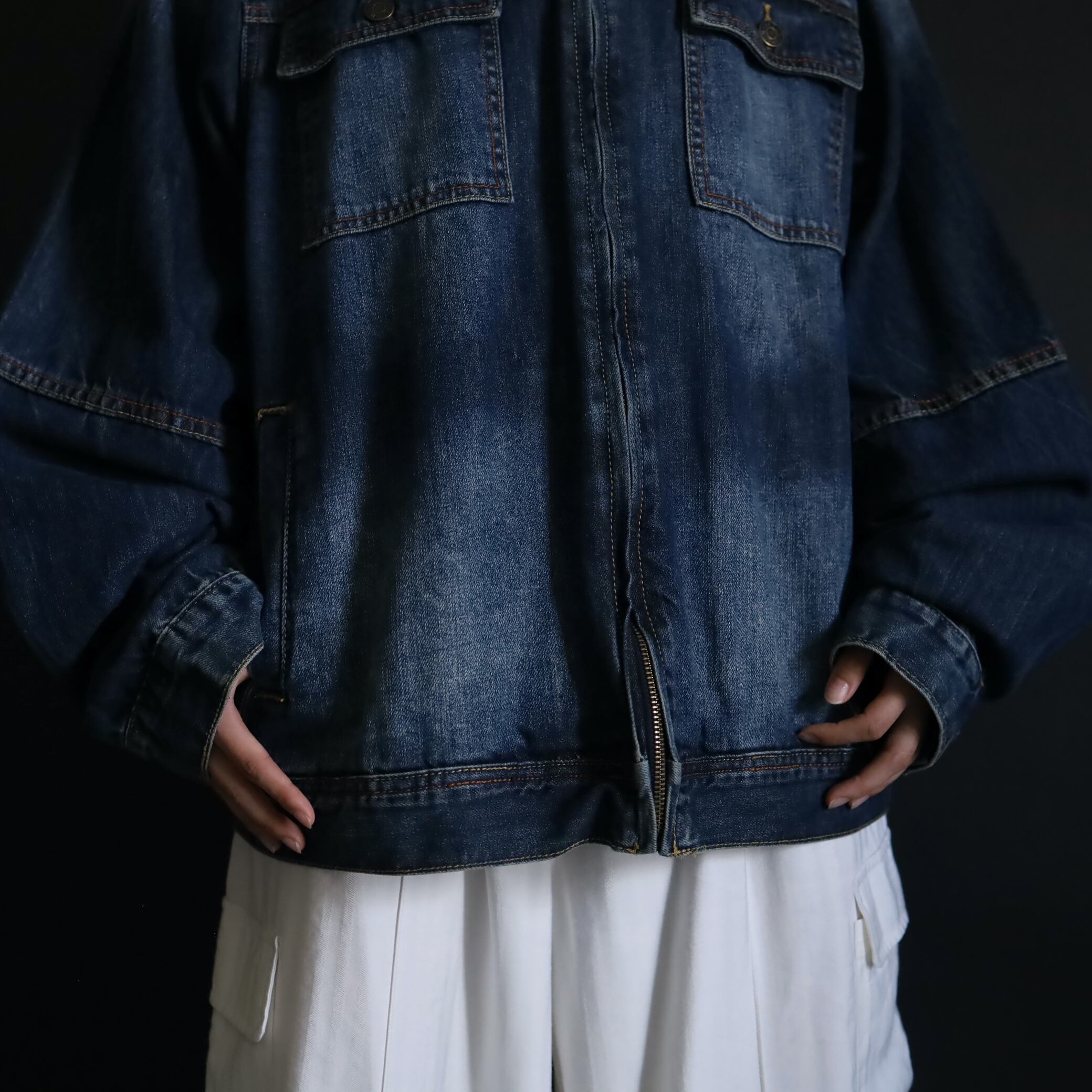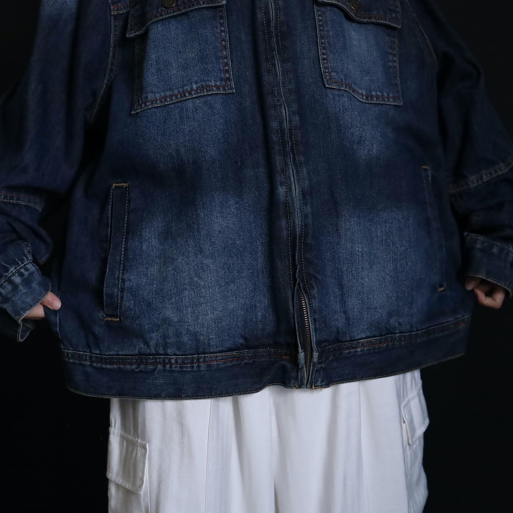 デニムジャケットで数少ないスタンドカラー仕様で,首元がスッキリとした印象.
