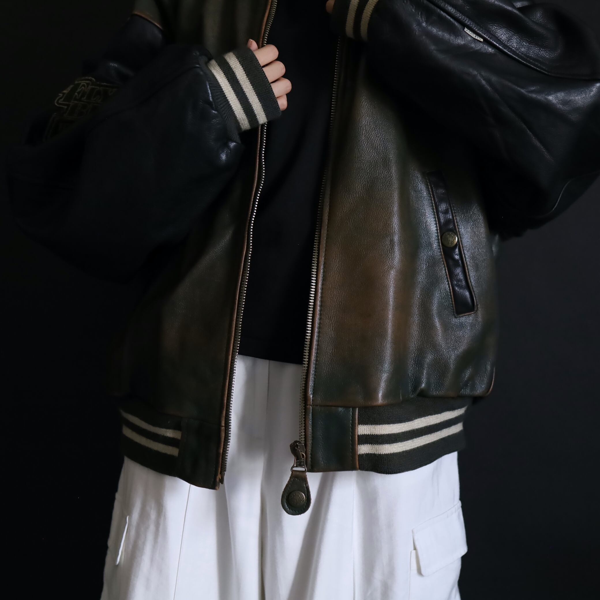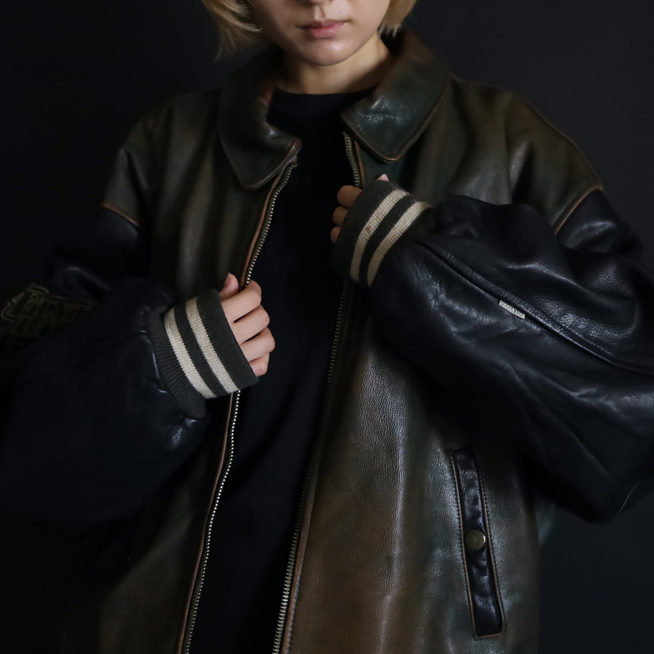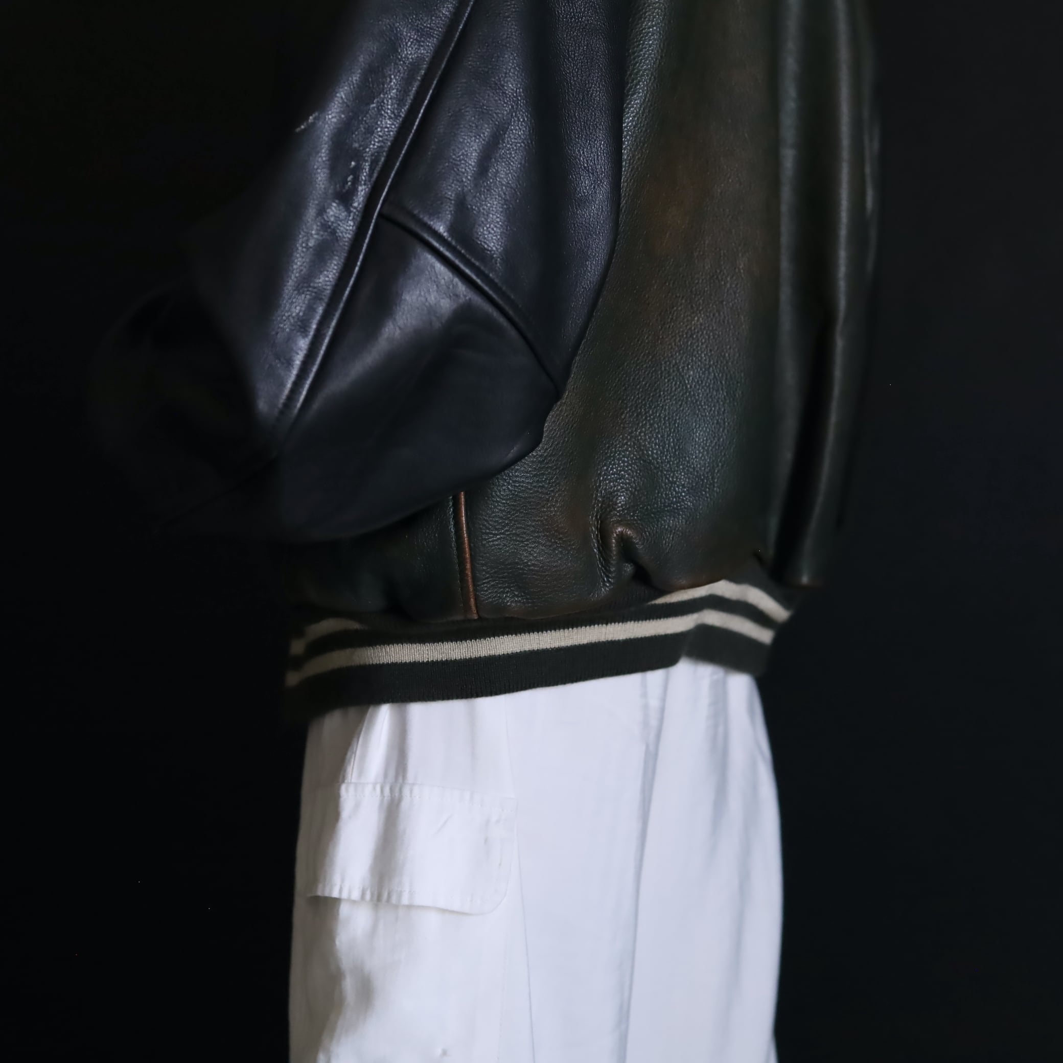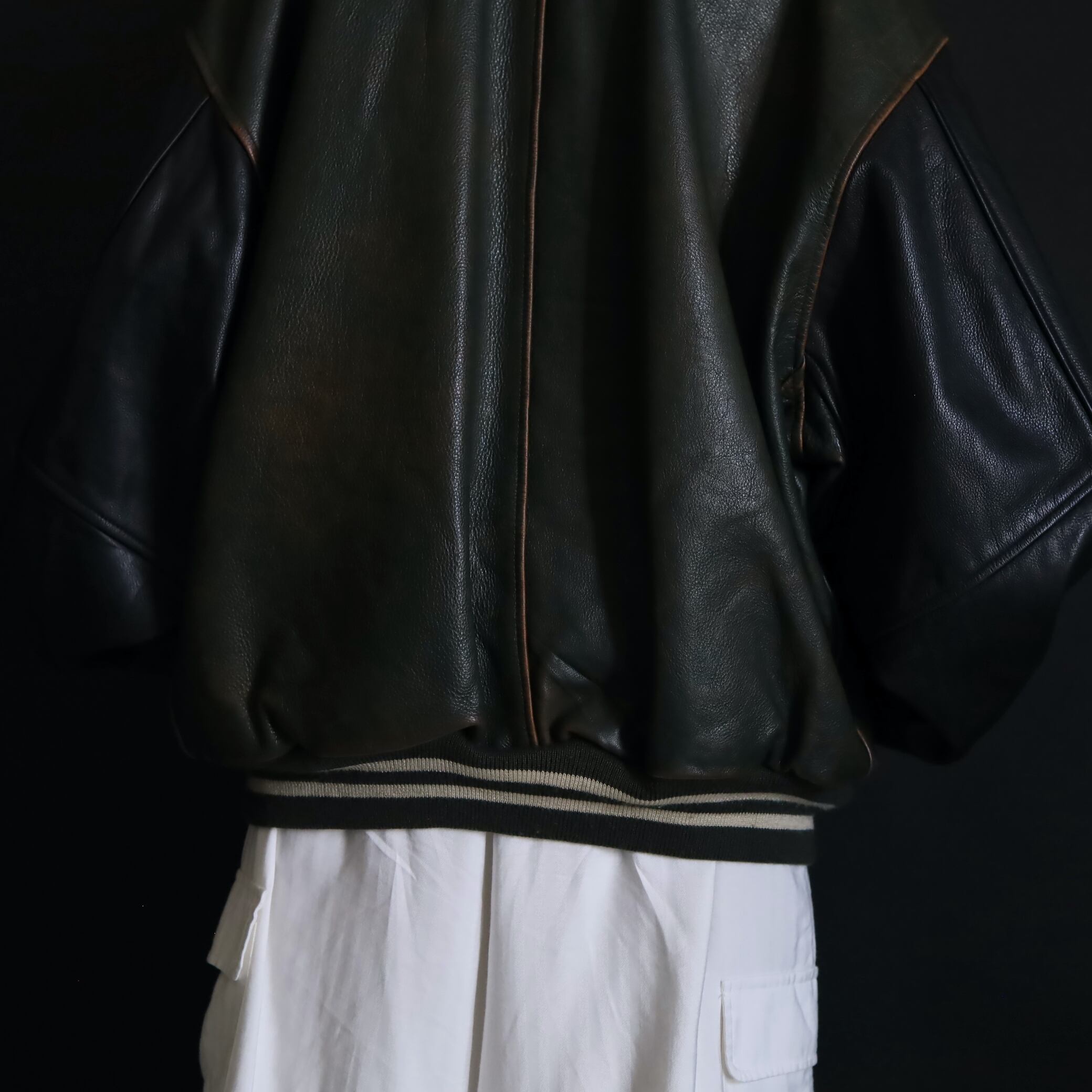 対して袖はブラックレザー.