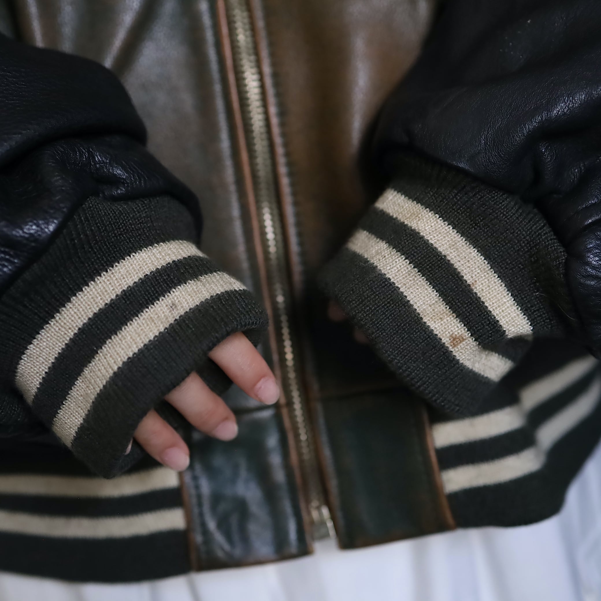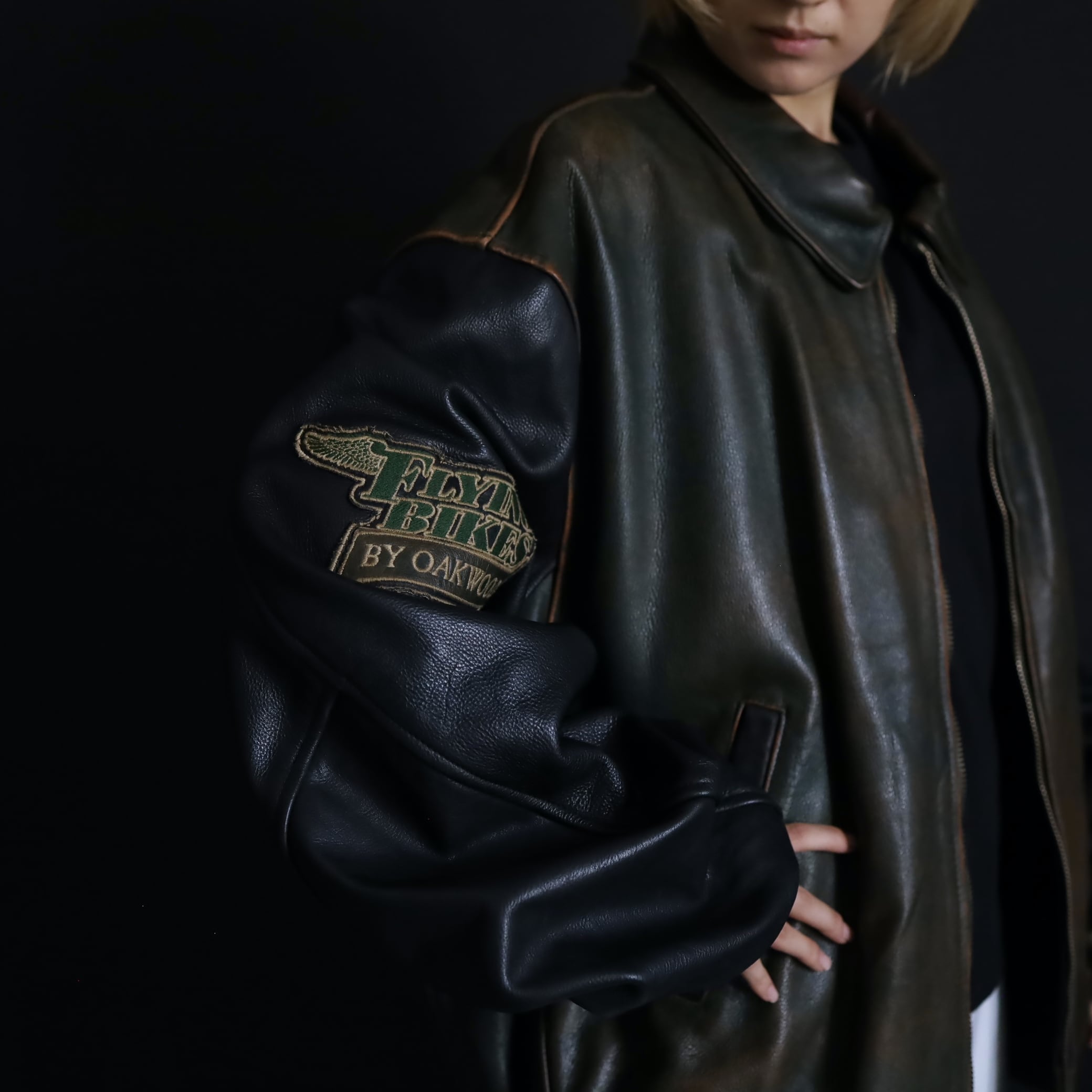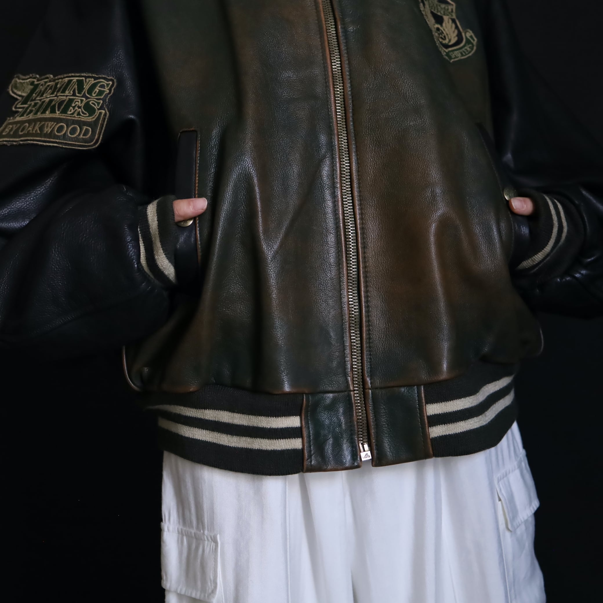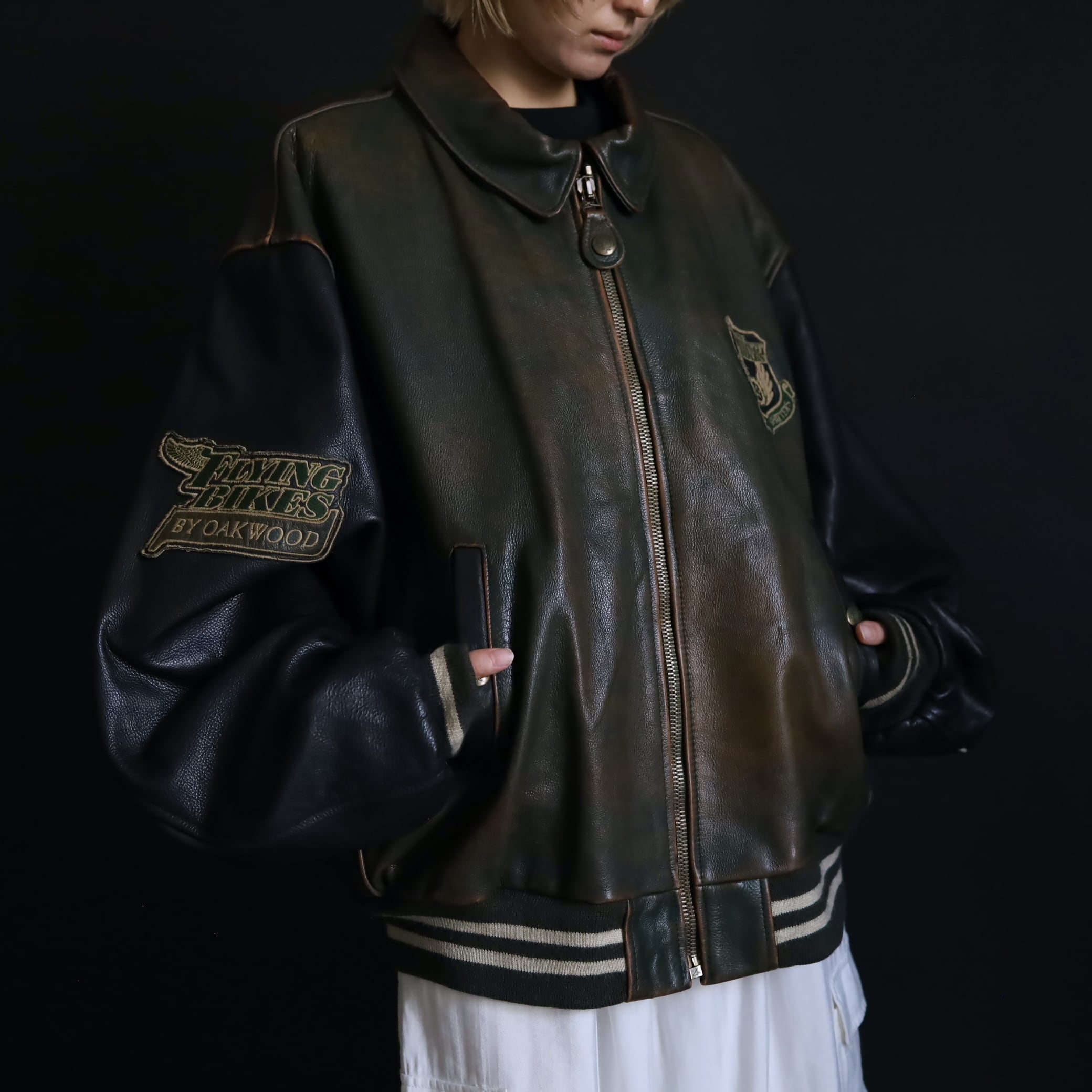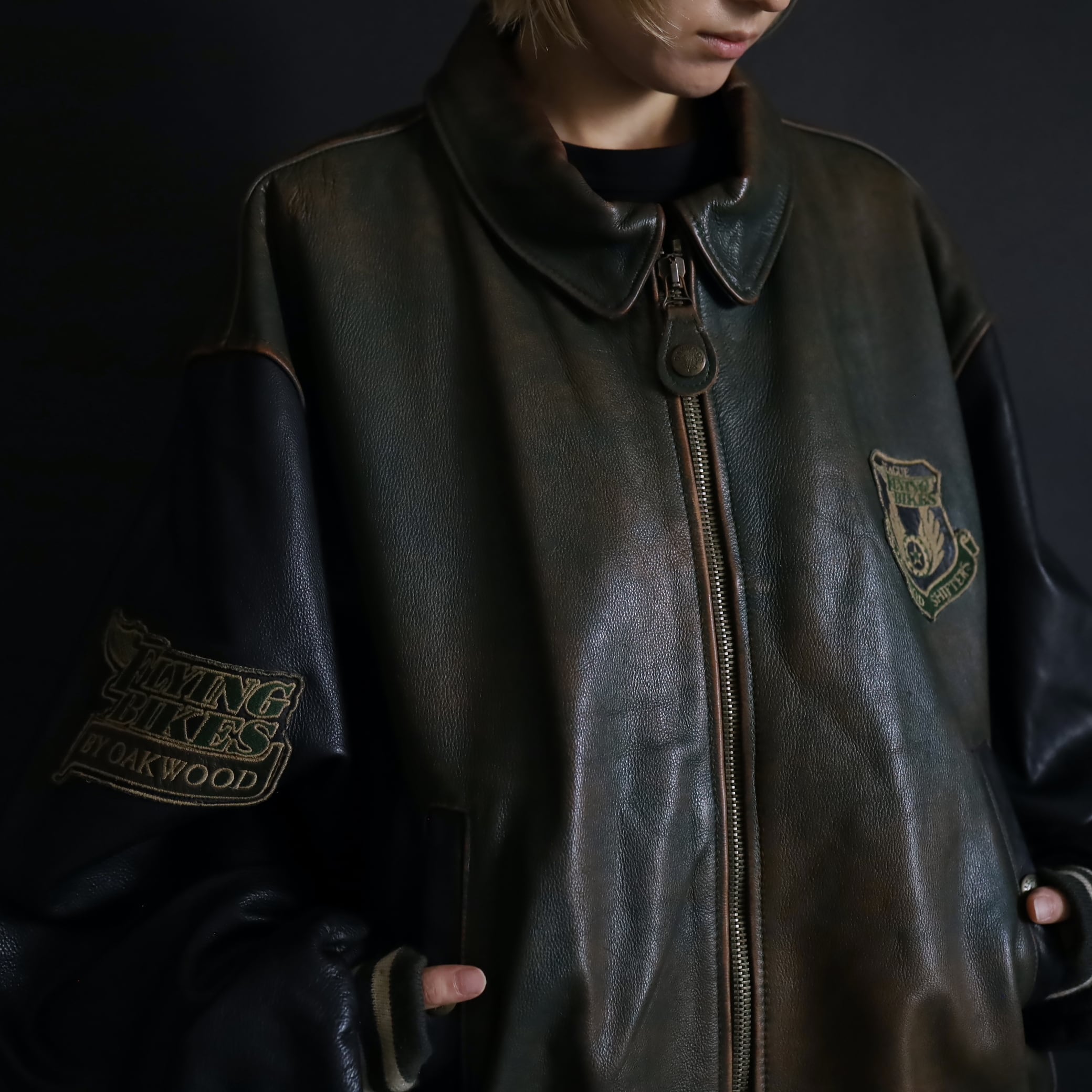 対して袖はブラックレザー.