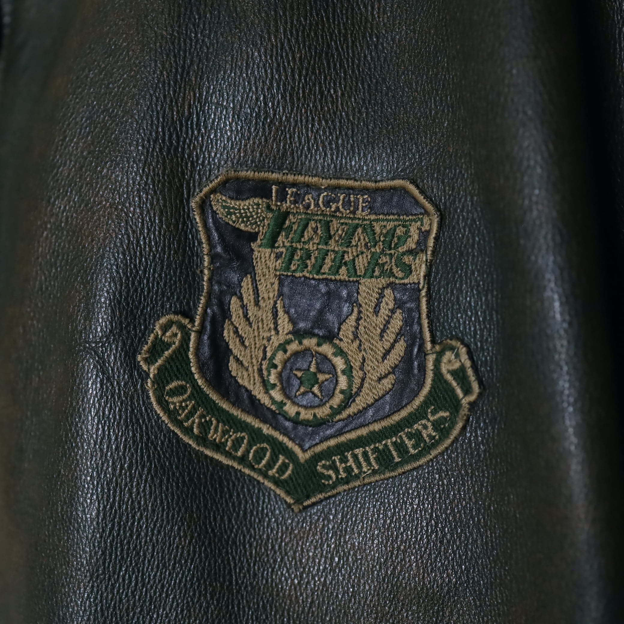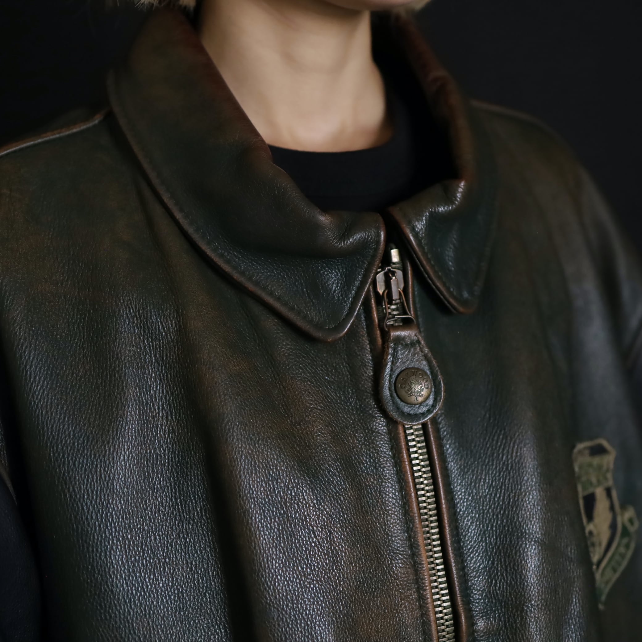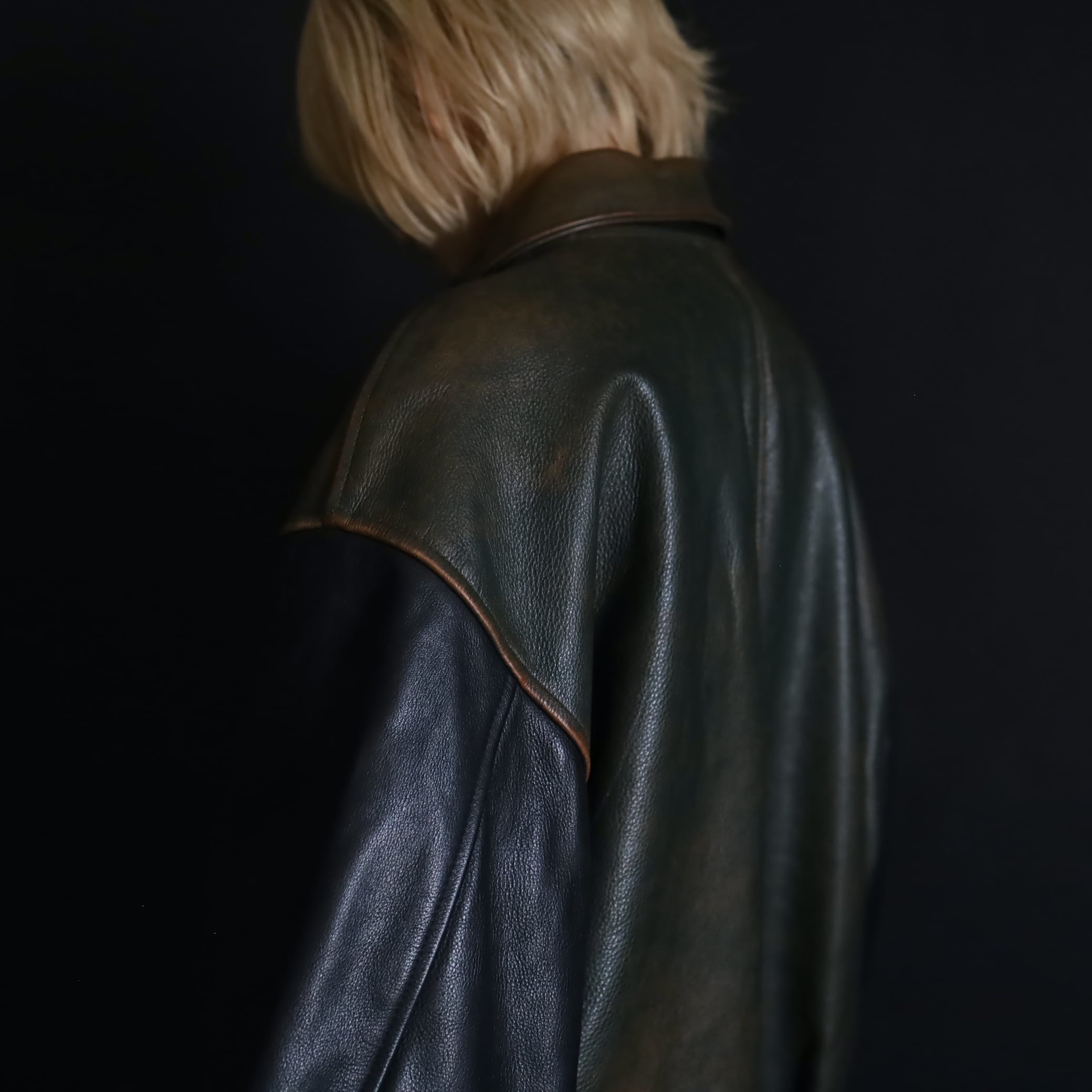 元々はブラウンレザーをグリーンに染めたモノ.