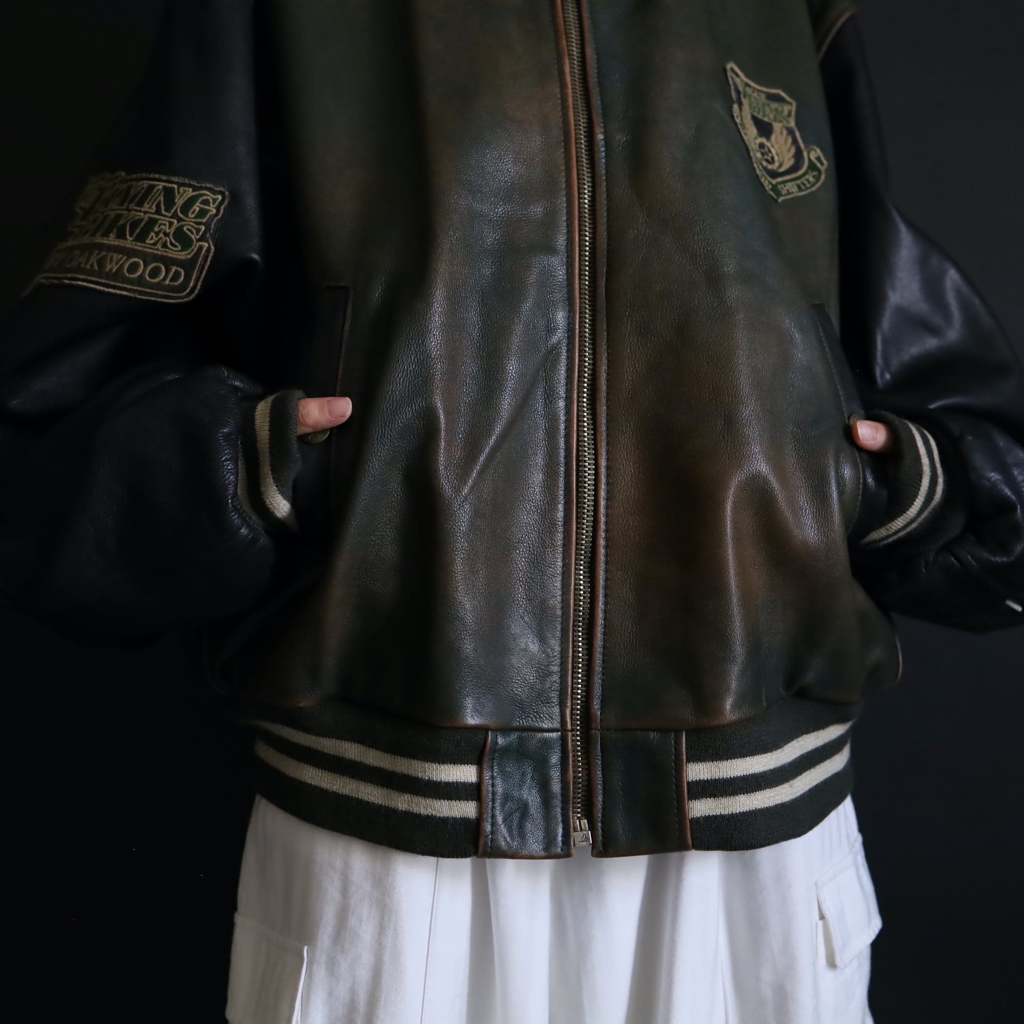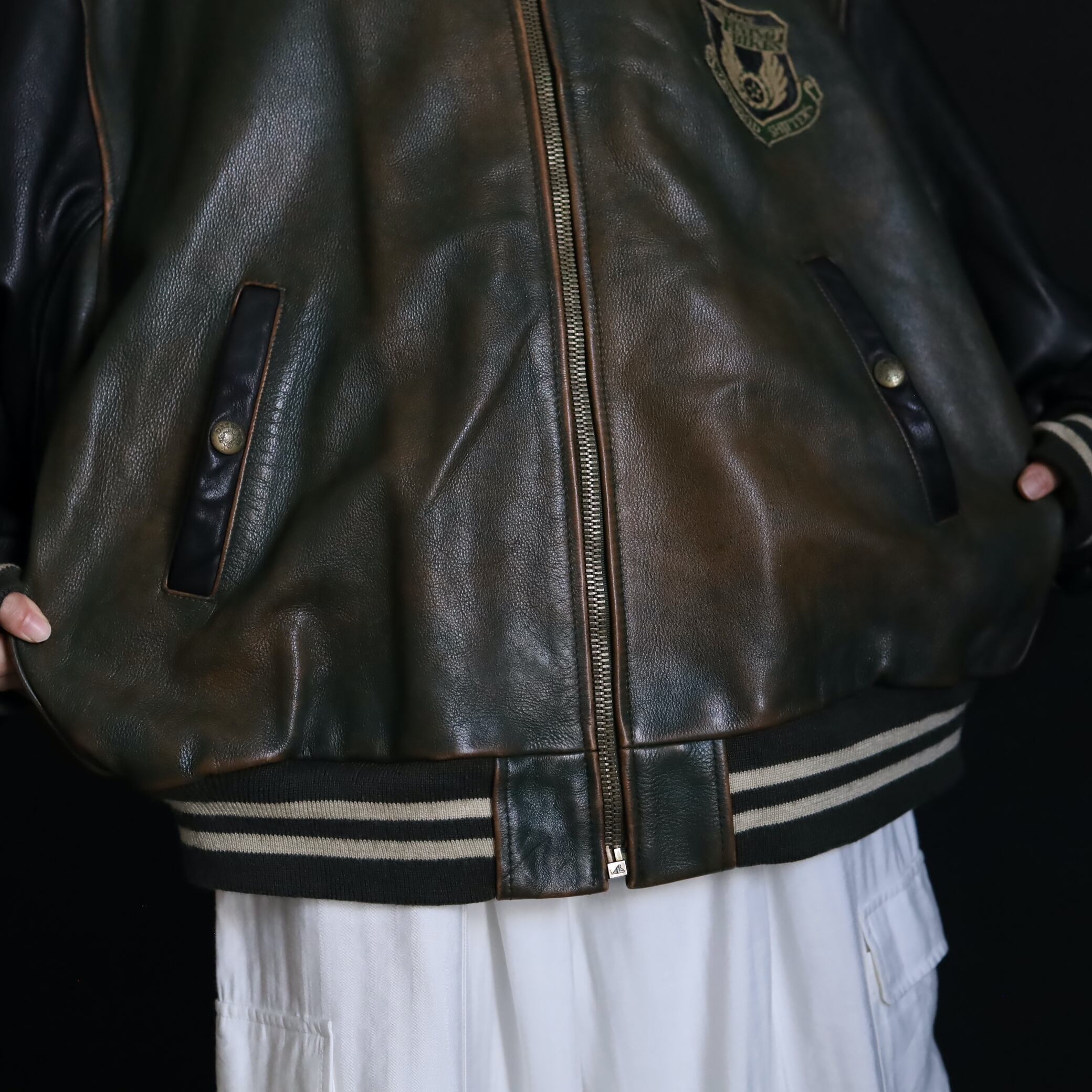 オールレザーのアワードジャケット,スタジャン.