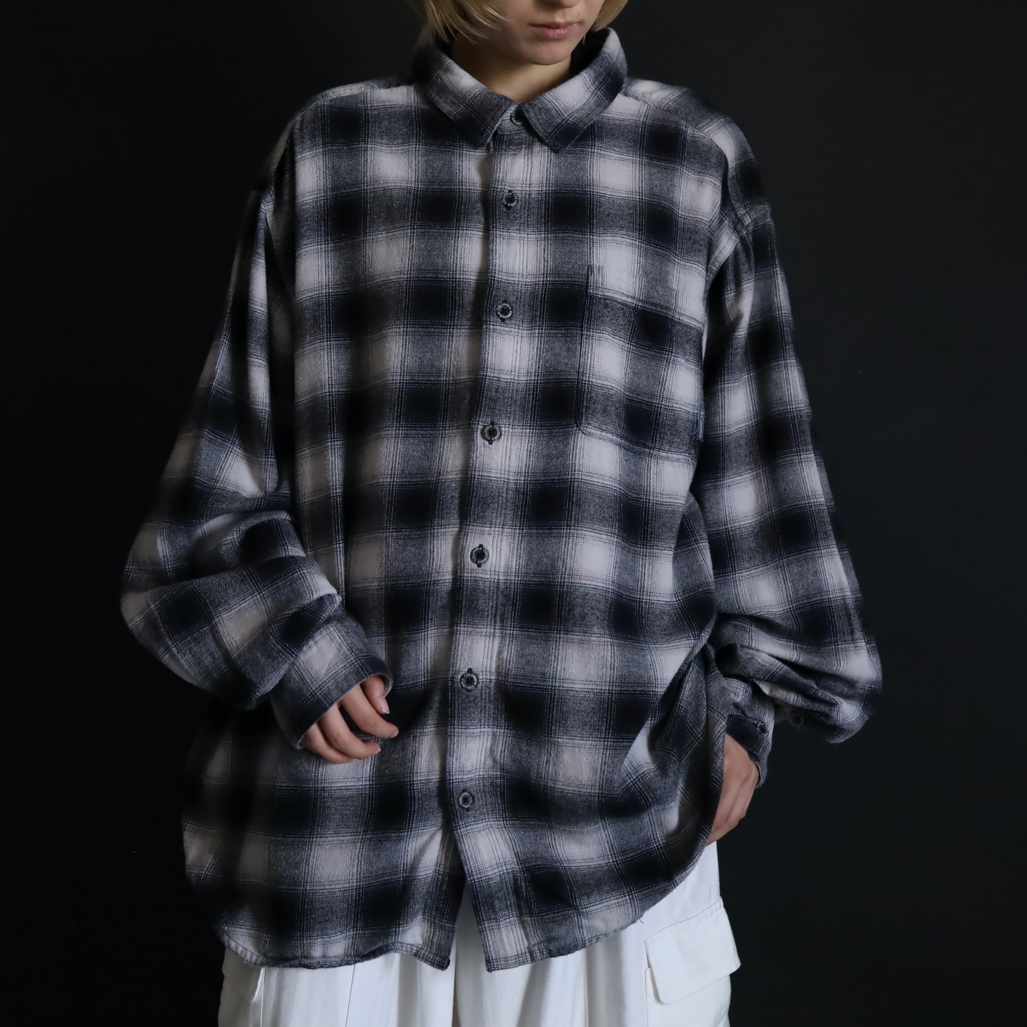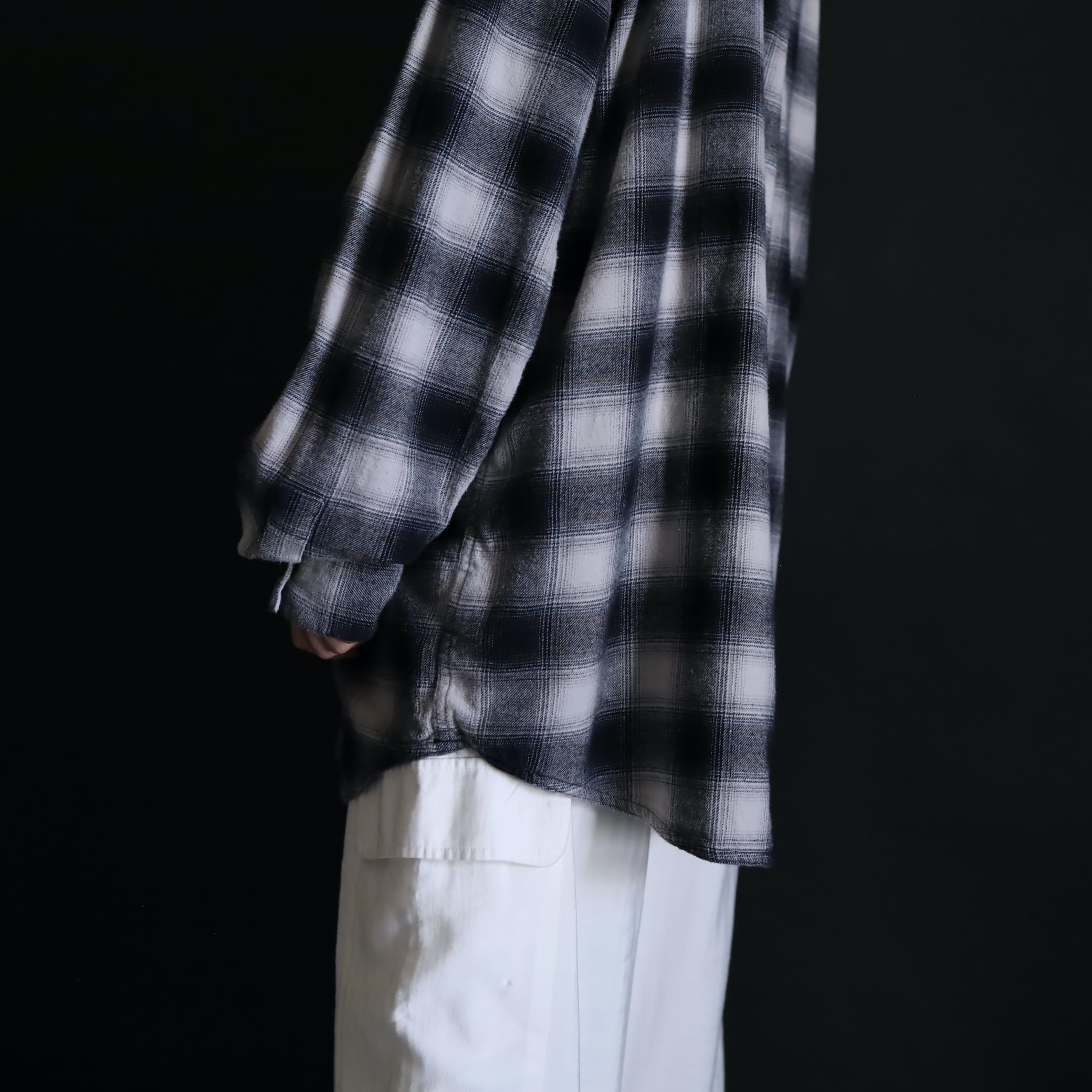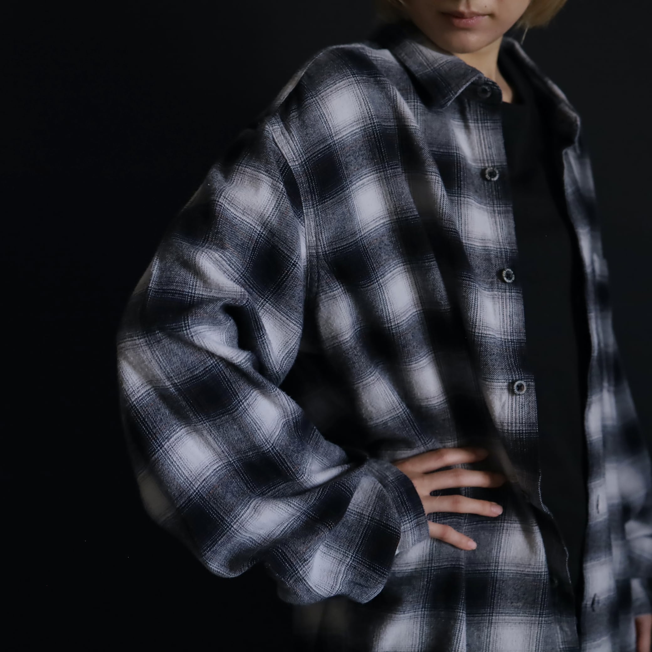 ブラック×ホワイトの王道カラーをベースに,ネイビーとオレンジを織り交ぜたシャドーチェック.