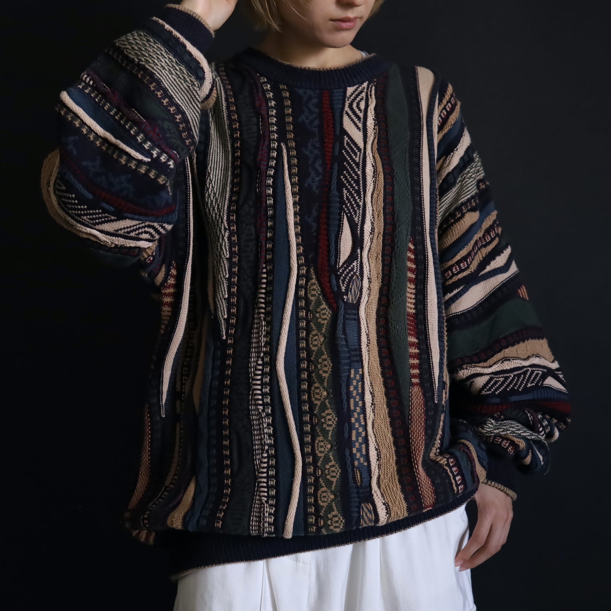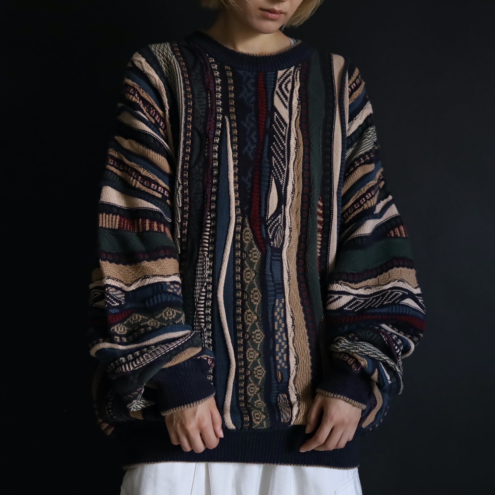 全体の色味のトーンは落ち着きがあり,3Dニットとしては派手さは比較的控えめ.