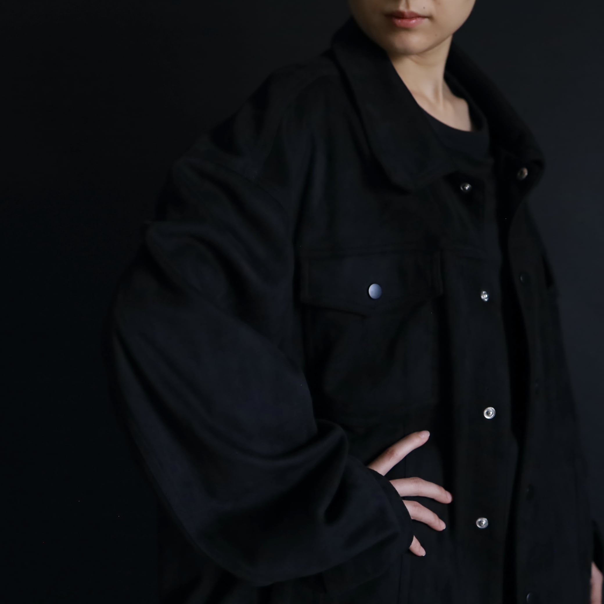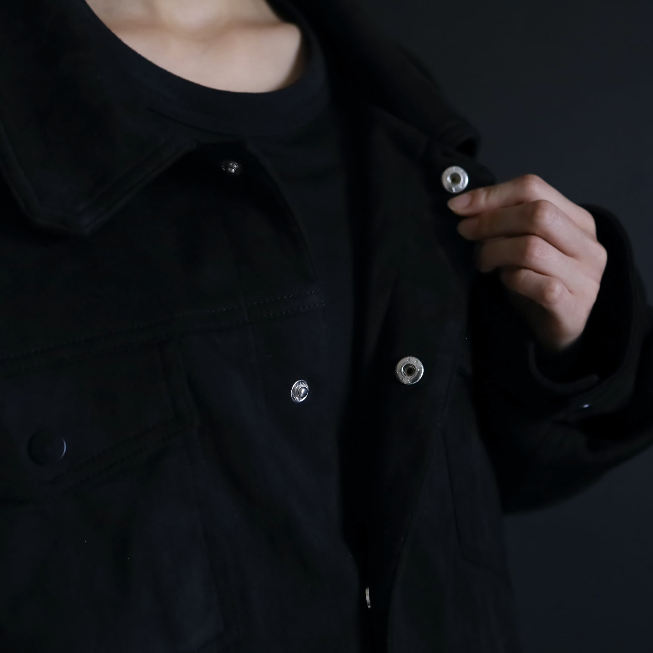 高級素材であるヌバックレザーを模した,品のいいトラッカージャケットの入荷です.