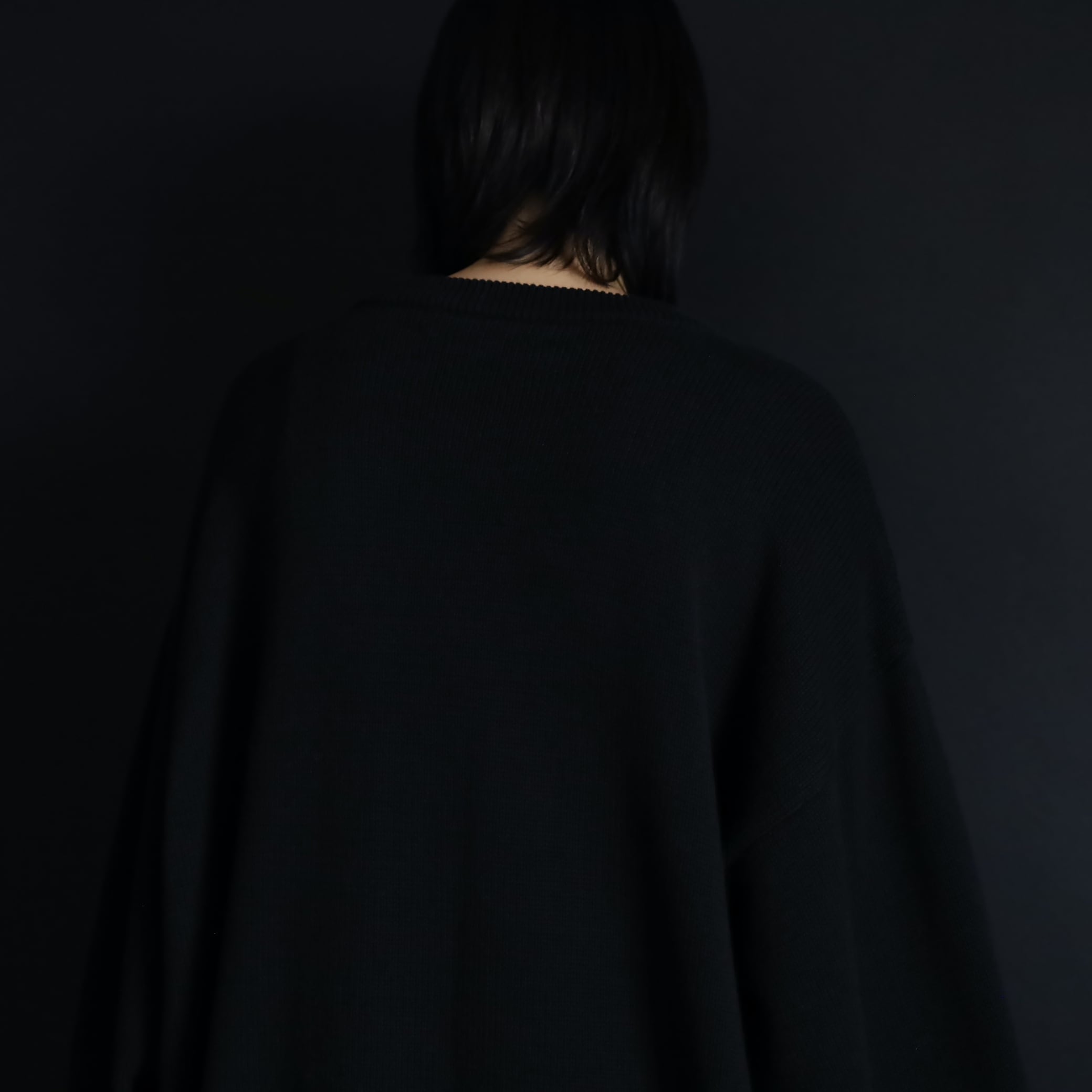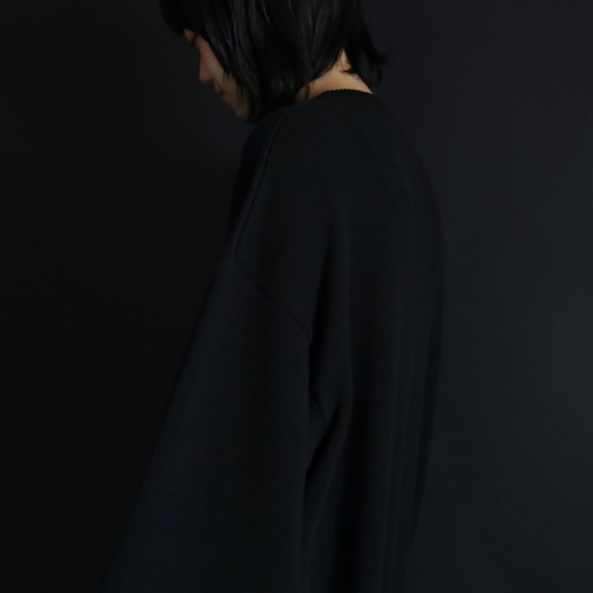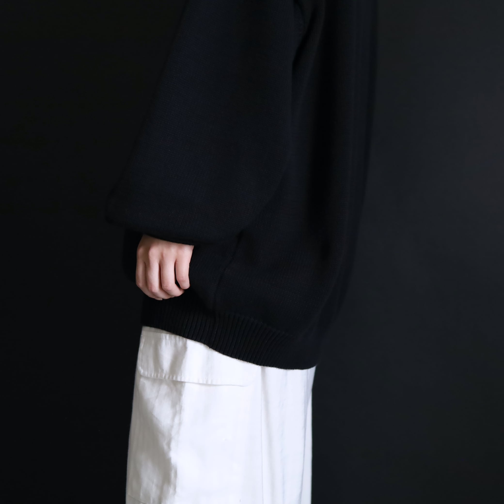 ゆったりとしたボディやアームの生地が,袖や裾のリブに溜まり丸みを帯びたシルエットに.