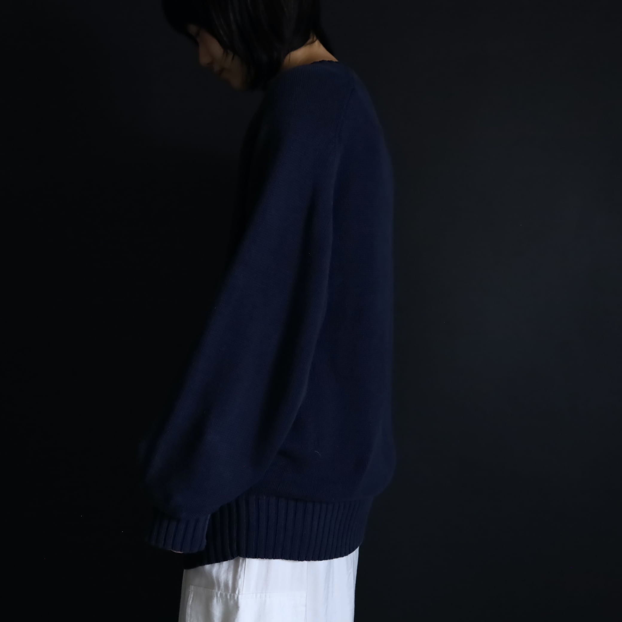 USAニットとしては珍しいサイドショルダー仕様で,ラグランのようなリラックスした着用感が魅力的.