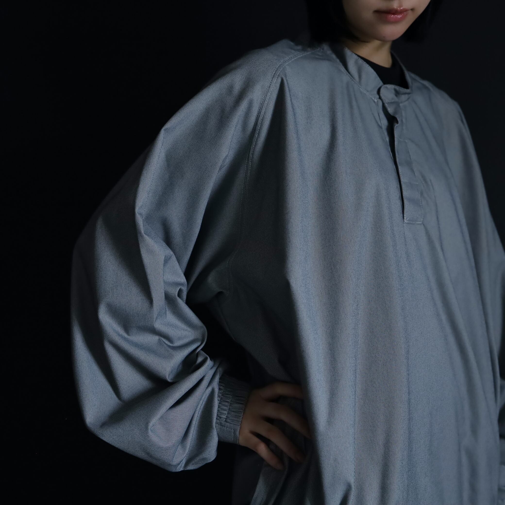 たっぷり広くとられた身幅によるボリューム感,ややパリっとした生地からなる立体感も◎