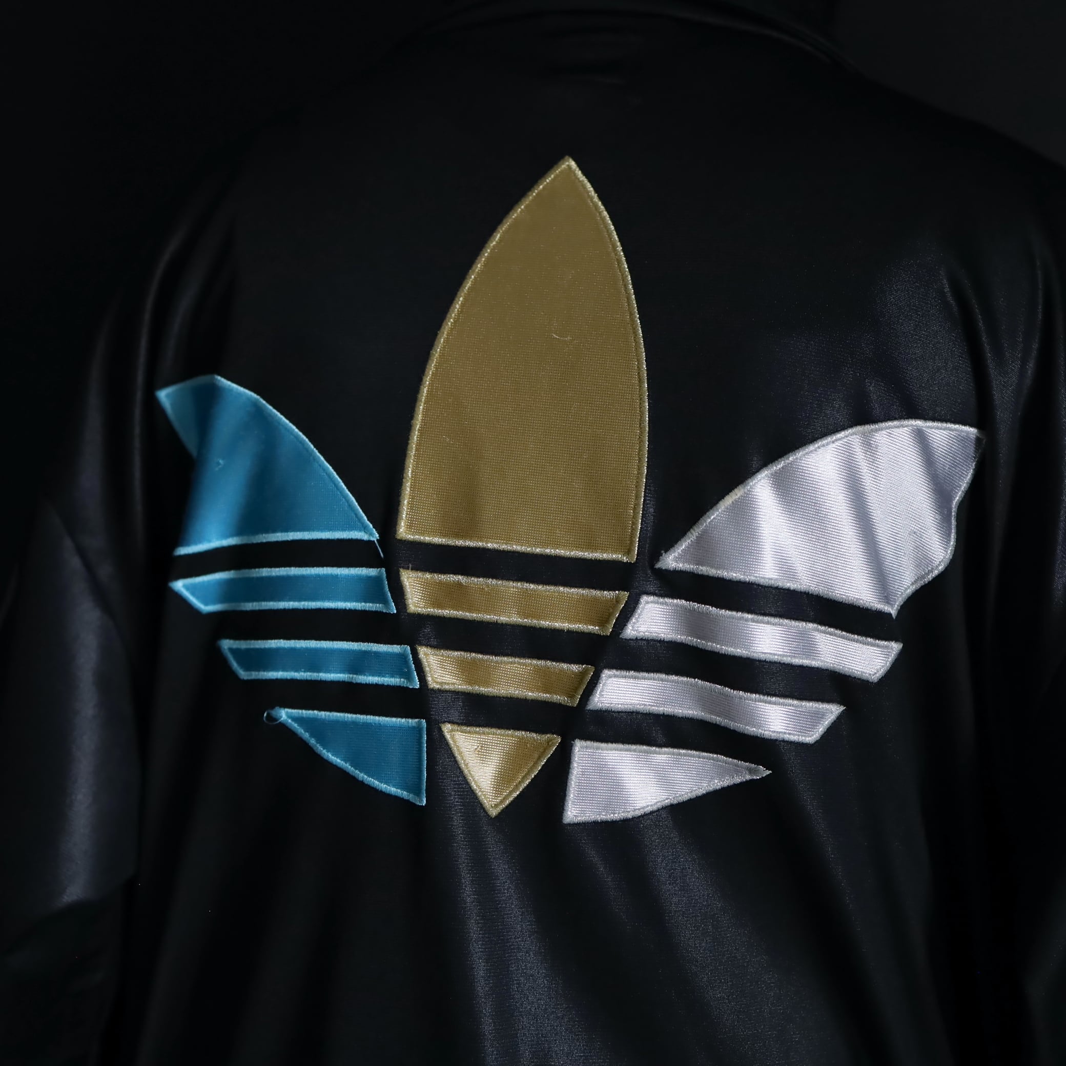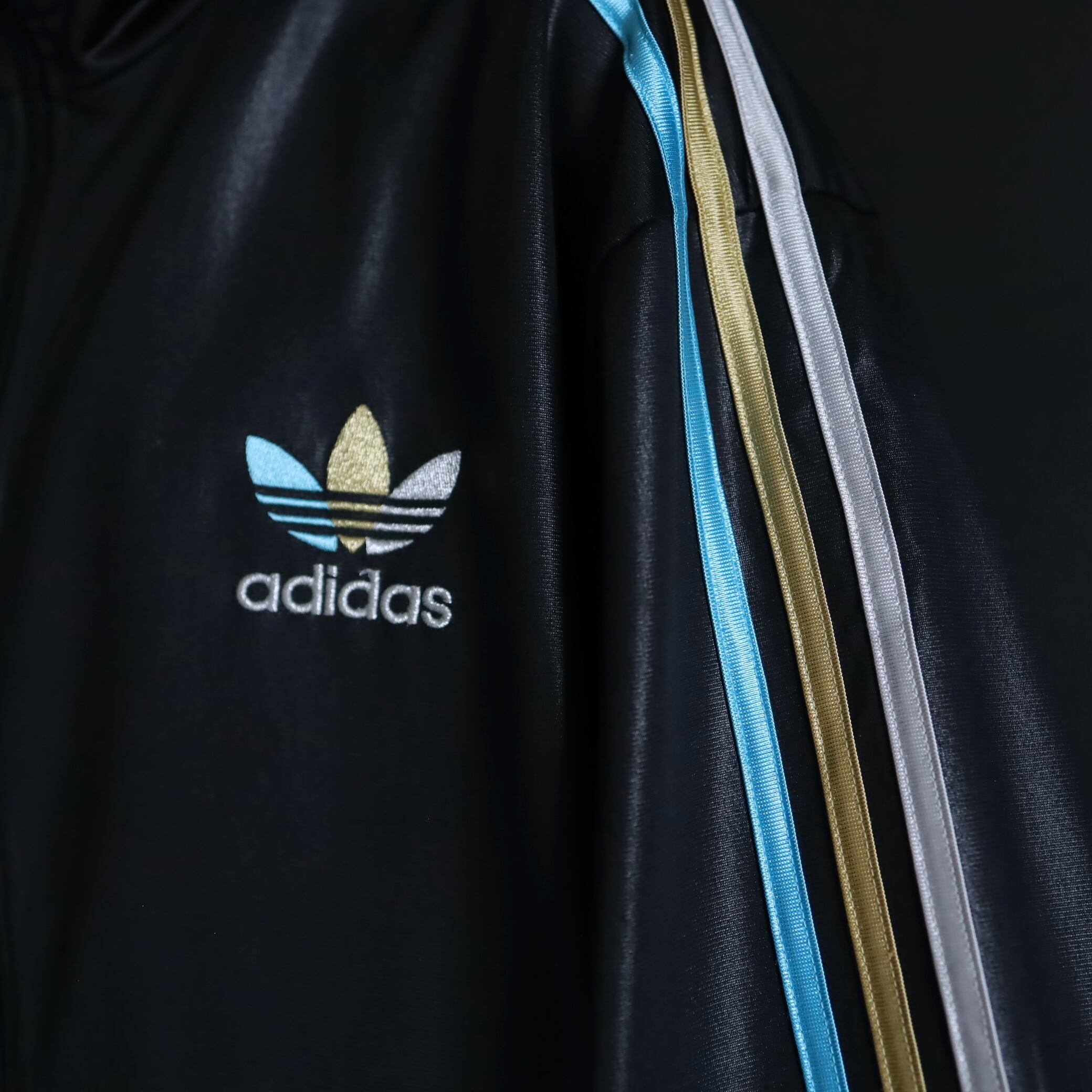 同様の配色で胸元にはトレフォイルロゴデザイン.