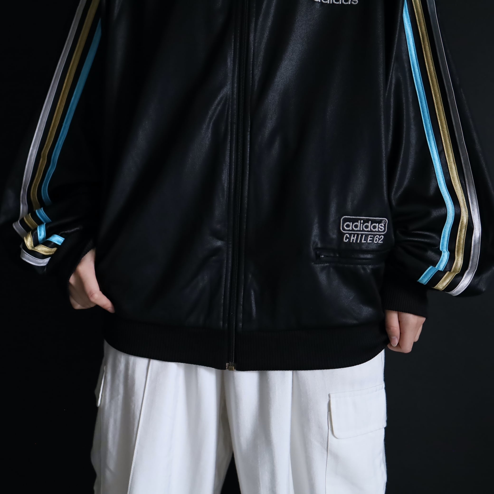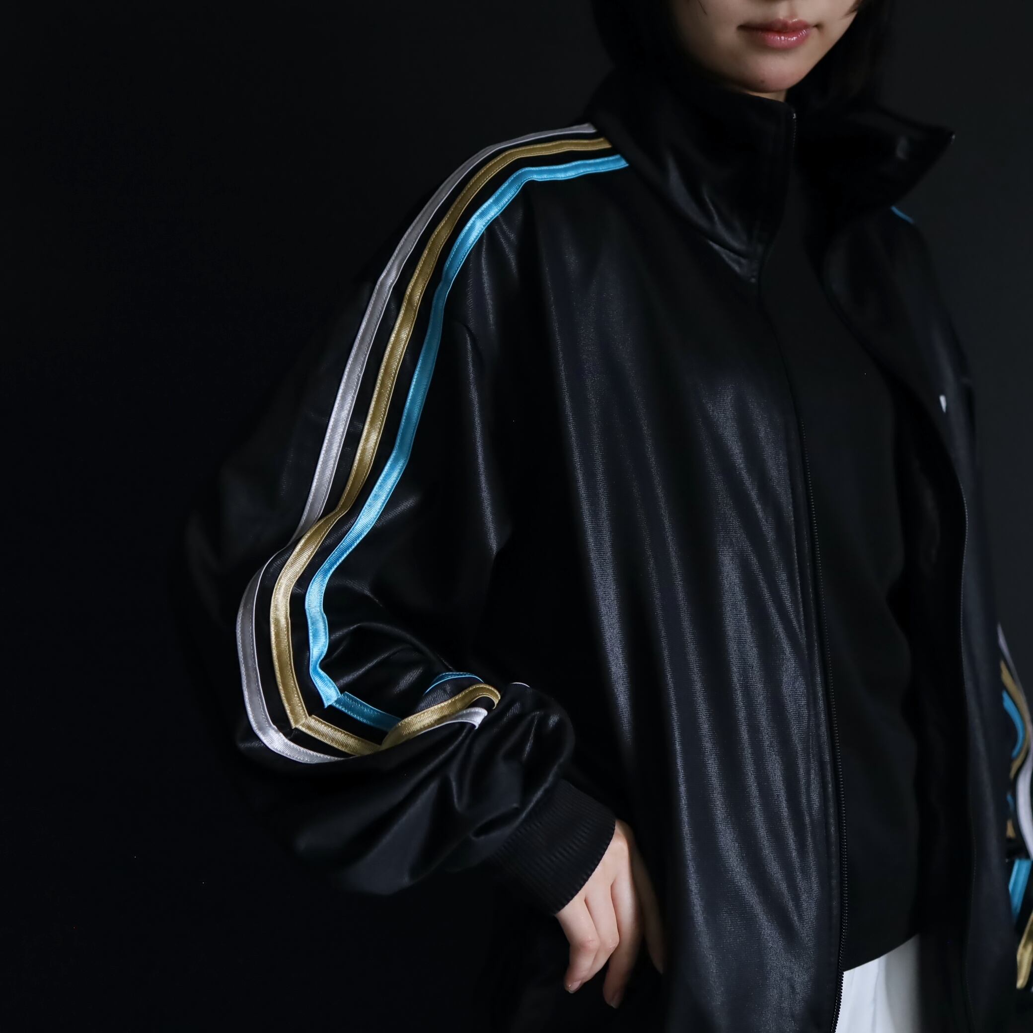 光沢の出るコーティングが施された,一般のトラックジャケットとは異なる表情が魅力的.