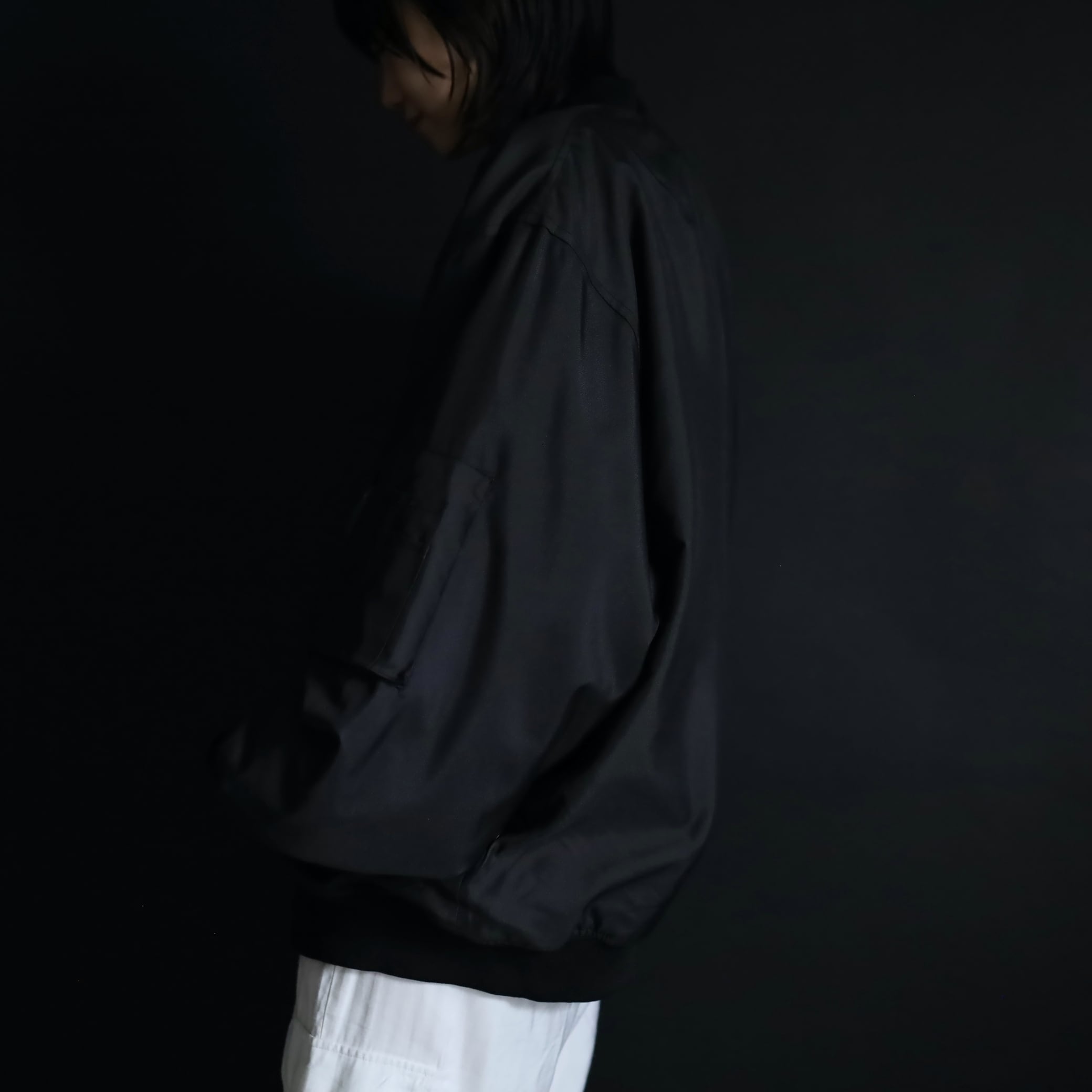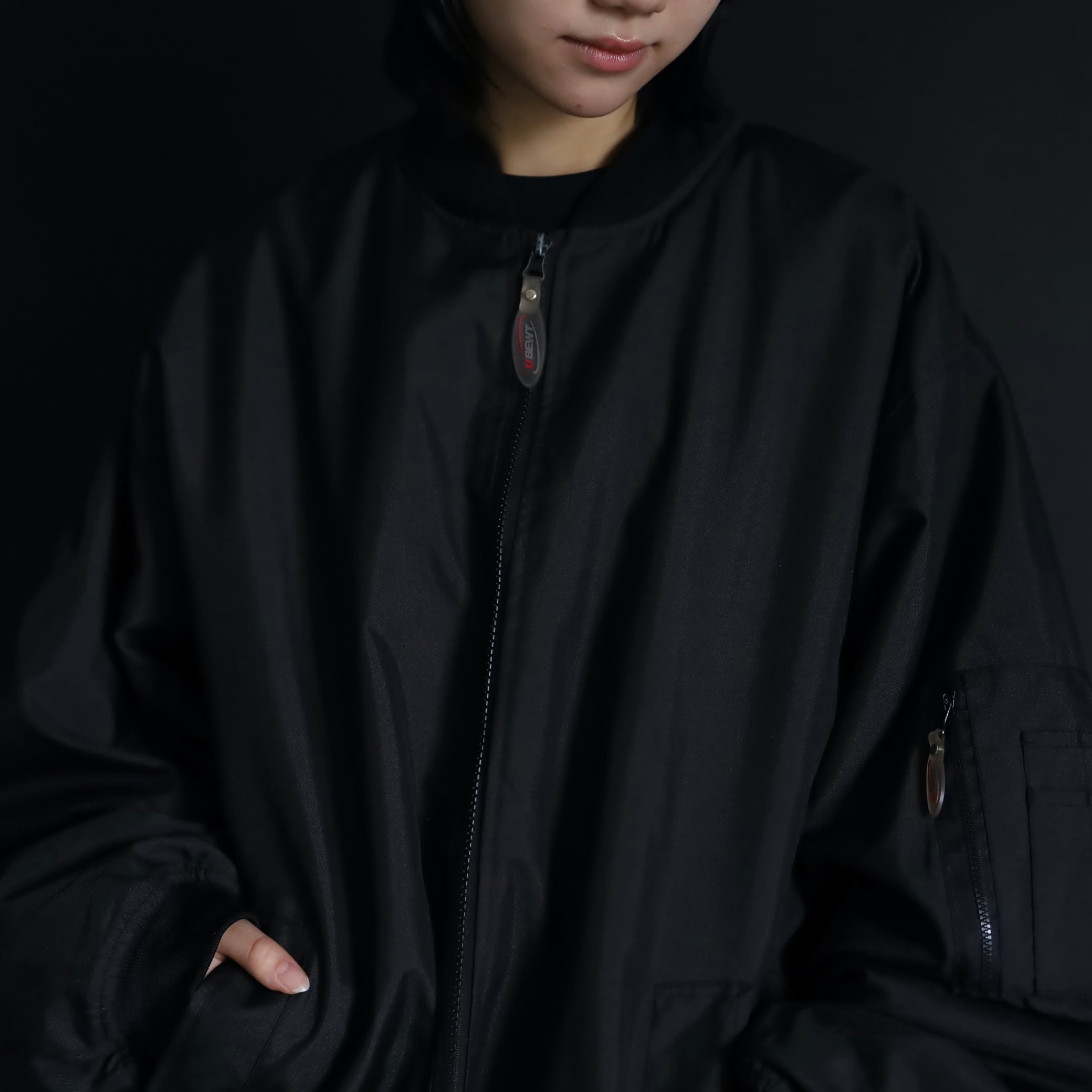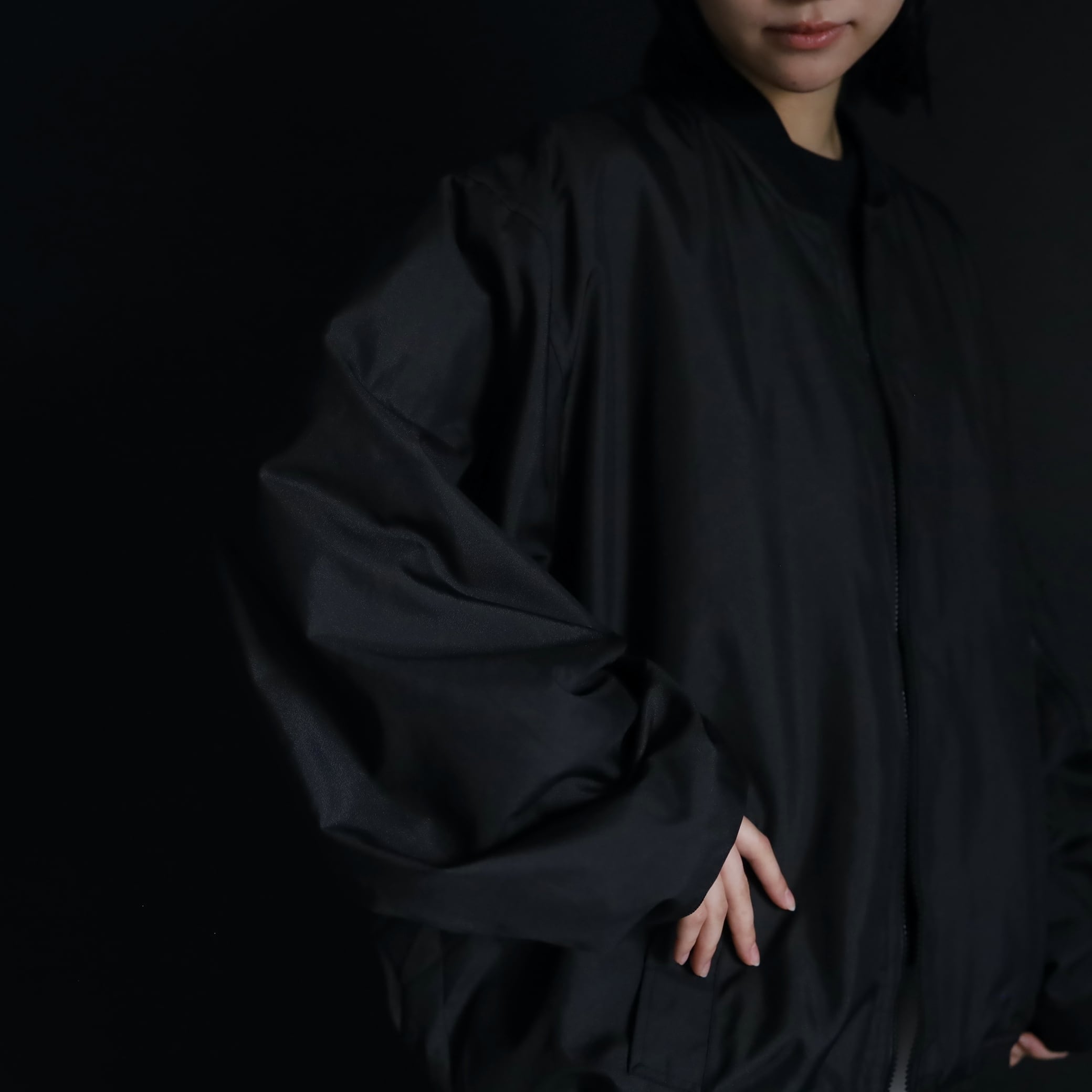 デザインこそMA-1フライトジャケットですが,生地の表情や色味はミリタリー感少なく,ファッションを意識したルックス.
