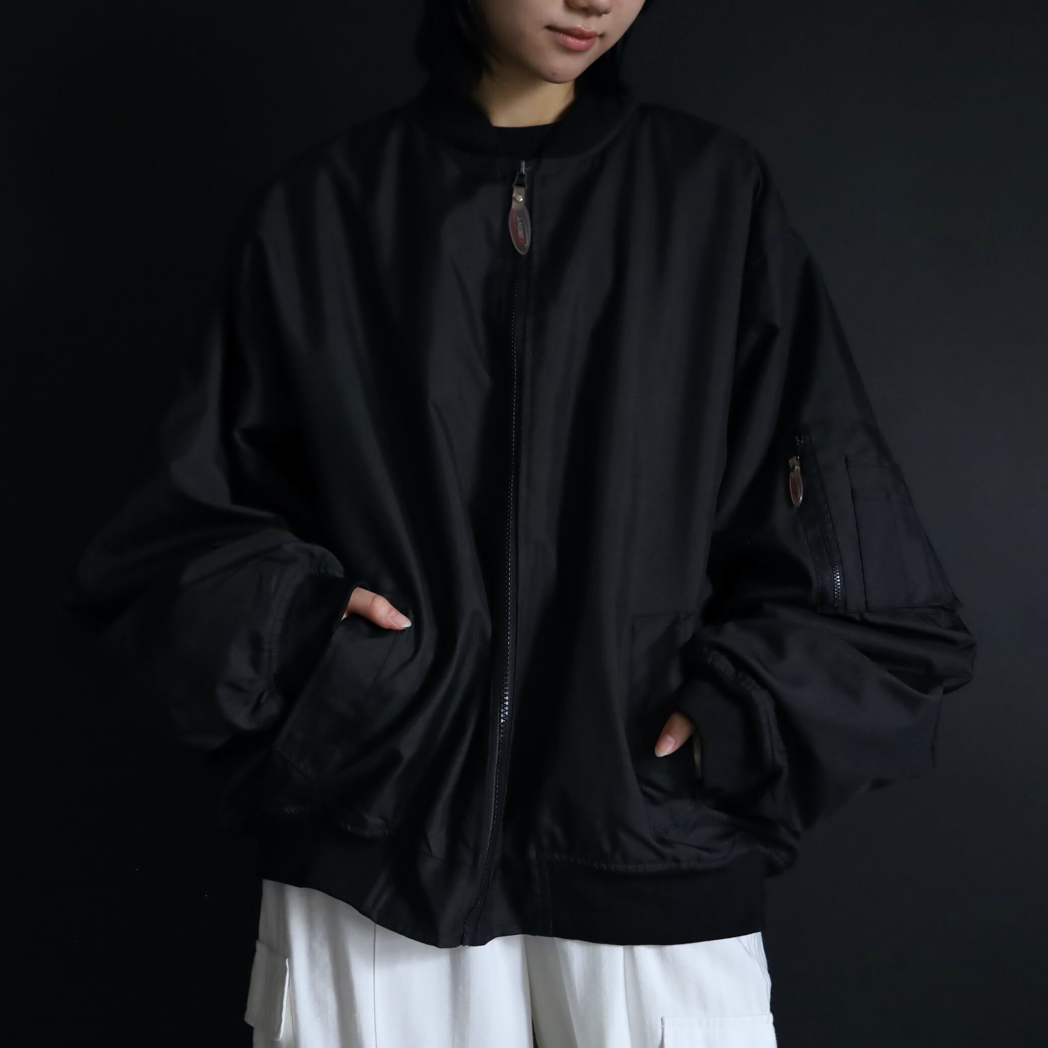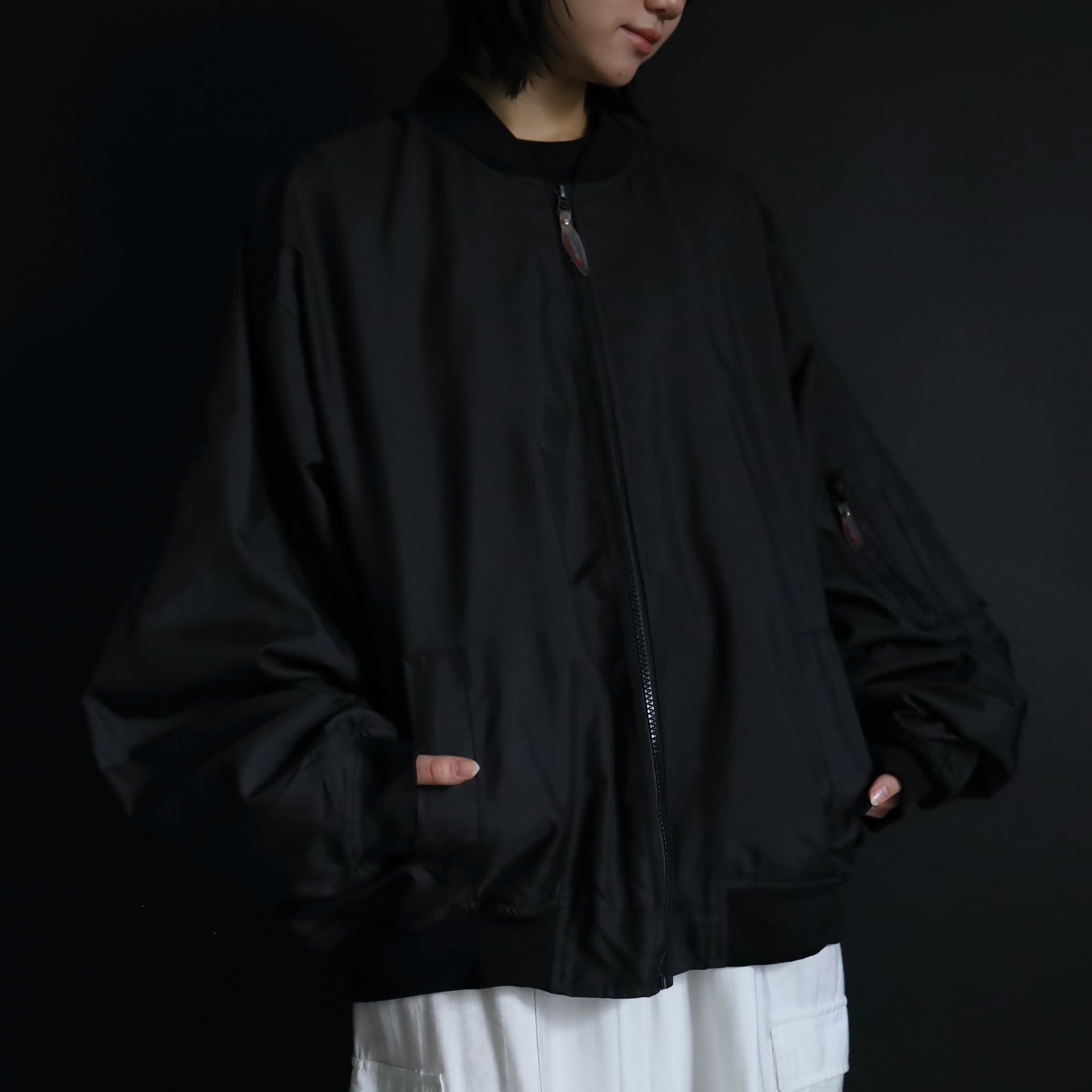 MA-1タイプのボンバーブルゾン.