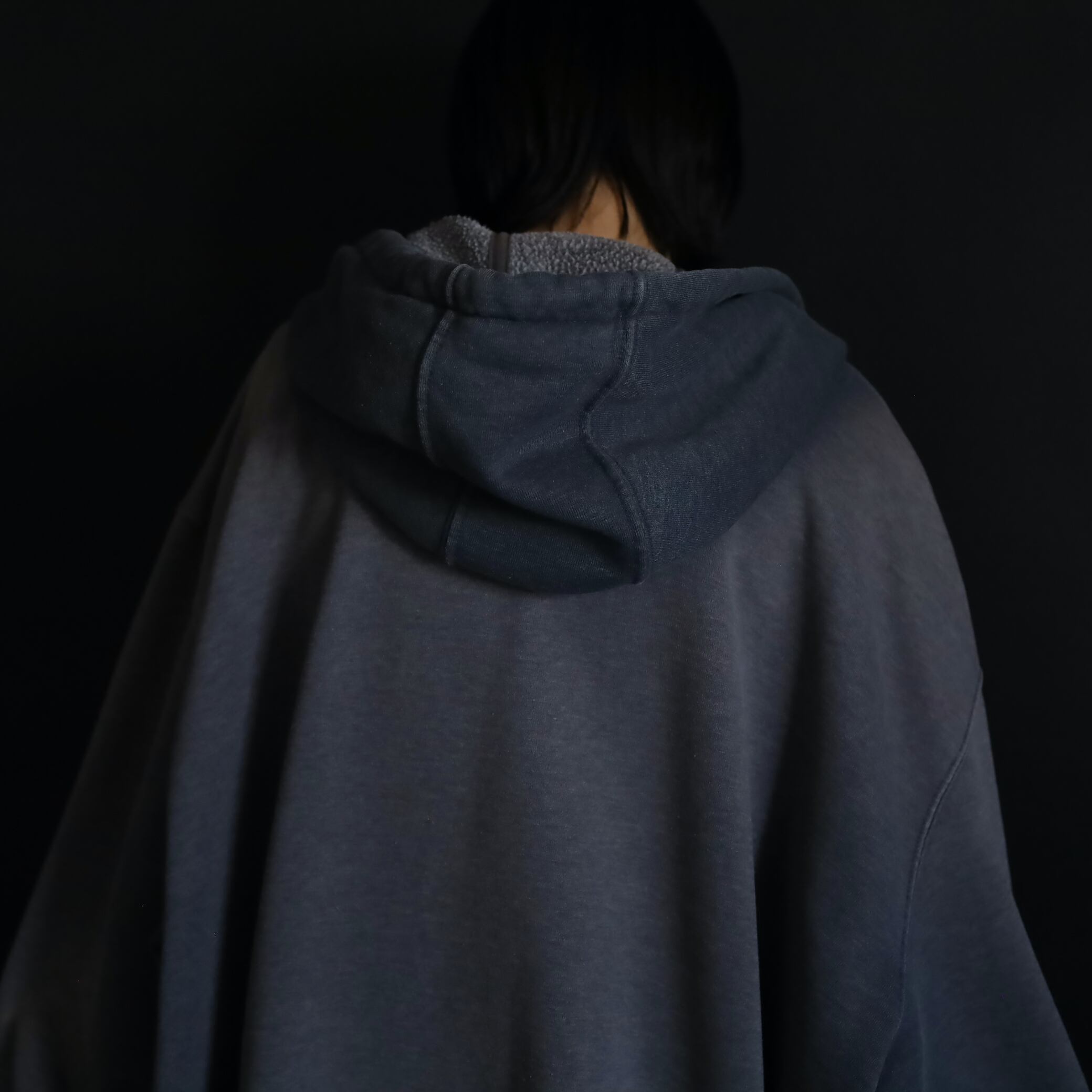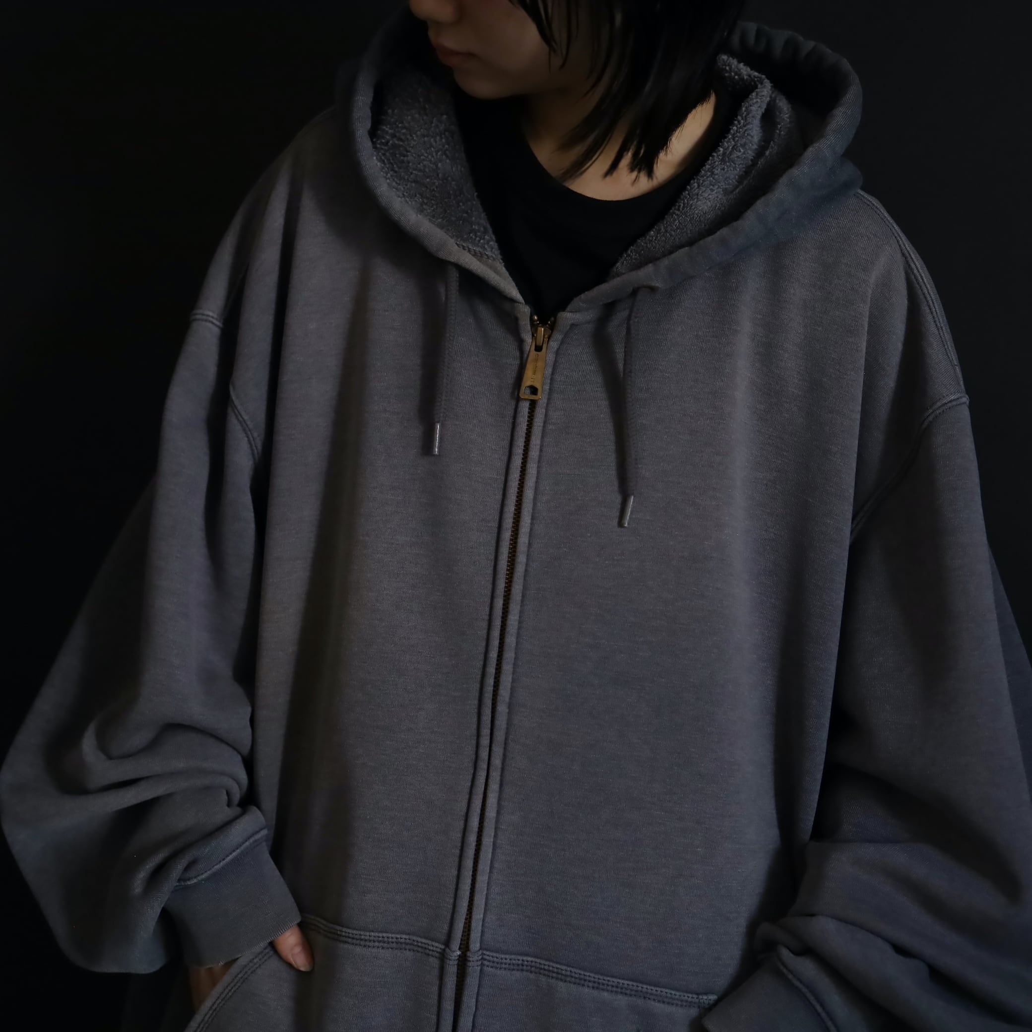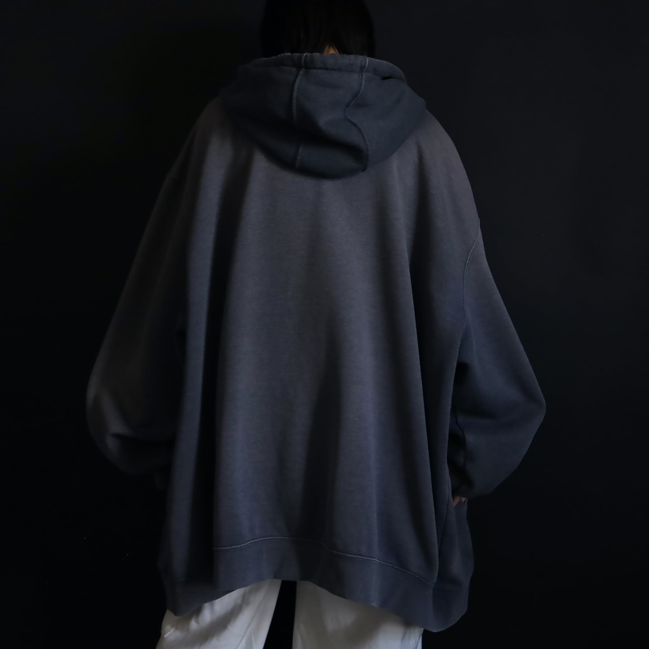 くったりと育った生地の落ち感が,このサイズと掛け合わさっただぼだぼ具合.