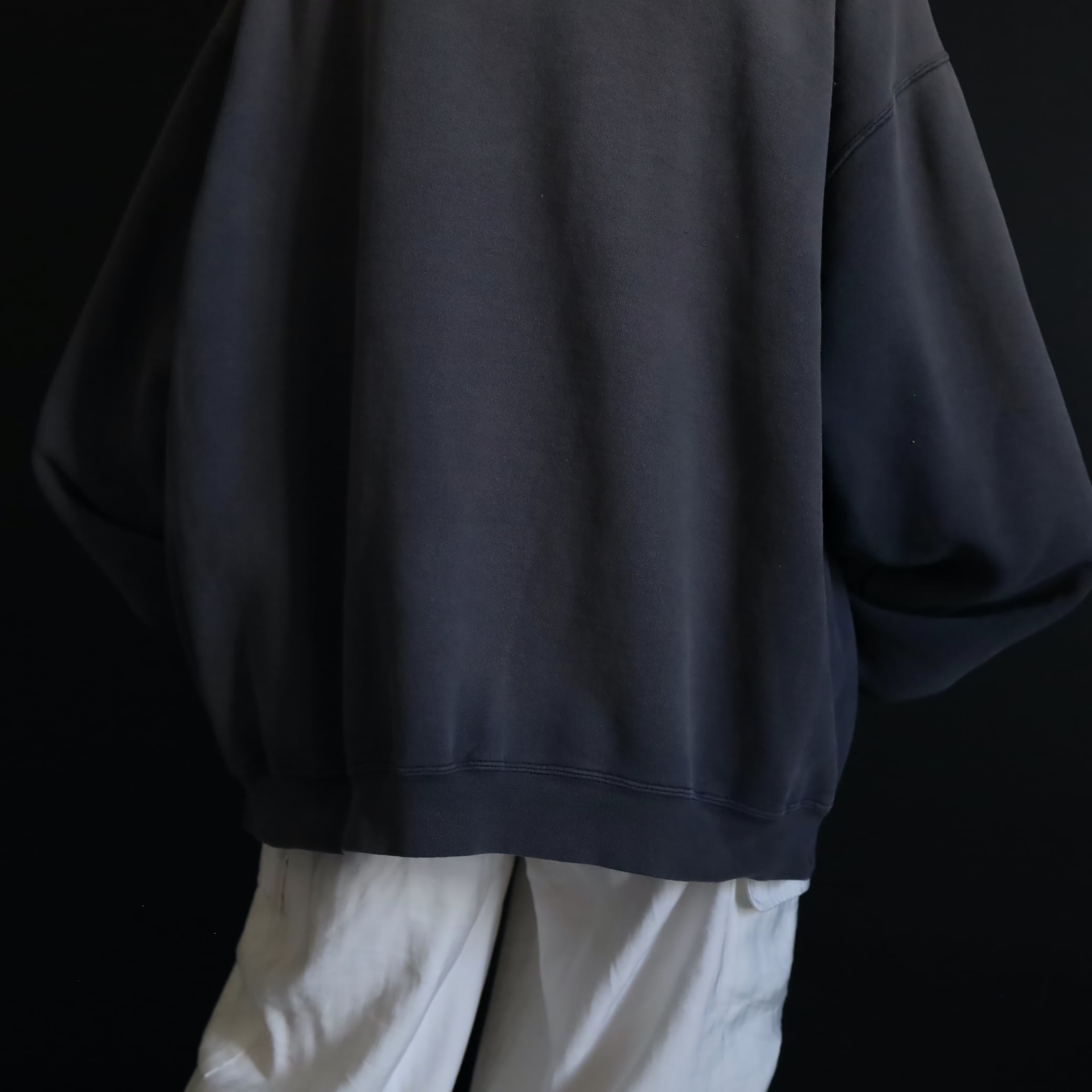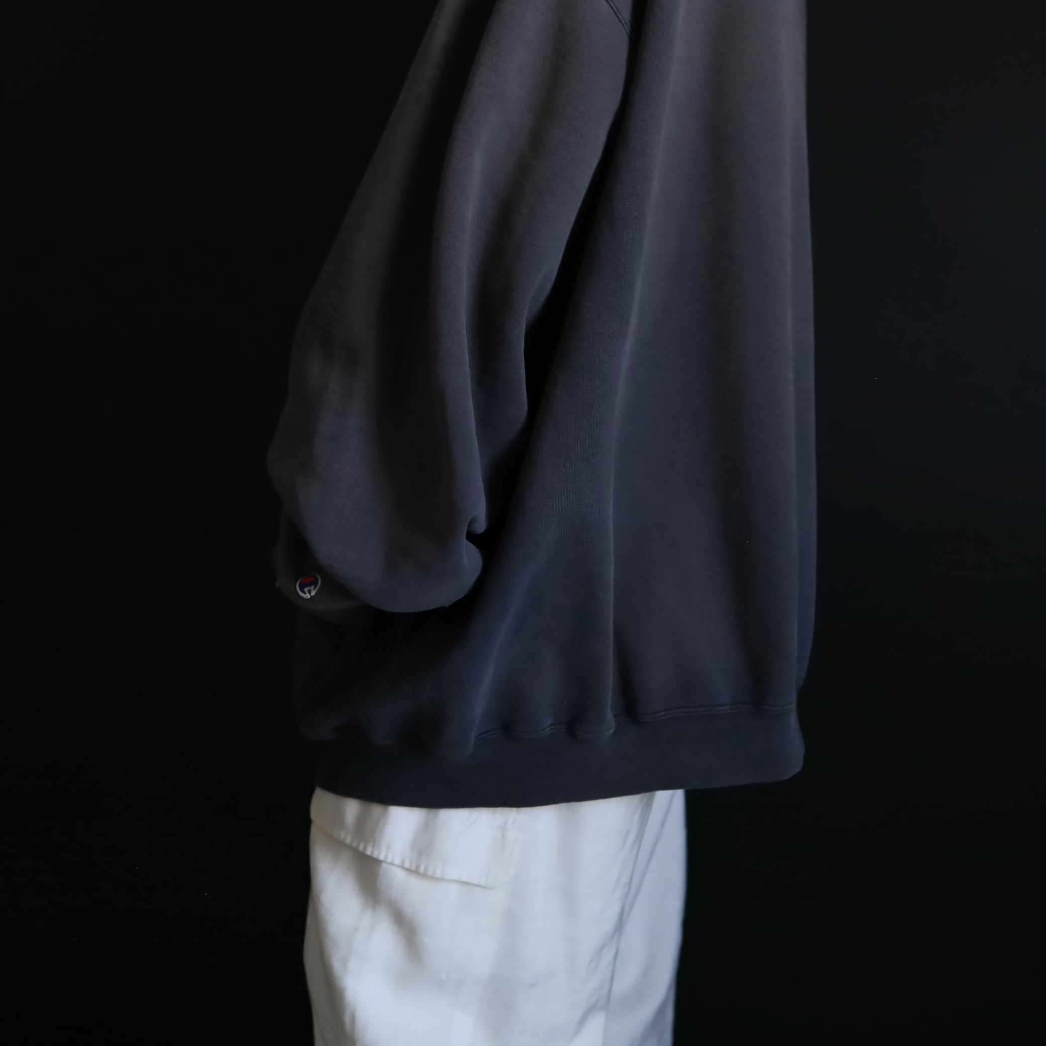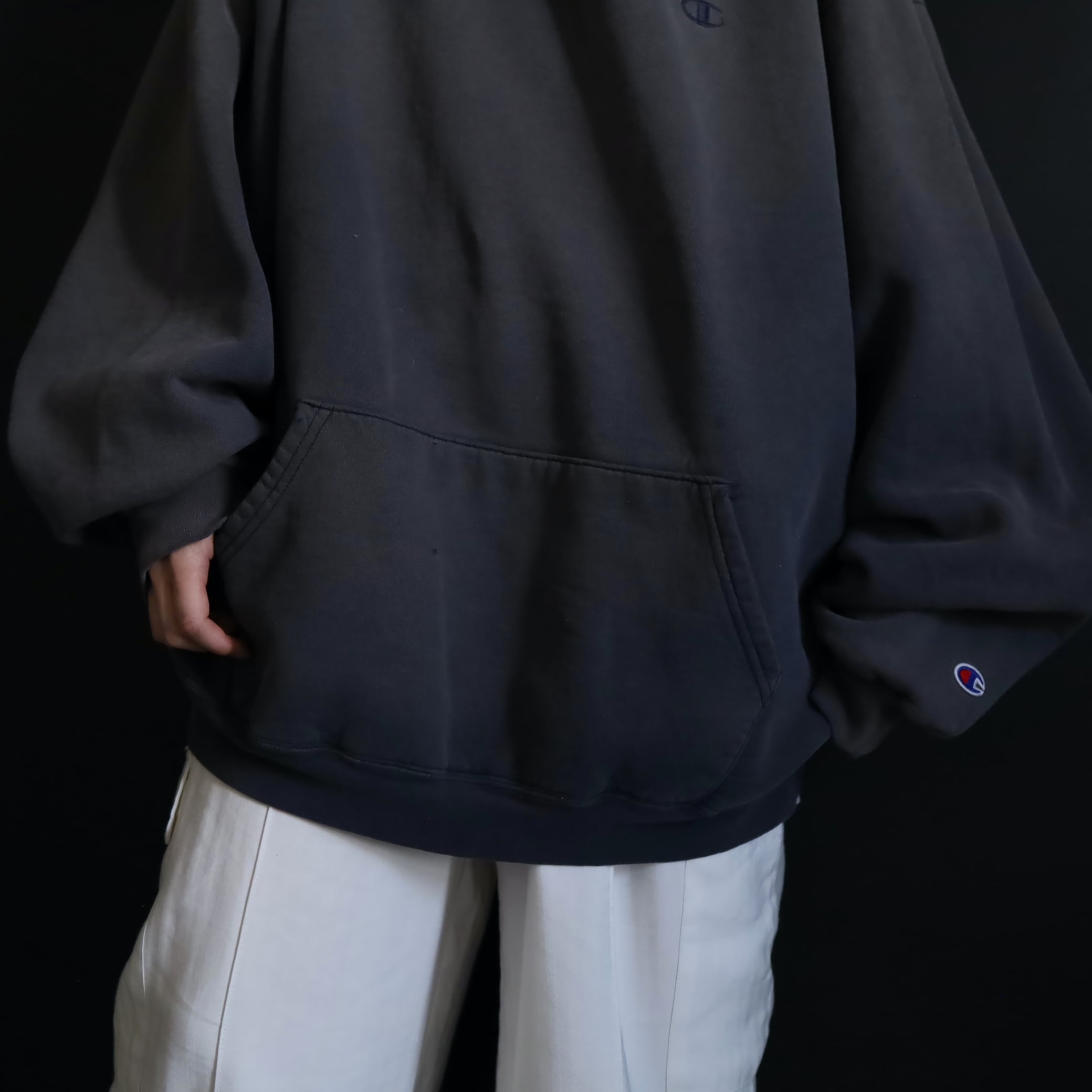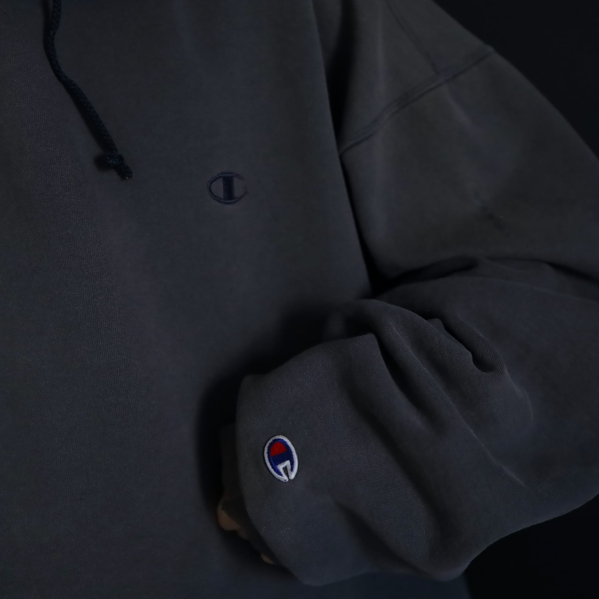 色落ちによるグラデーション味のある表情と,フードや各所に入ったクラッシュや生地の擦れで,グランジ感抜群の一枚に仕上がってます.