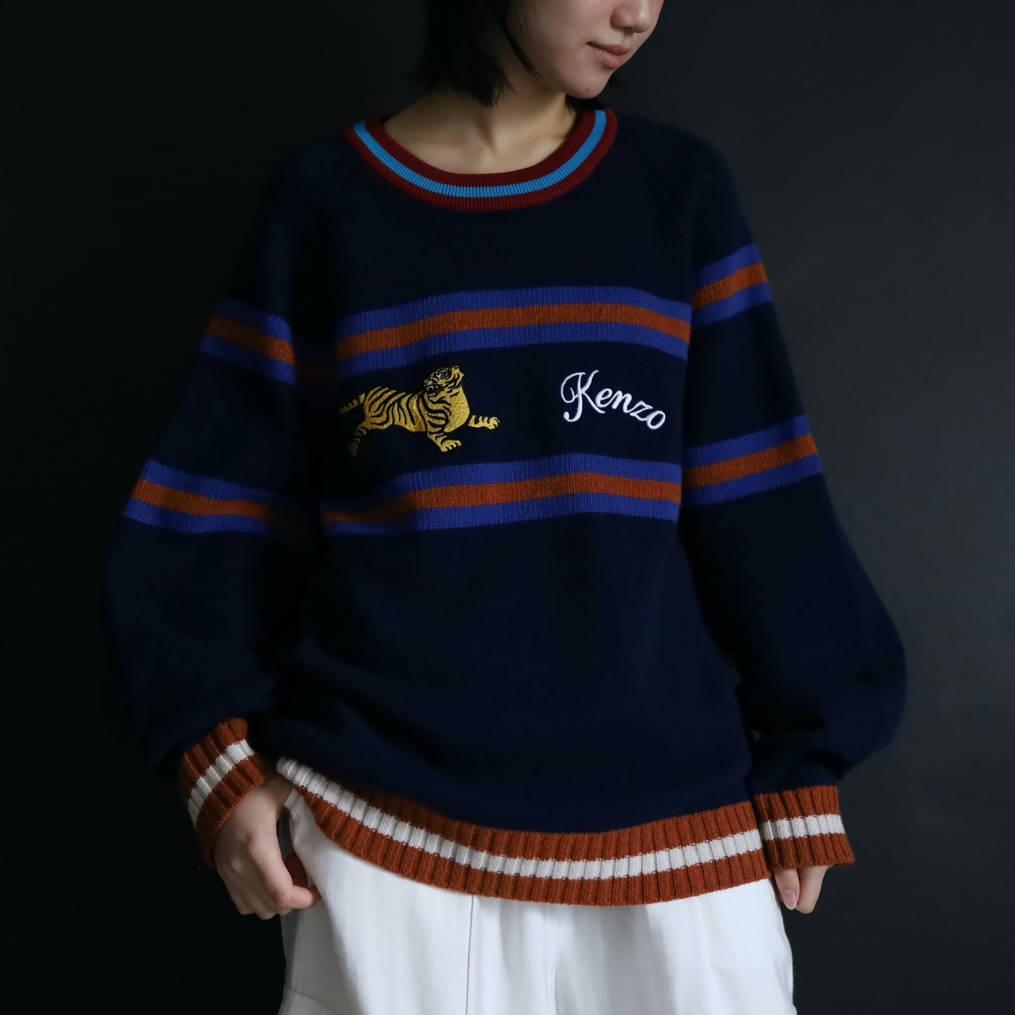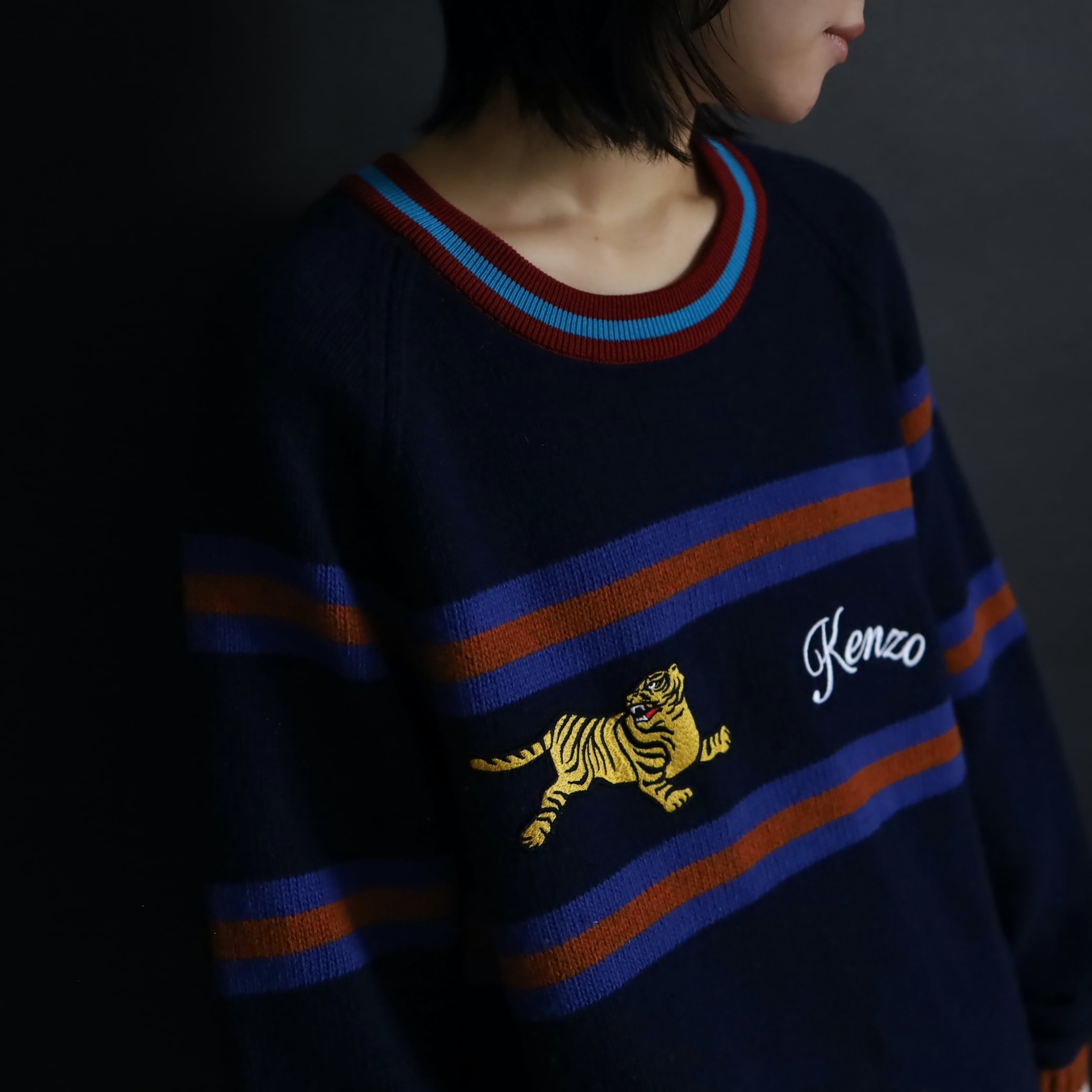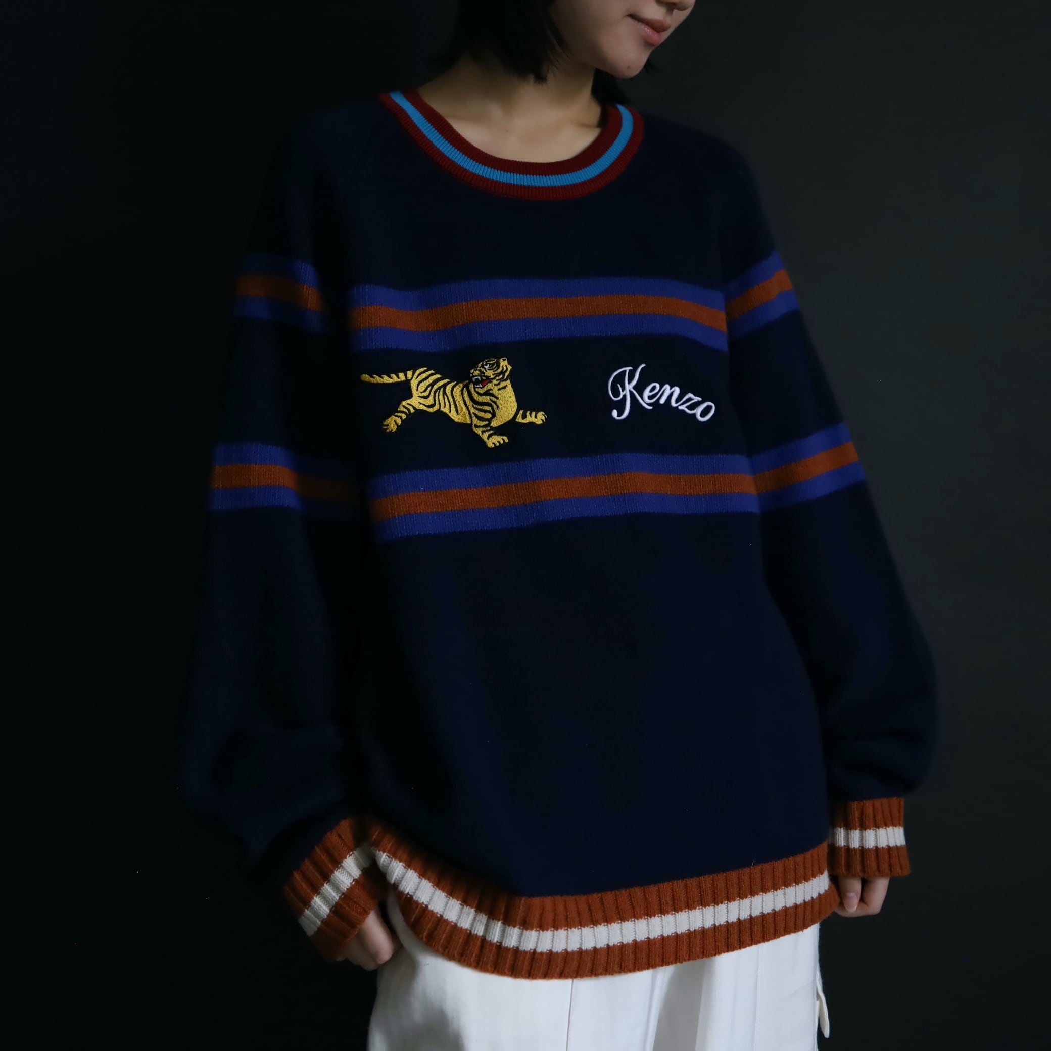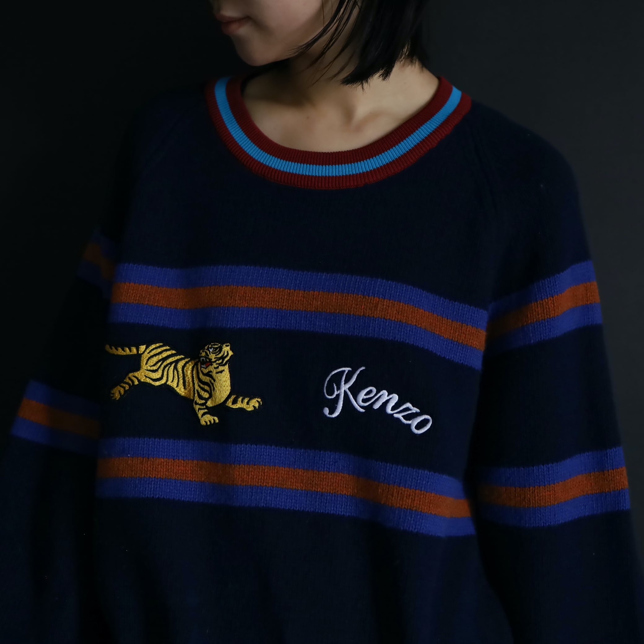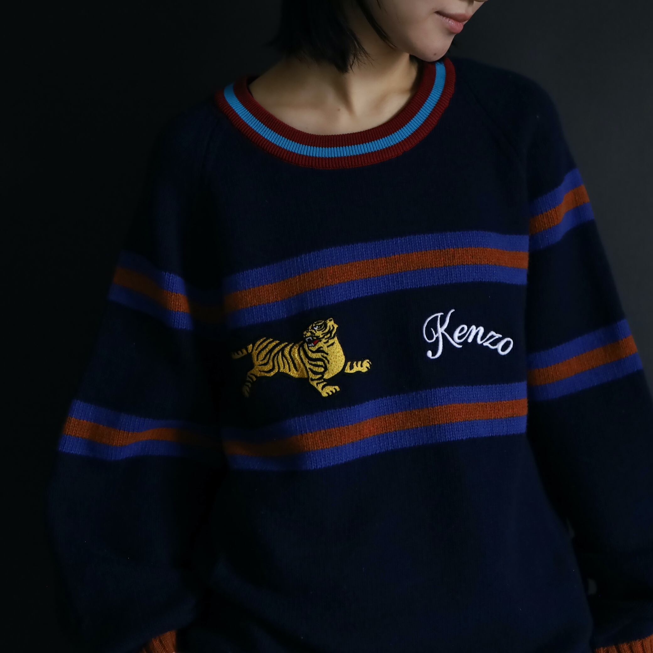 高田賢三氏がフランスで創設したKENZOより,ボーダーと刺繍デザインが利いたニットセーター.