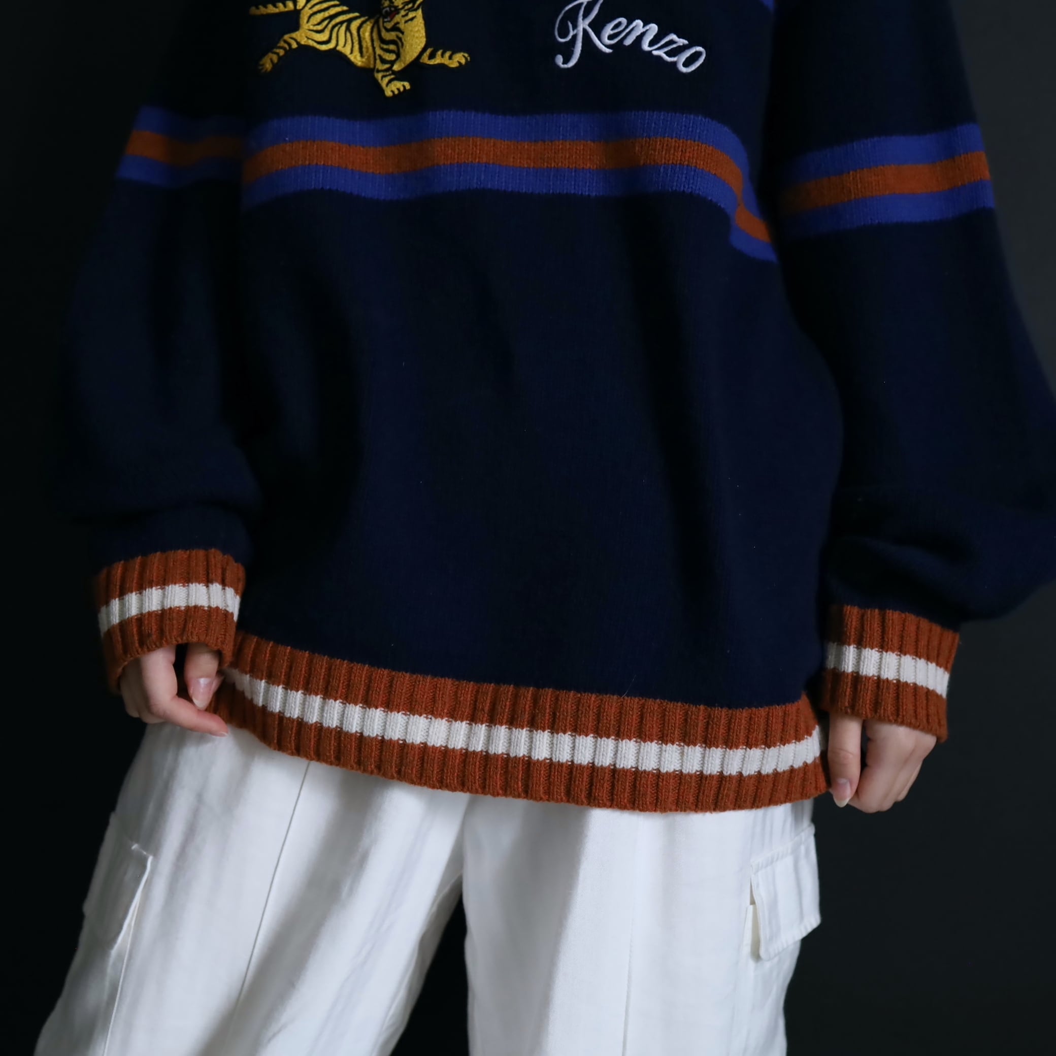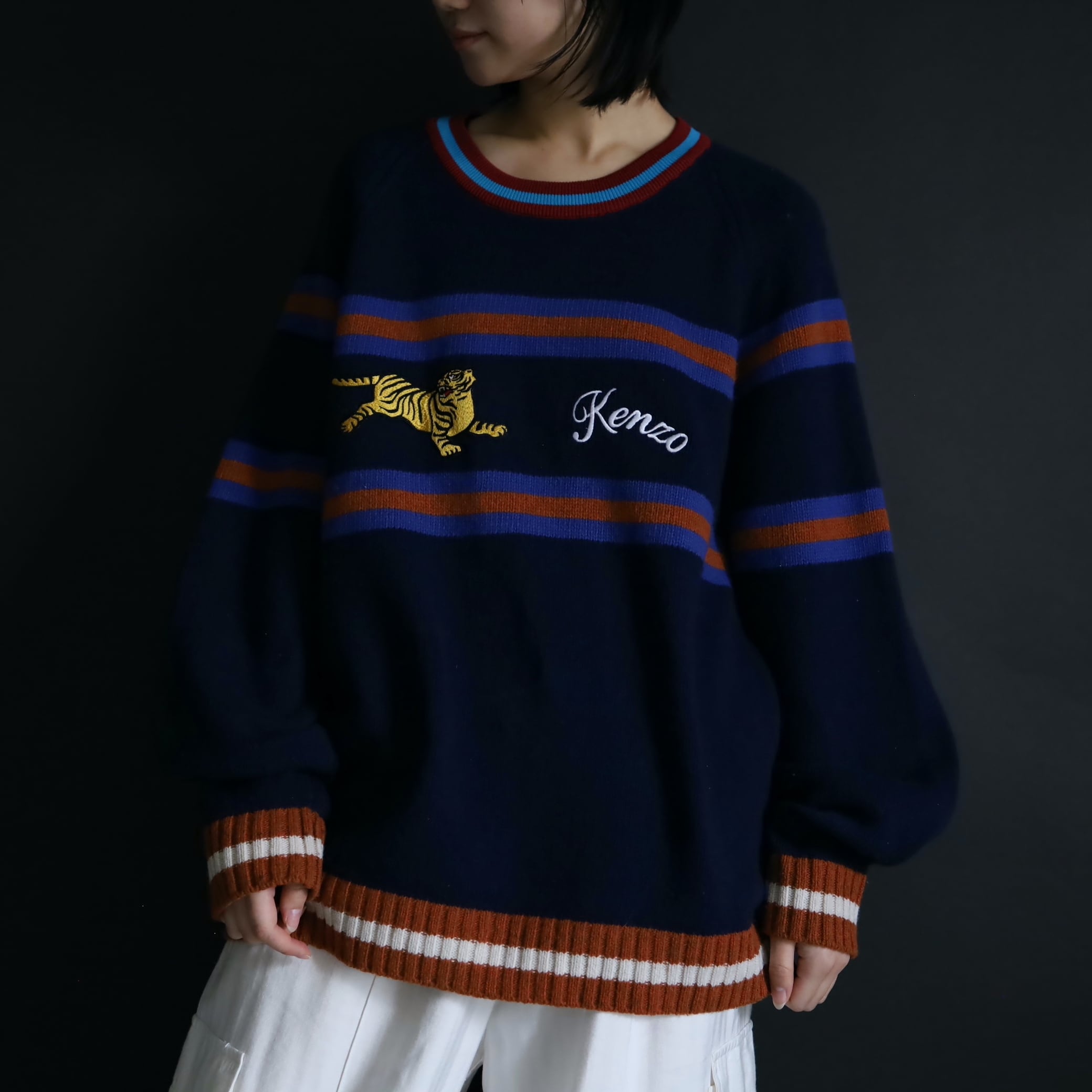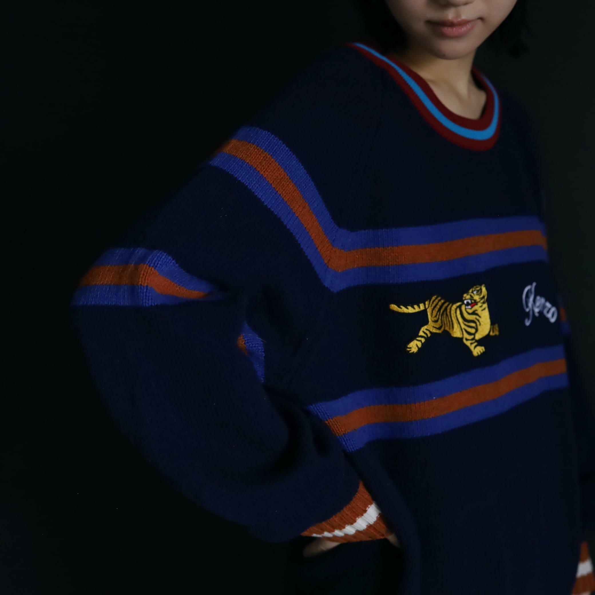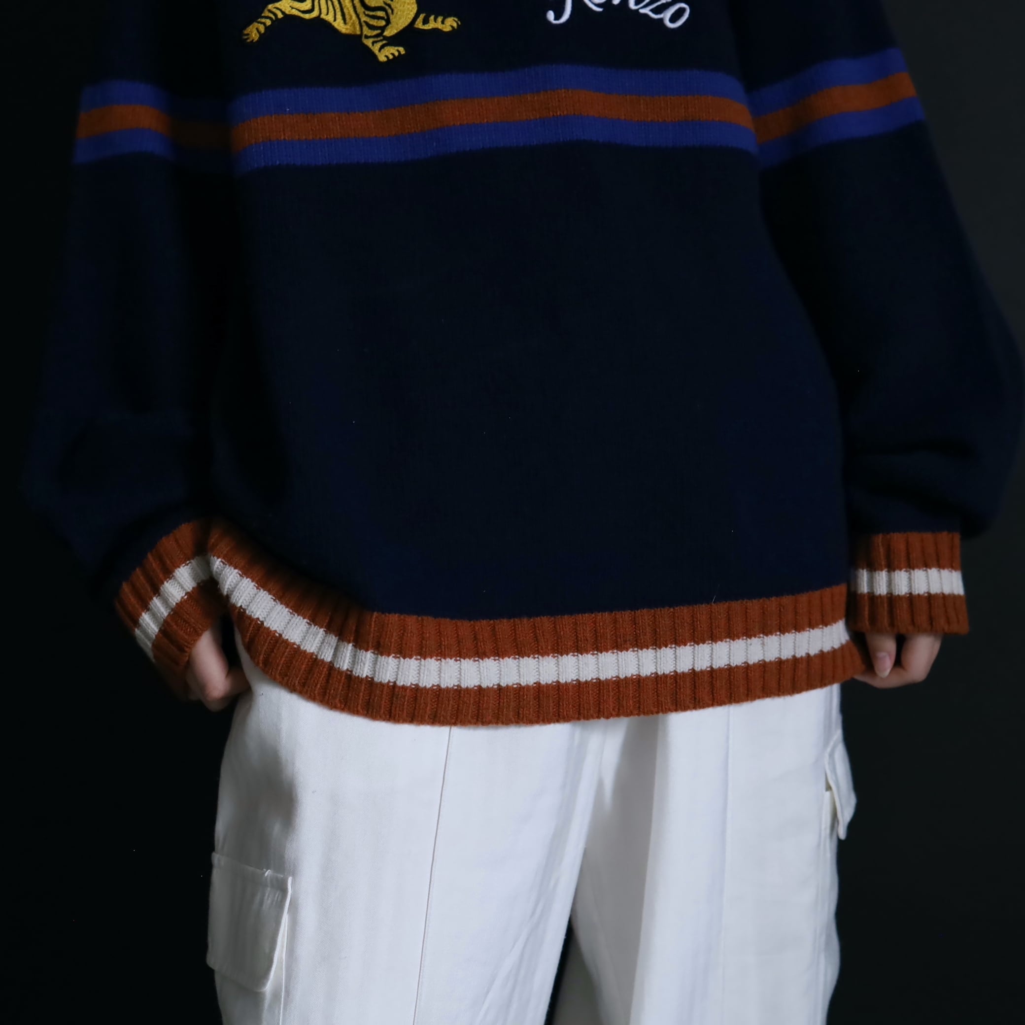 高田賢三氏がフランスで創設したKENZOより,ボーダーと刺繍デザインが利いたニットセーター.