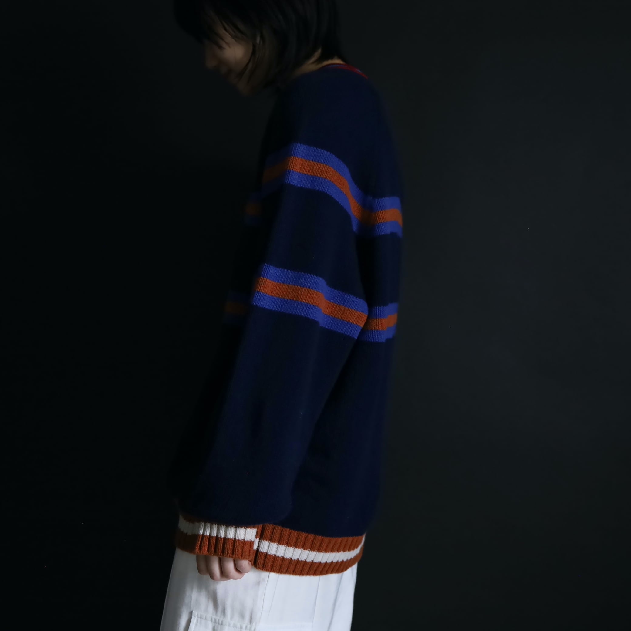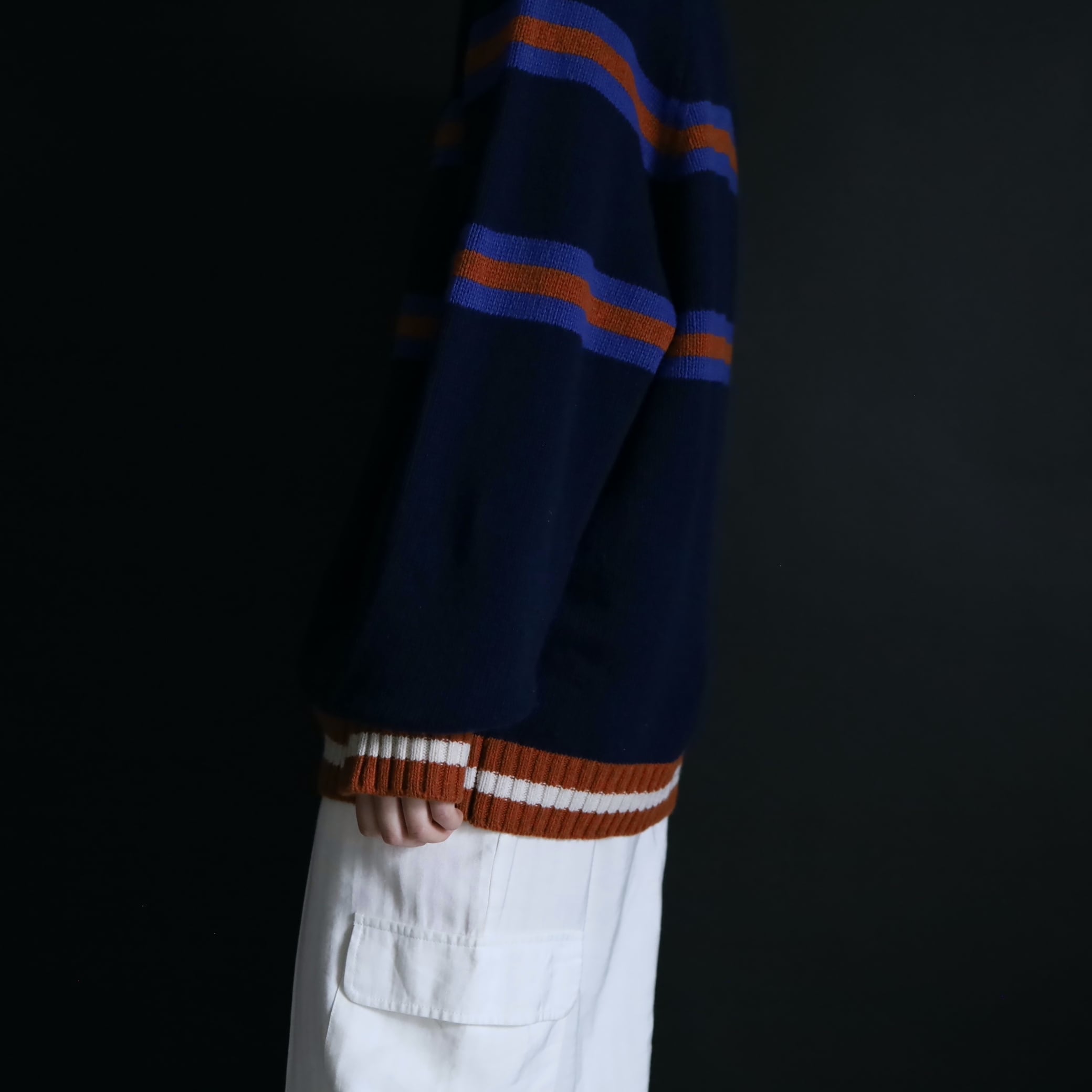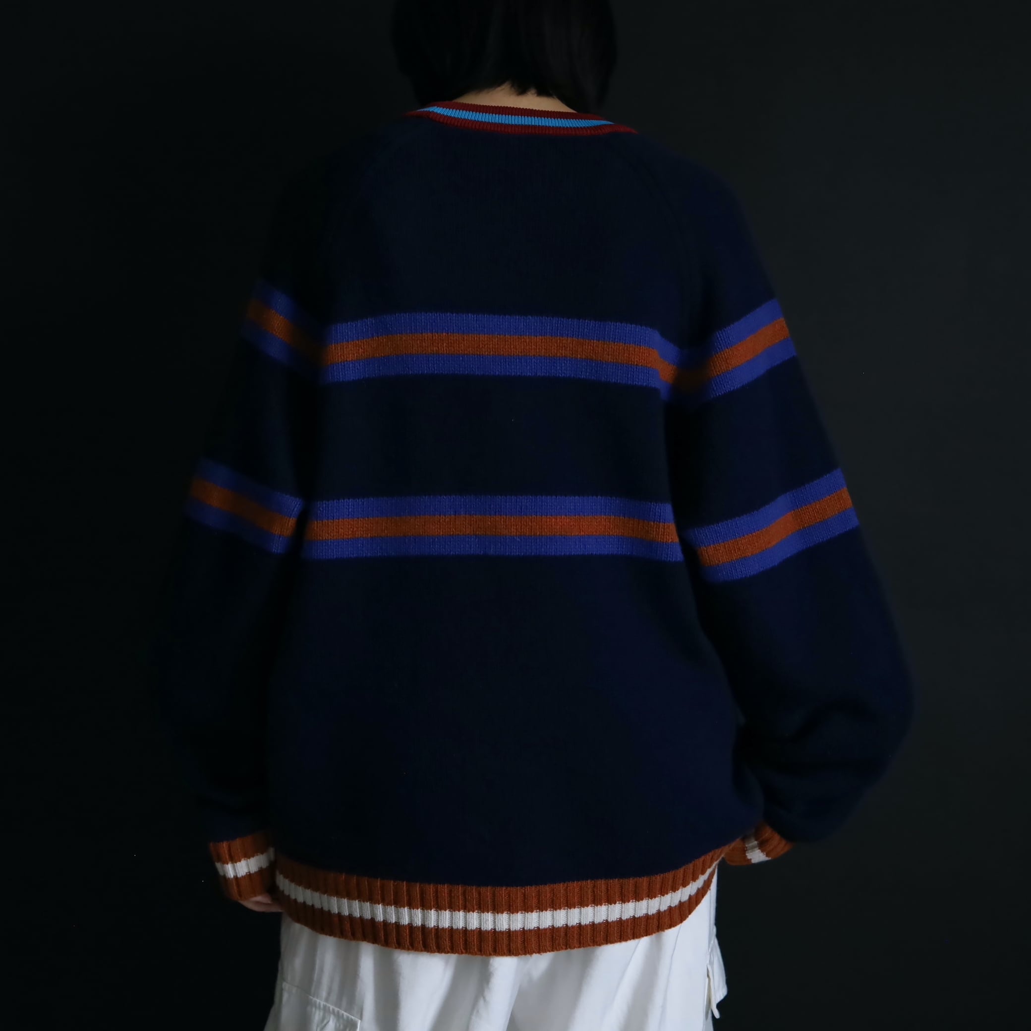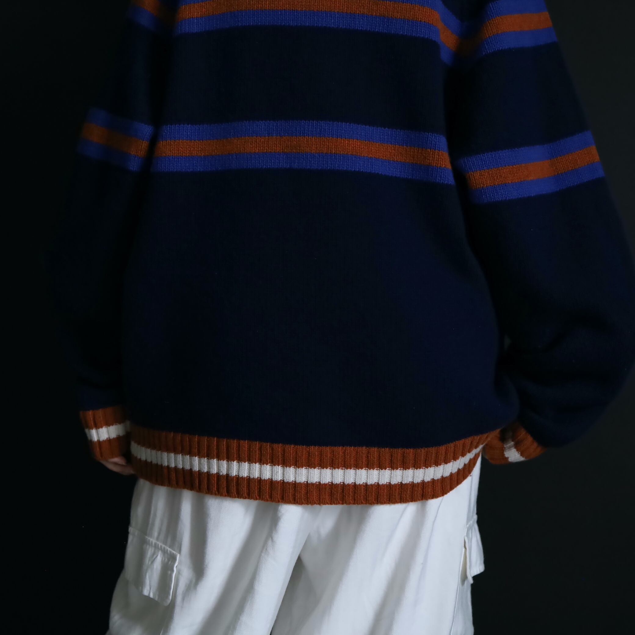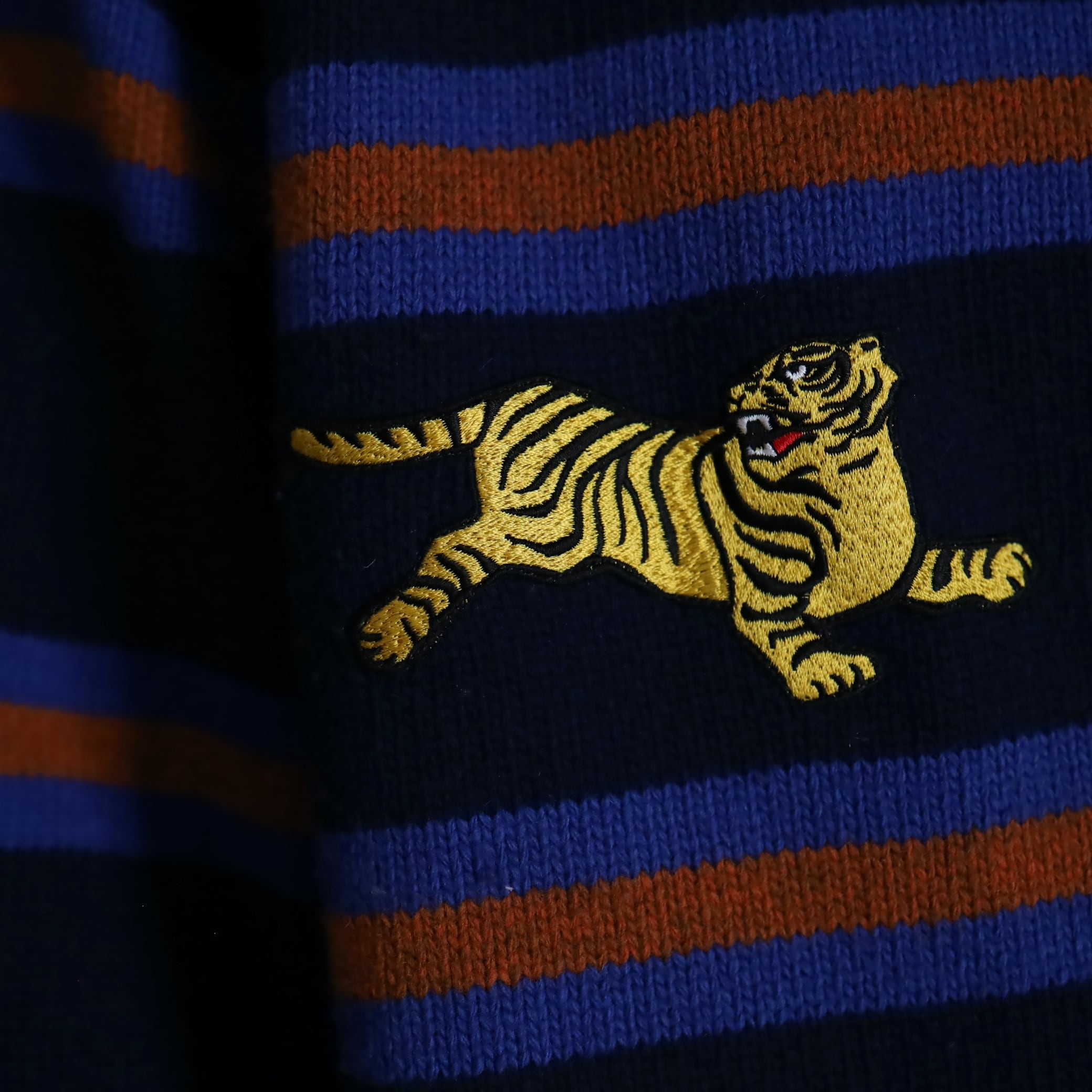 高田賢三氏がフランスで創設したKENZOより,ボーダーと刺繍デザインが利いたニットセーター.