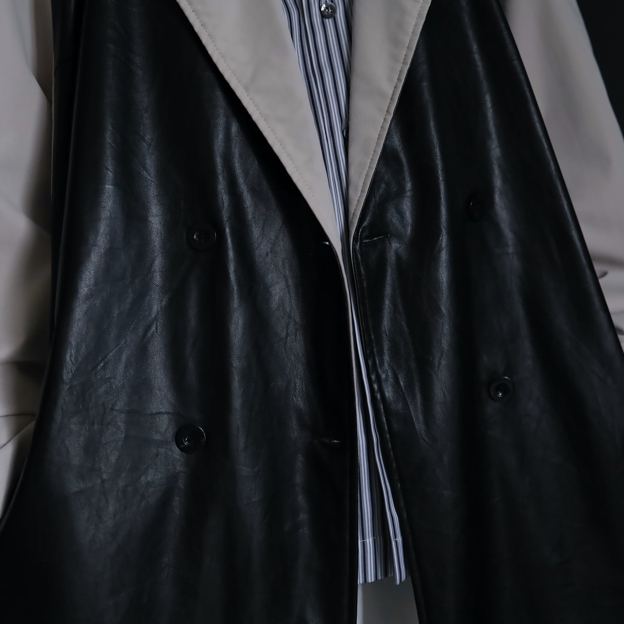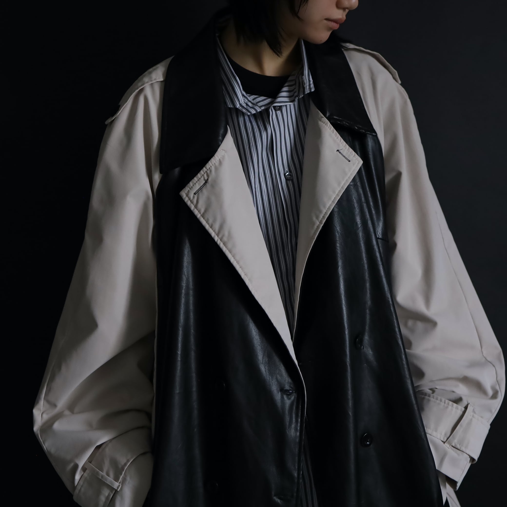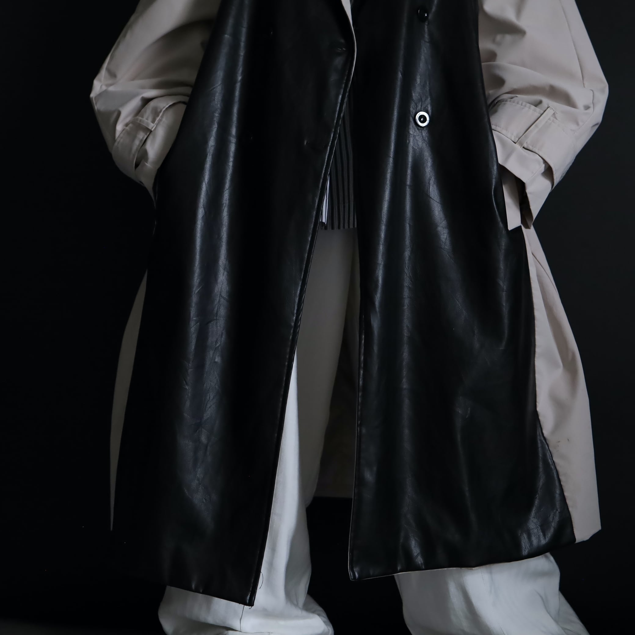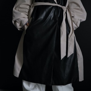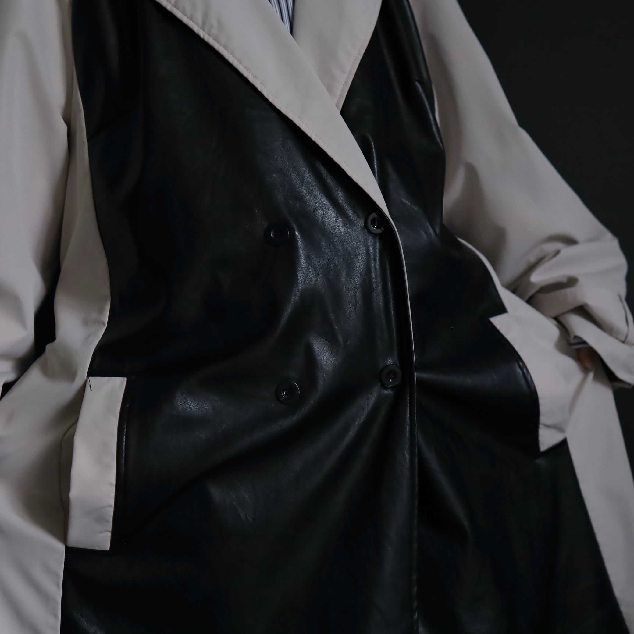 ベージュカラーのボディをベースに,前身頃がブラックのフェイクレザー切替.