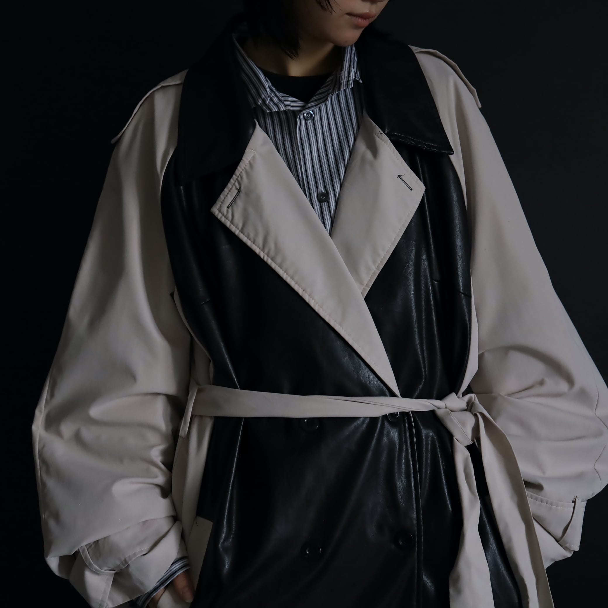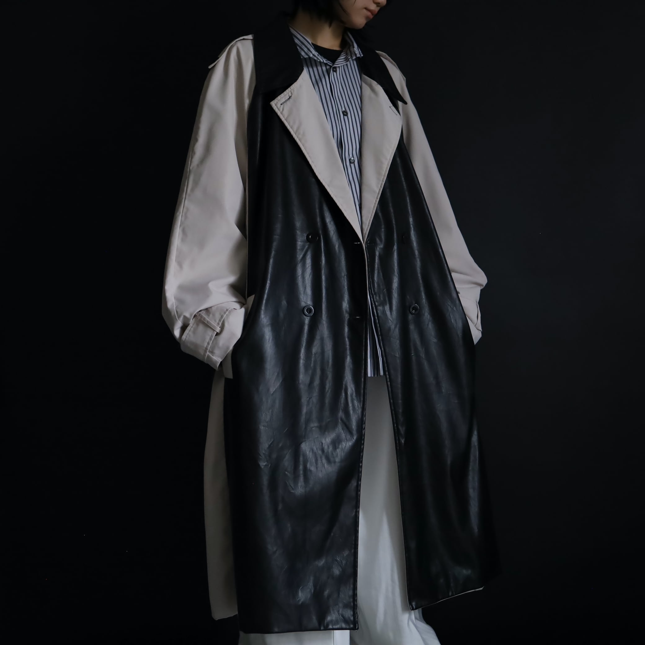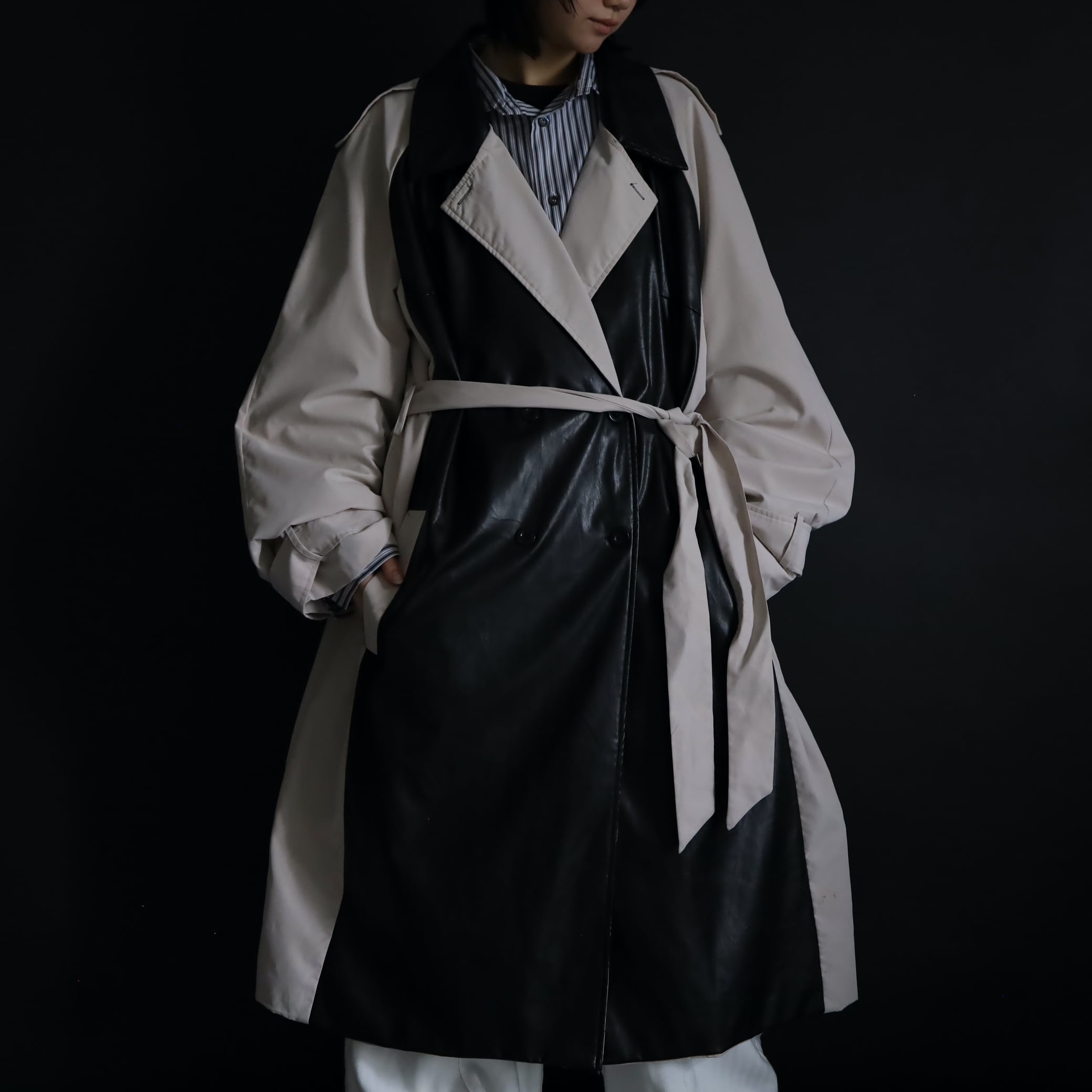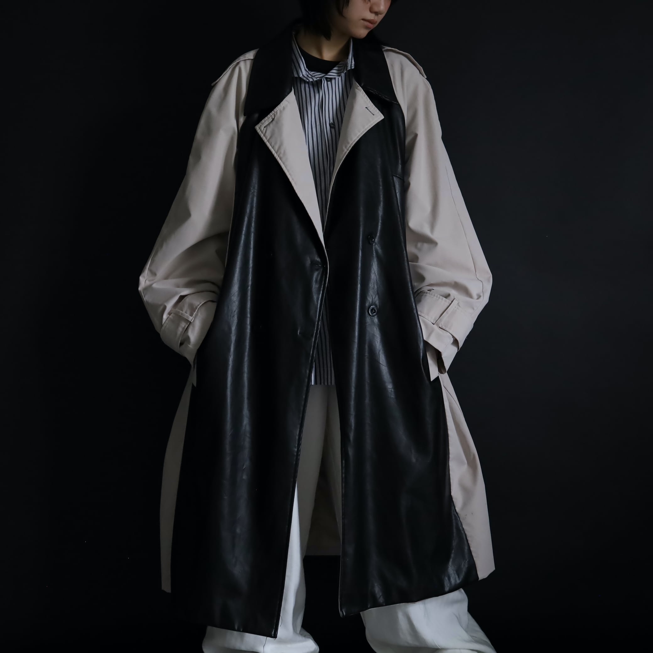 異素材切替のモードなトレンチコート.