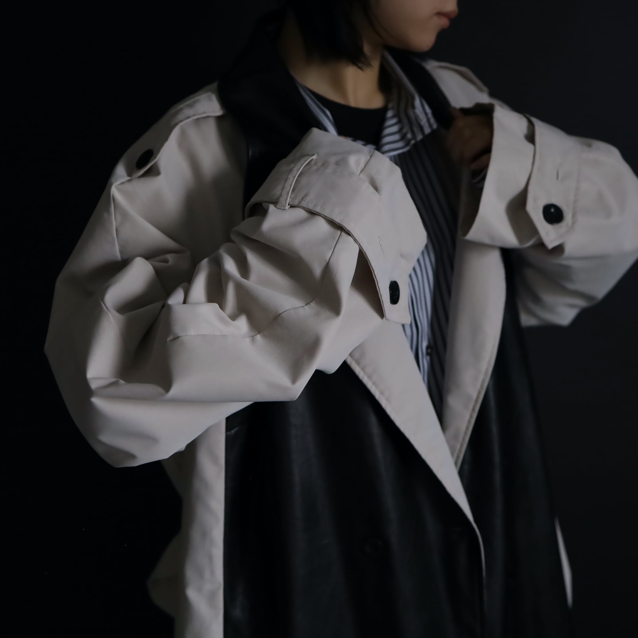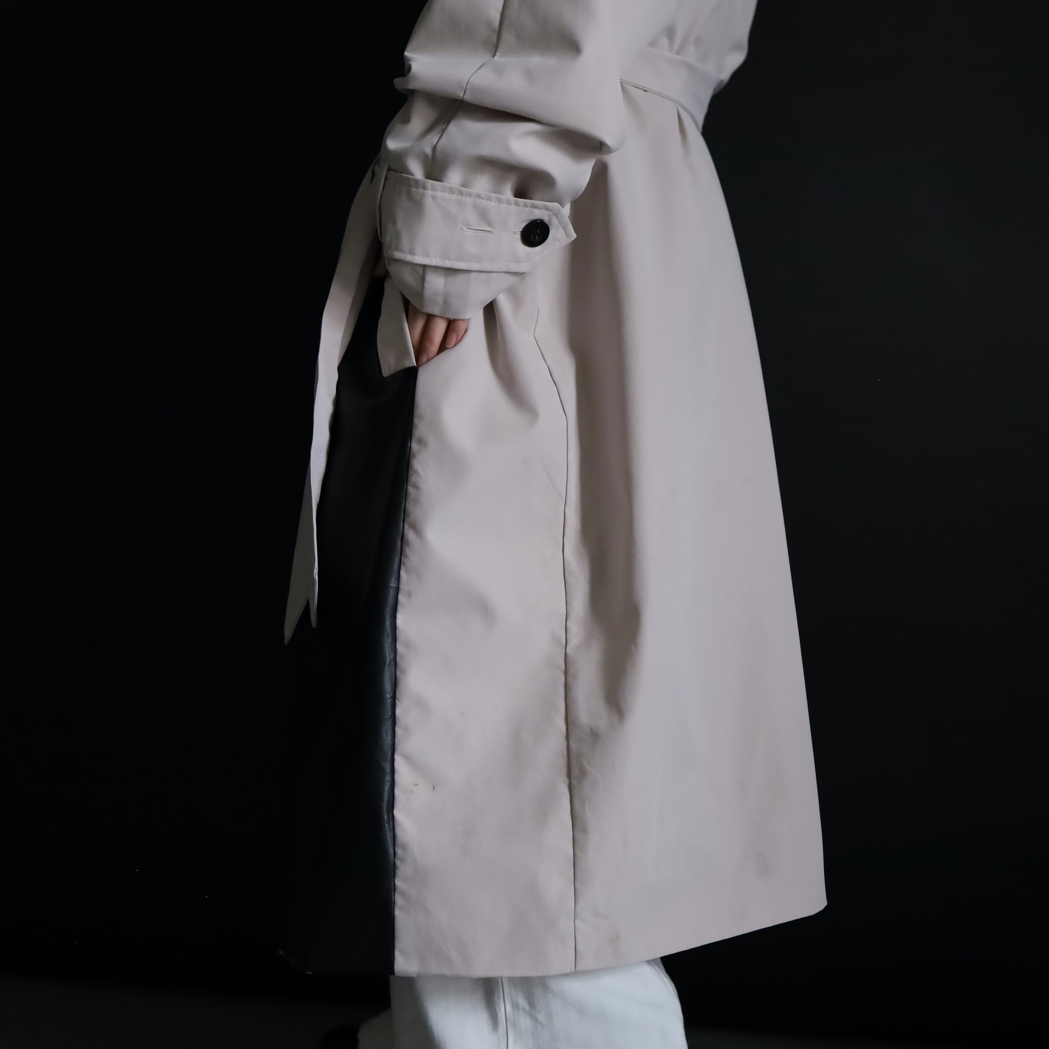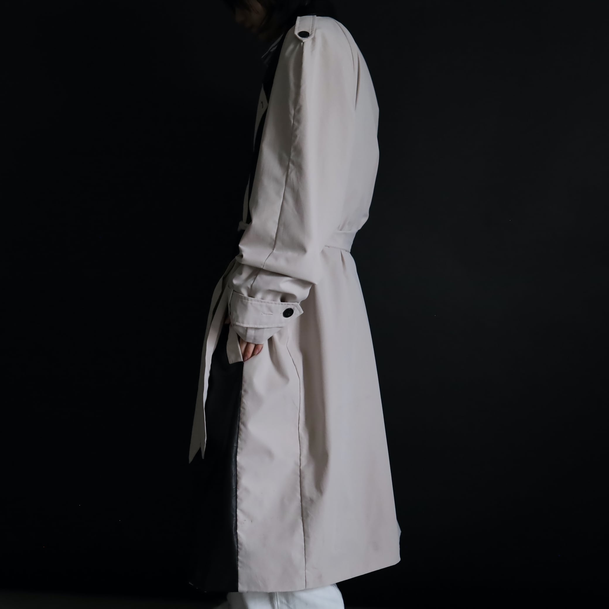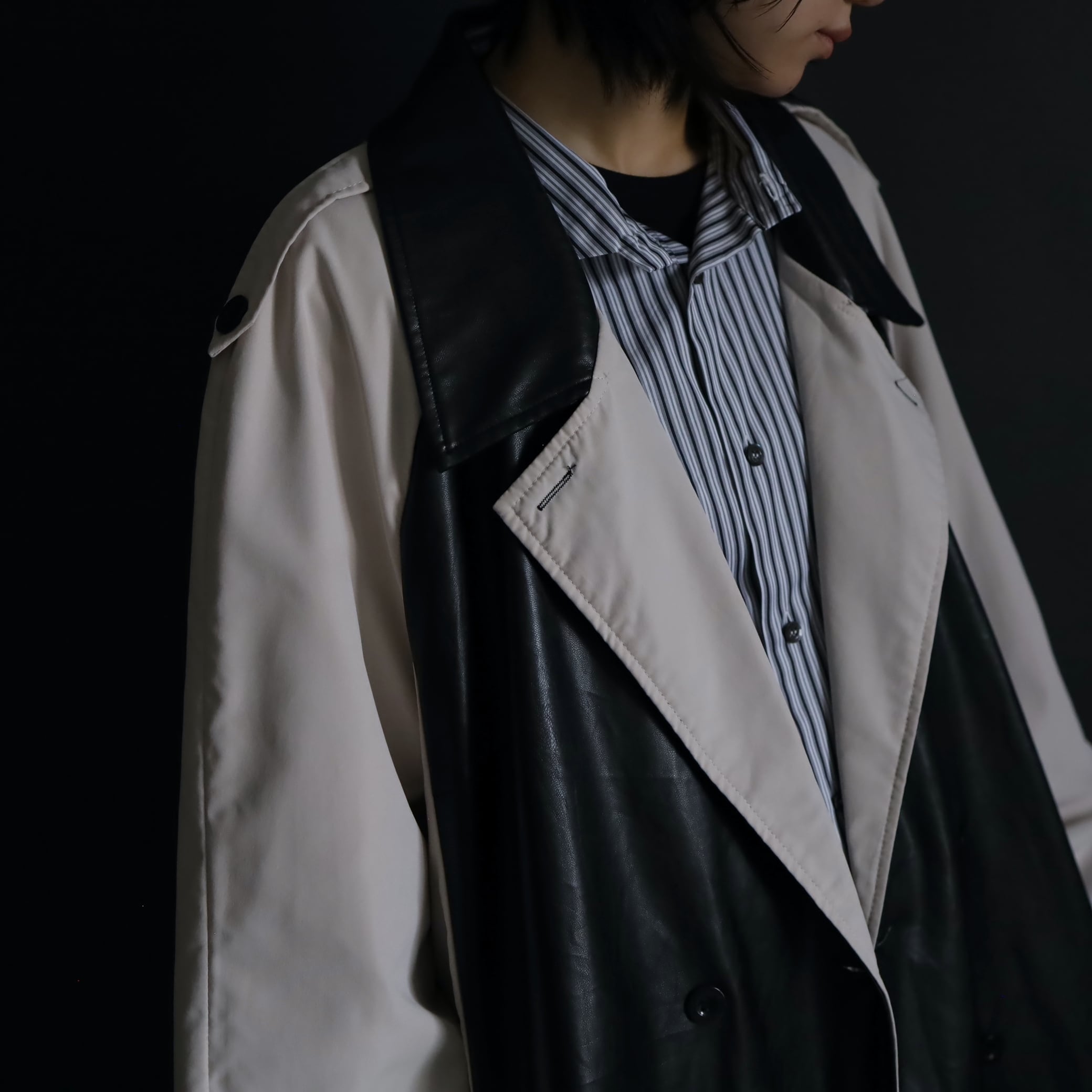 異素材切替のモードなトレンチコート.