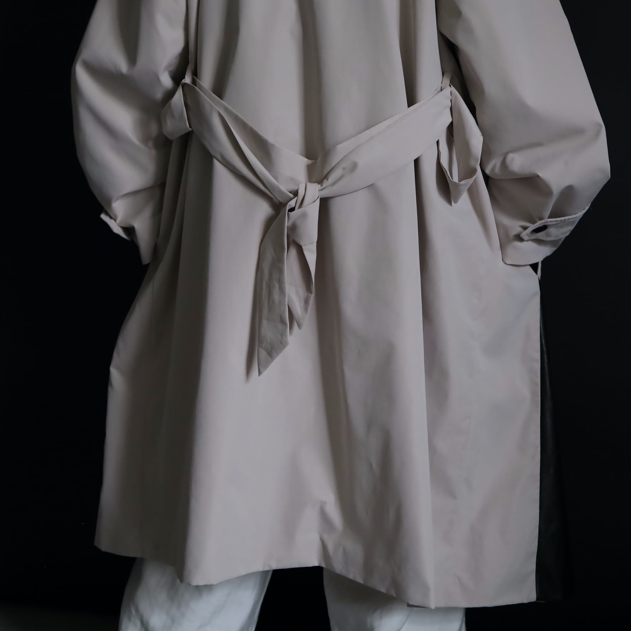 あえてベルトを背面に纏めて,前開きでラフに羽織ってしまうのも良しです.