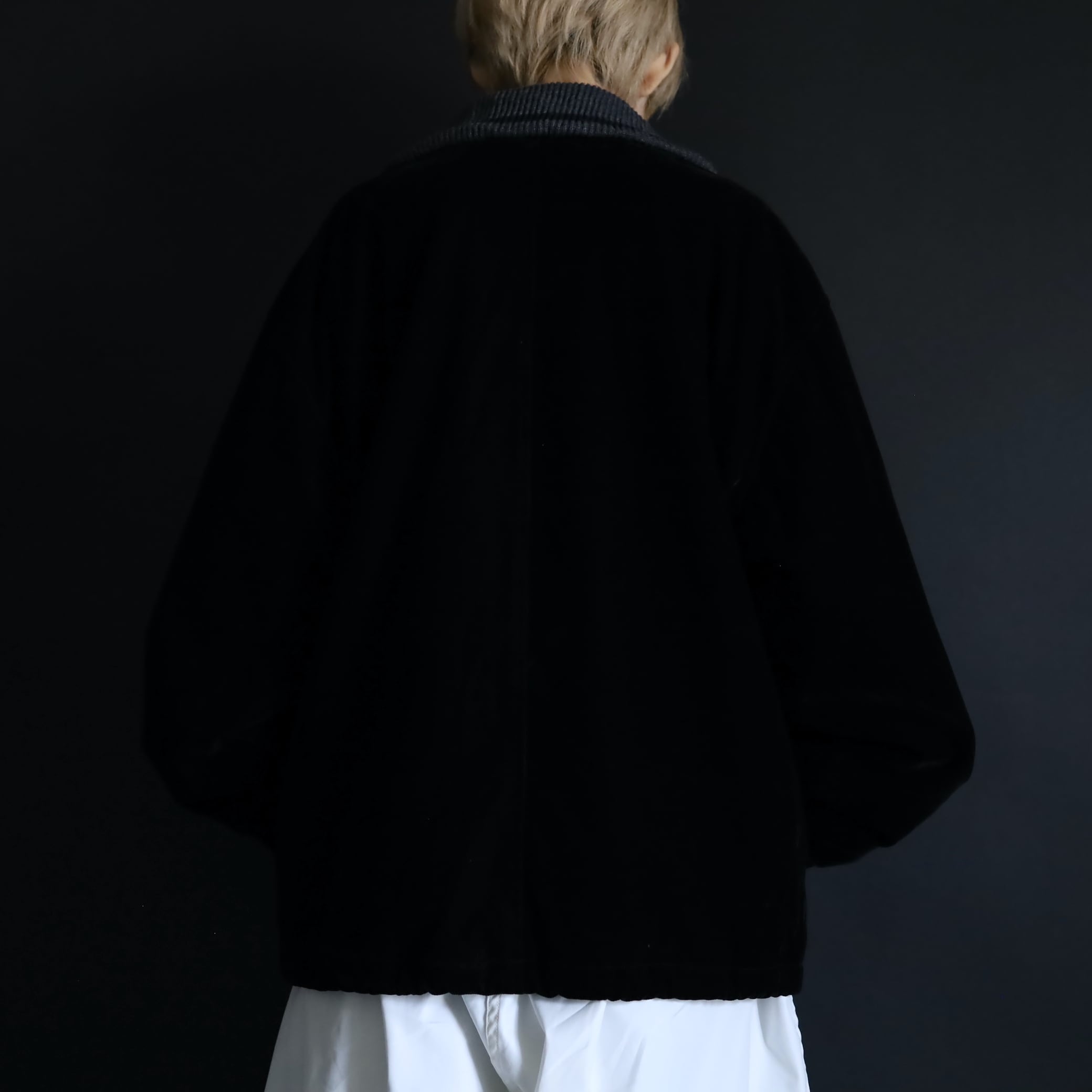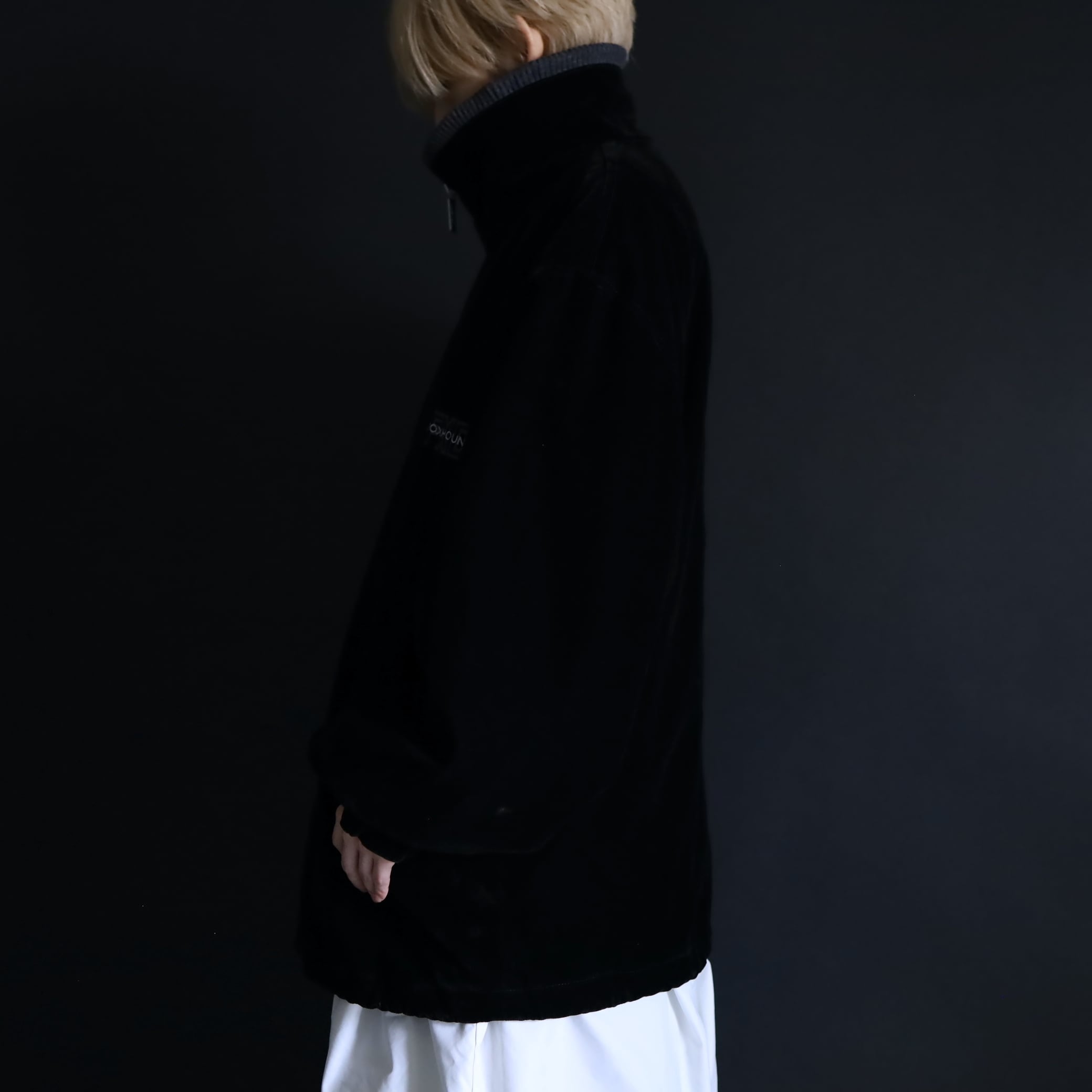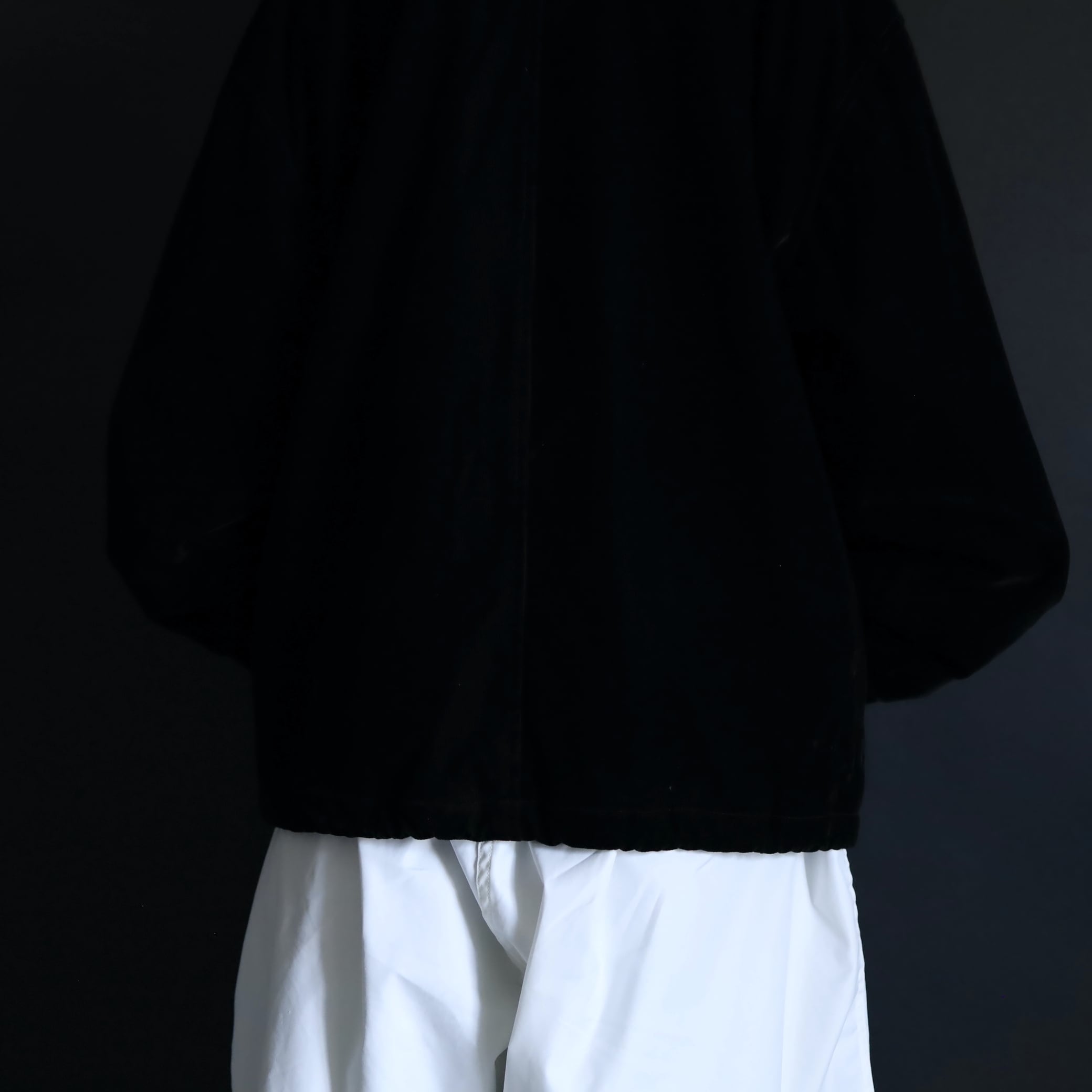 トップから少しジップを下げネックを畳めば,擬似的な襟を作り出すことが出来るため,2wayなルックスでお楽しみいただけます.