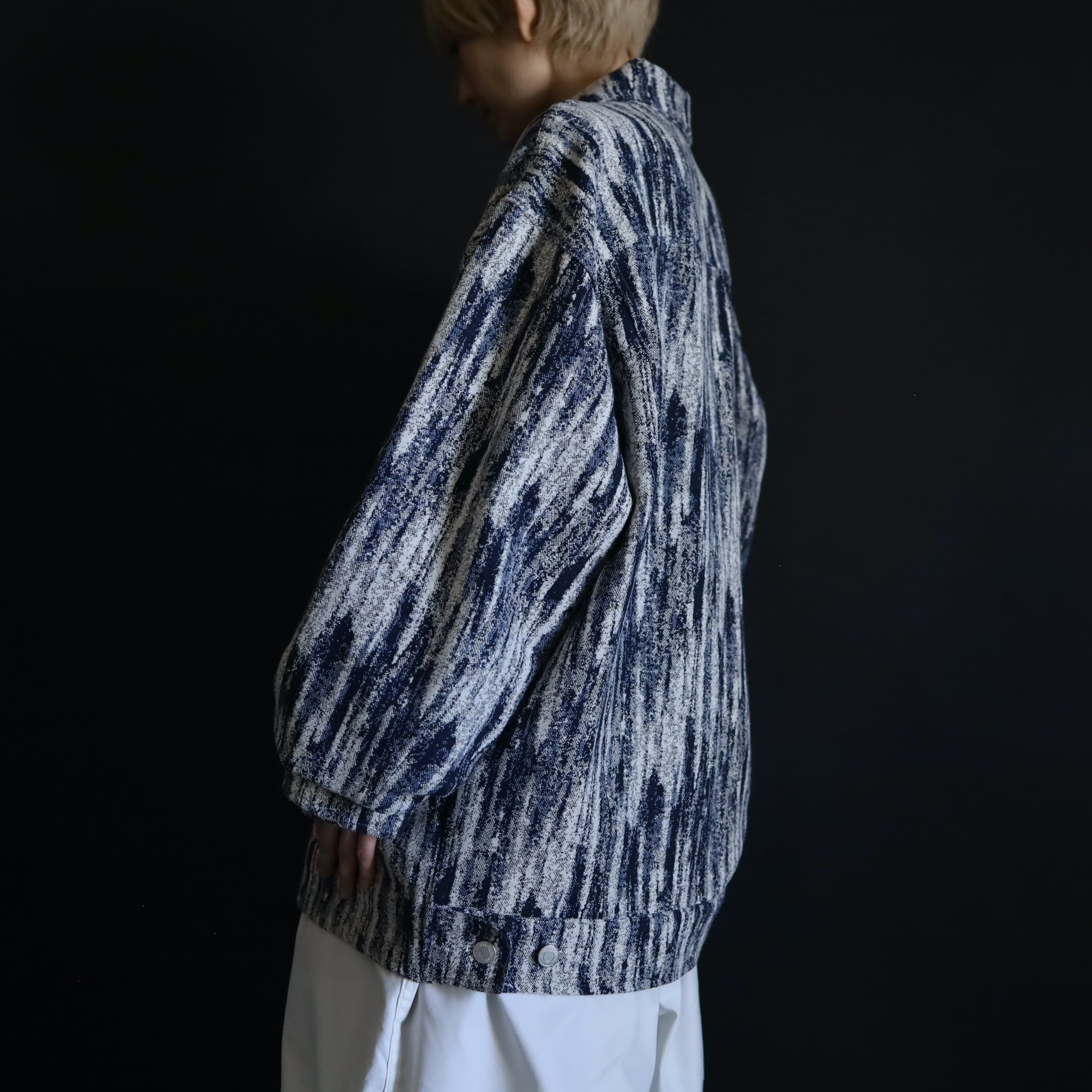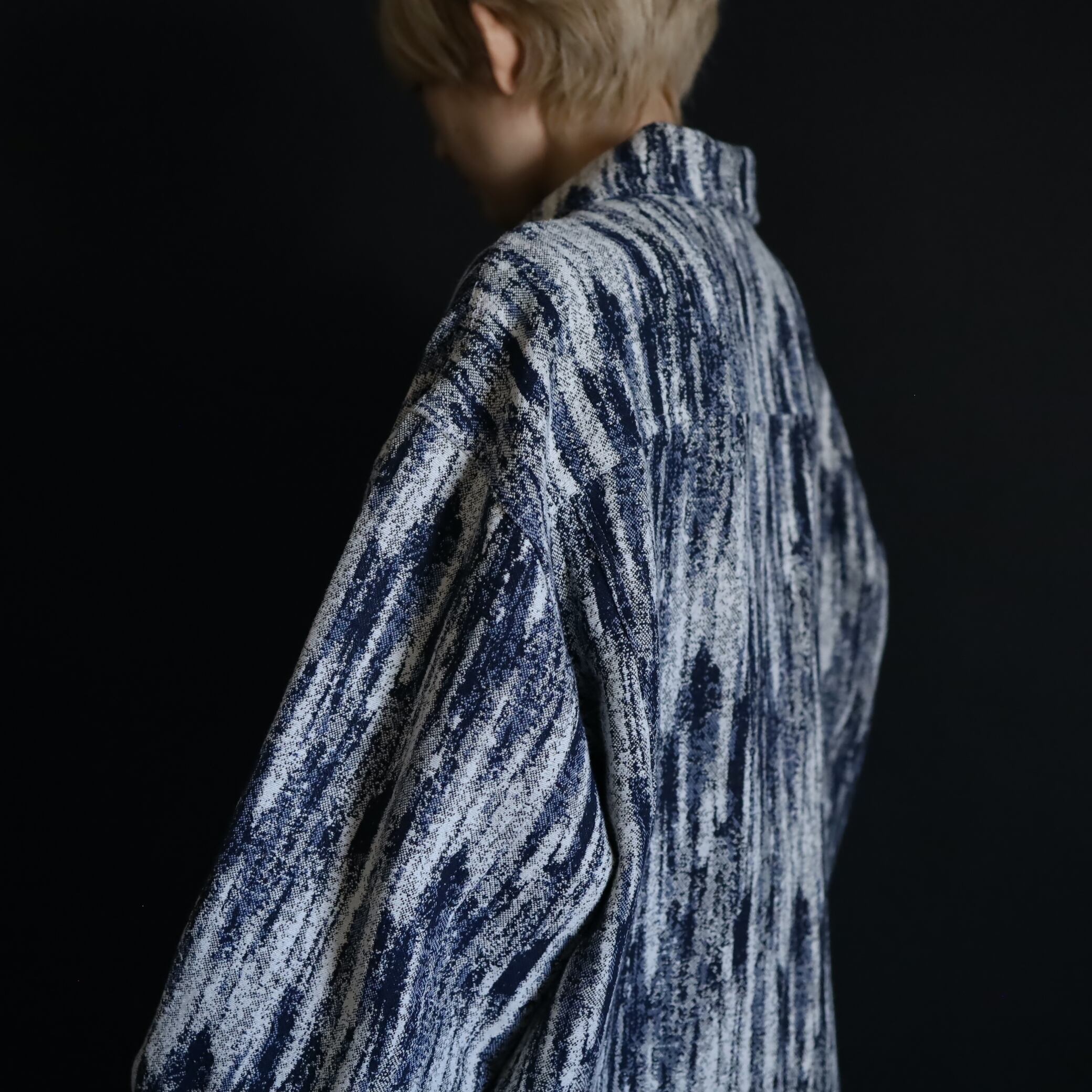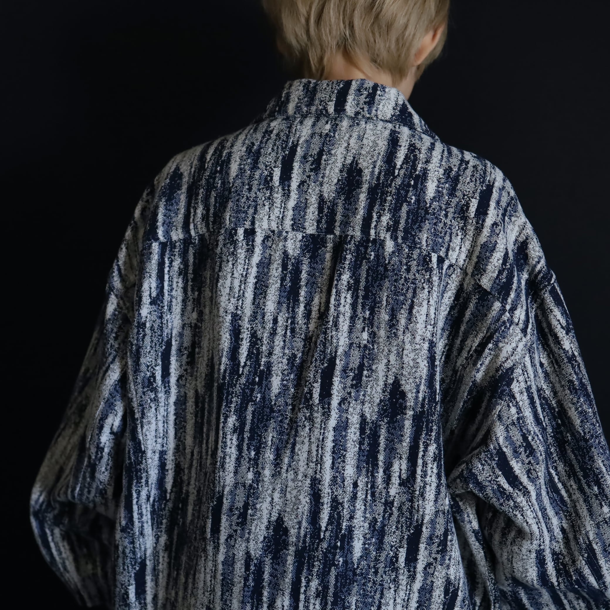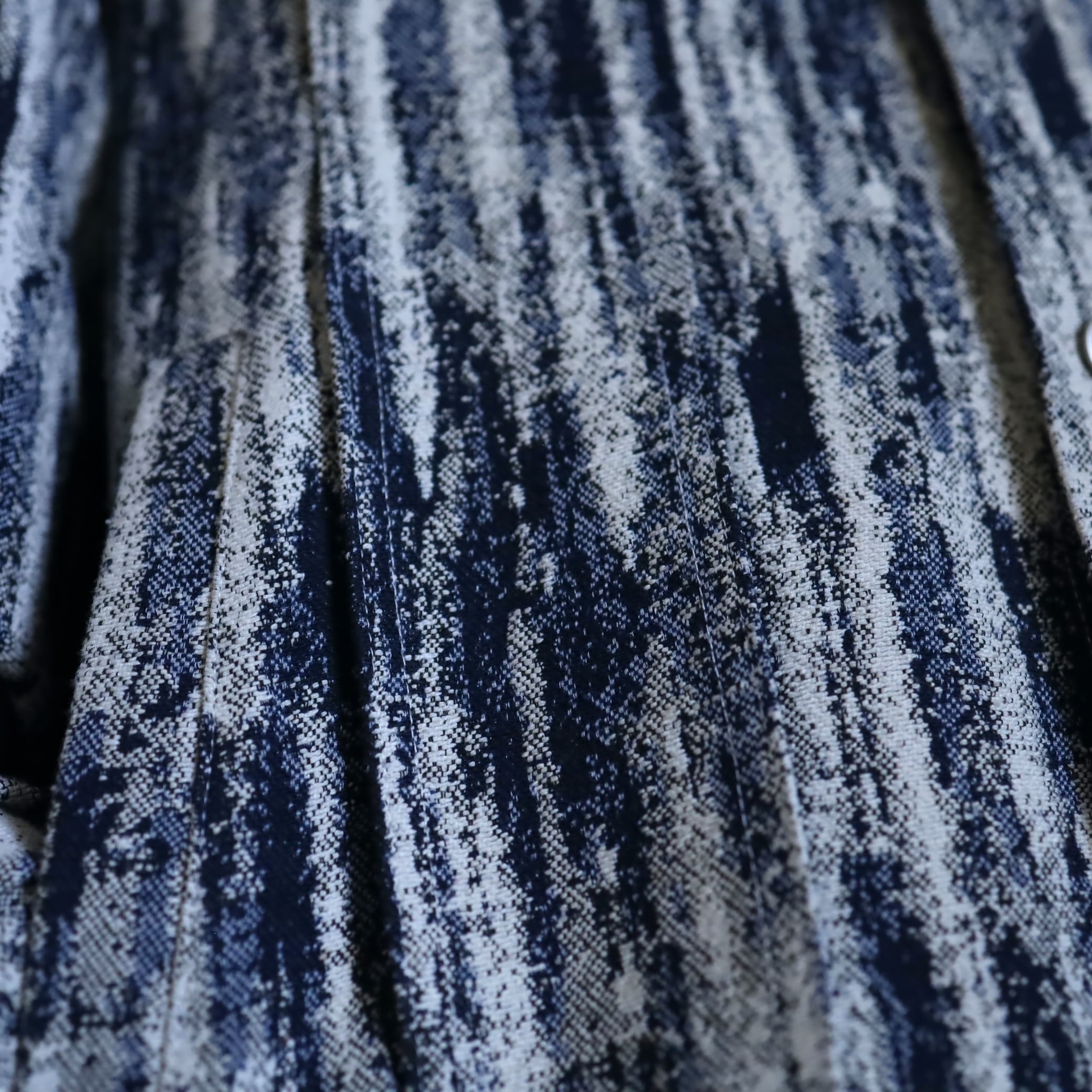 ホワイトとインディゴの2色を用いた,ペイントのような擦れ感のある独特の柄.