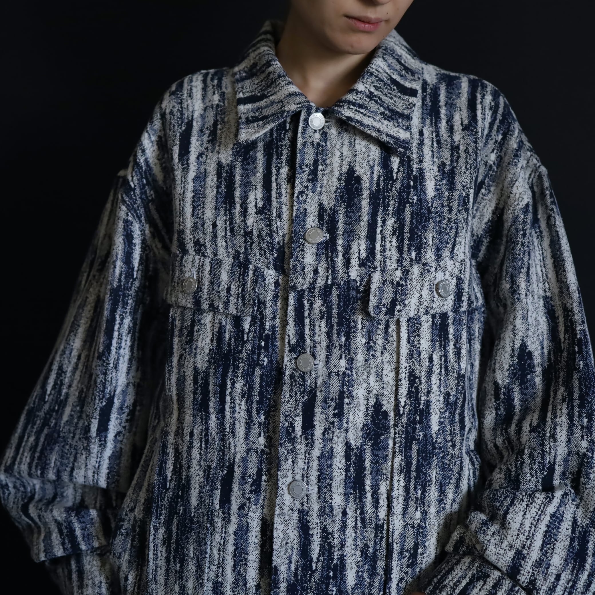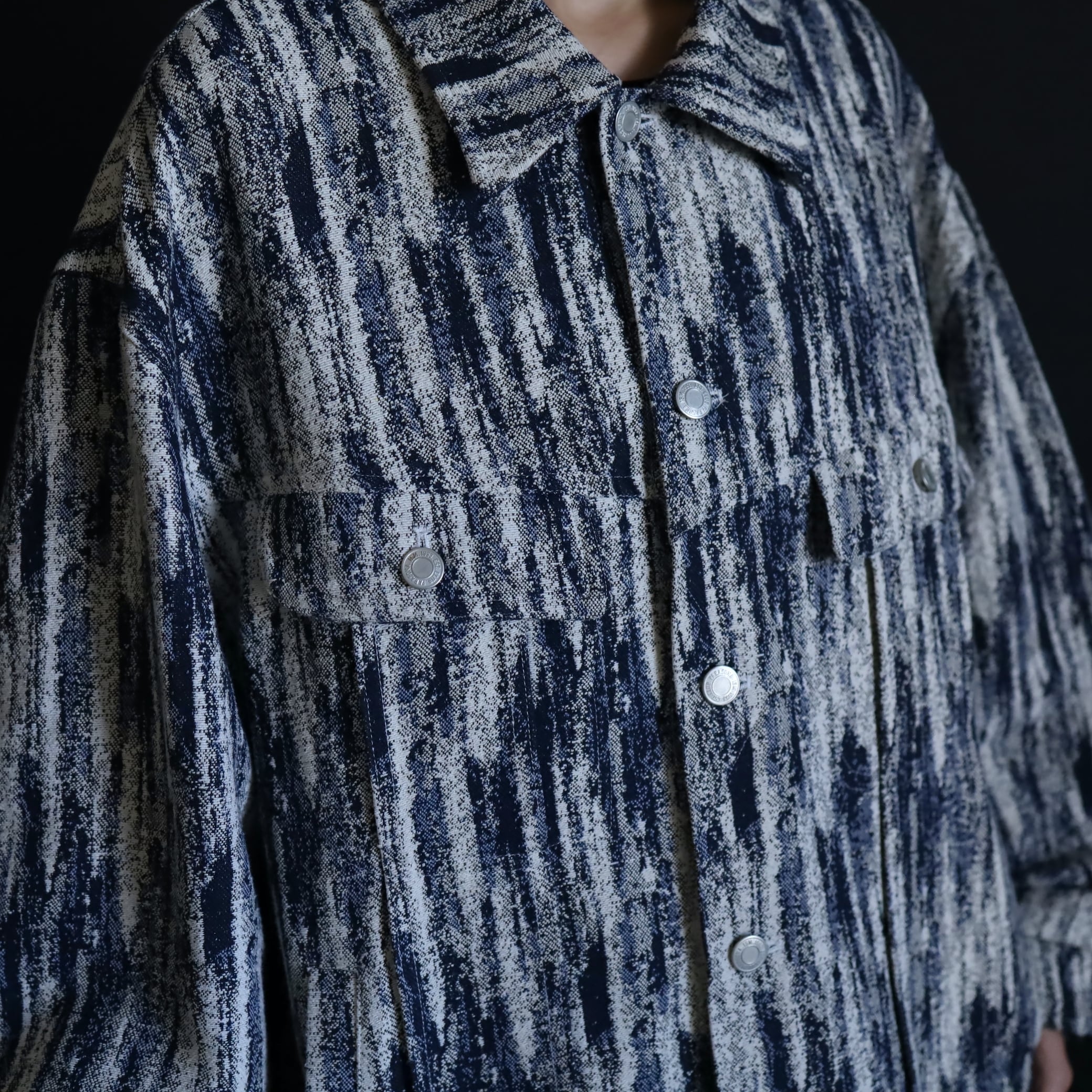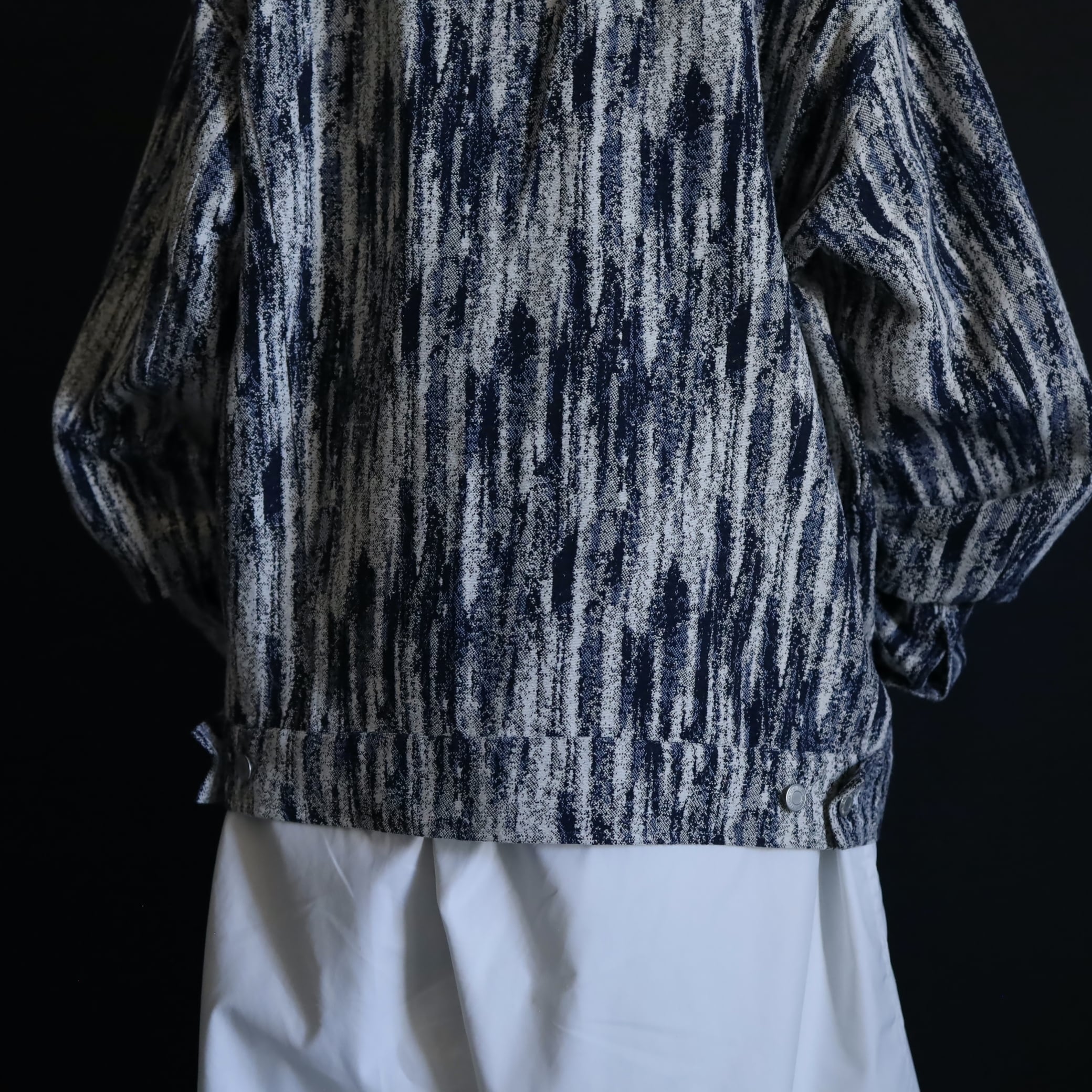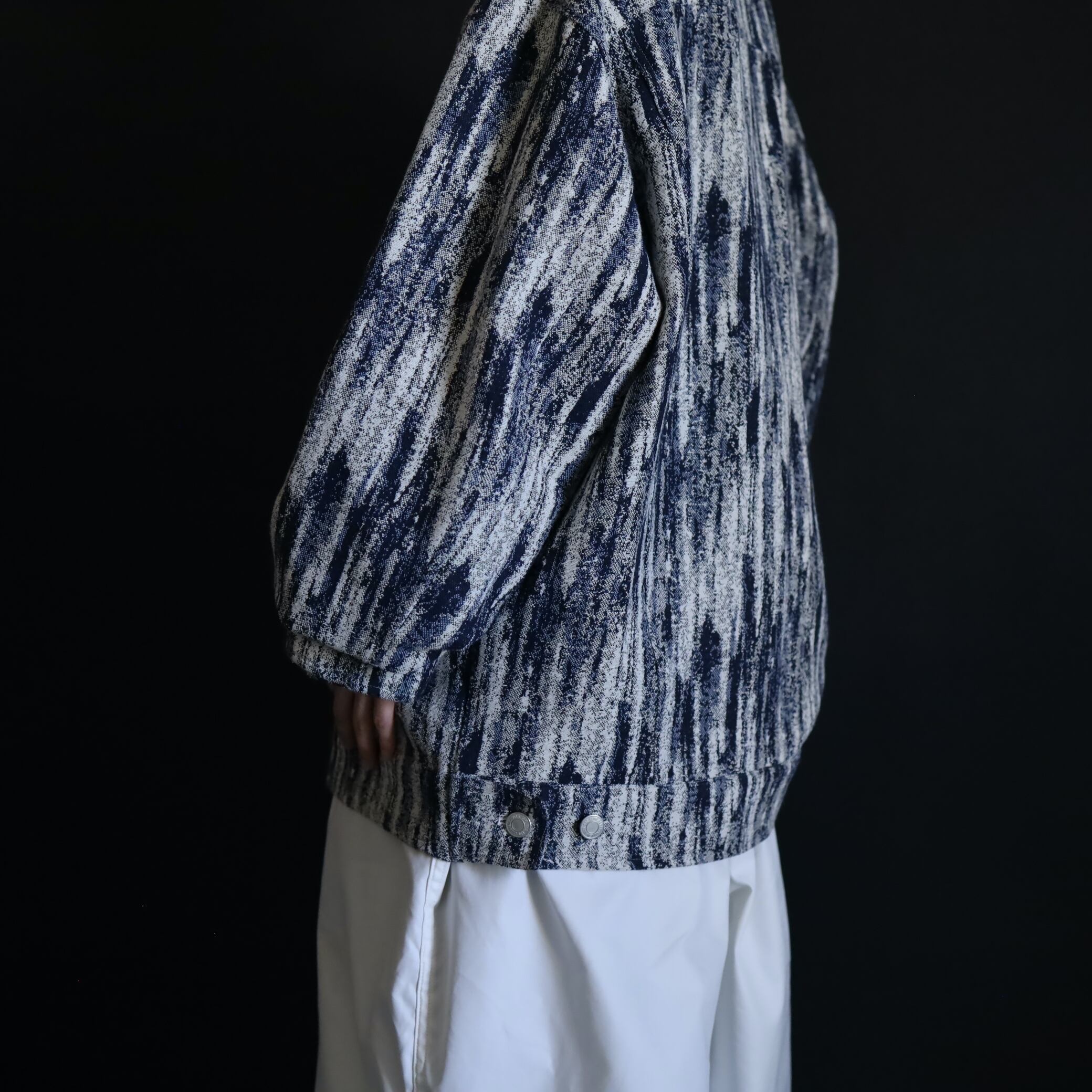ホワイトとインディゴの2色を用いた,ペイントのような擦れ感のある独特の柄.