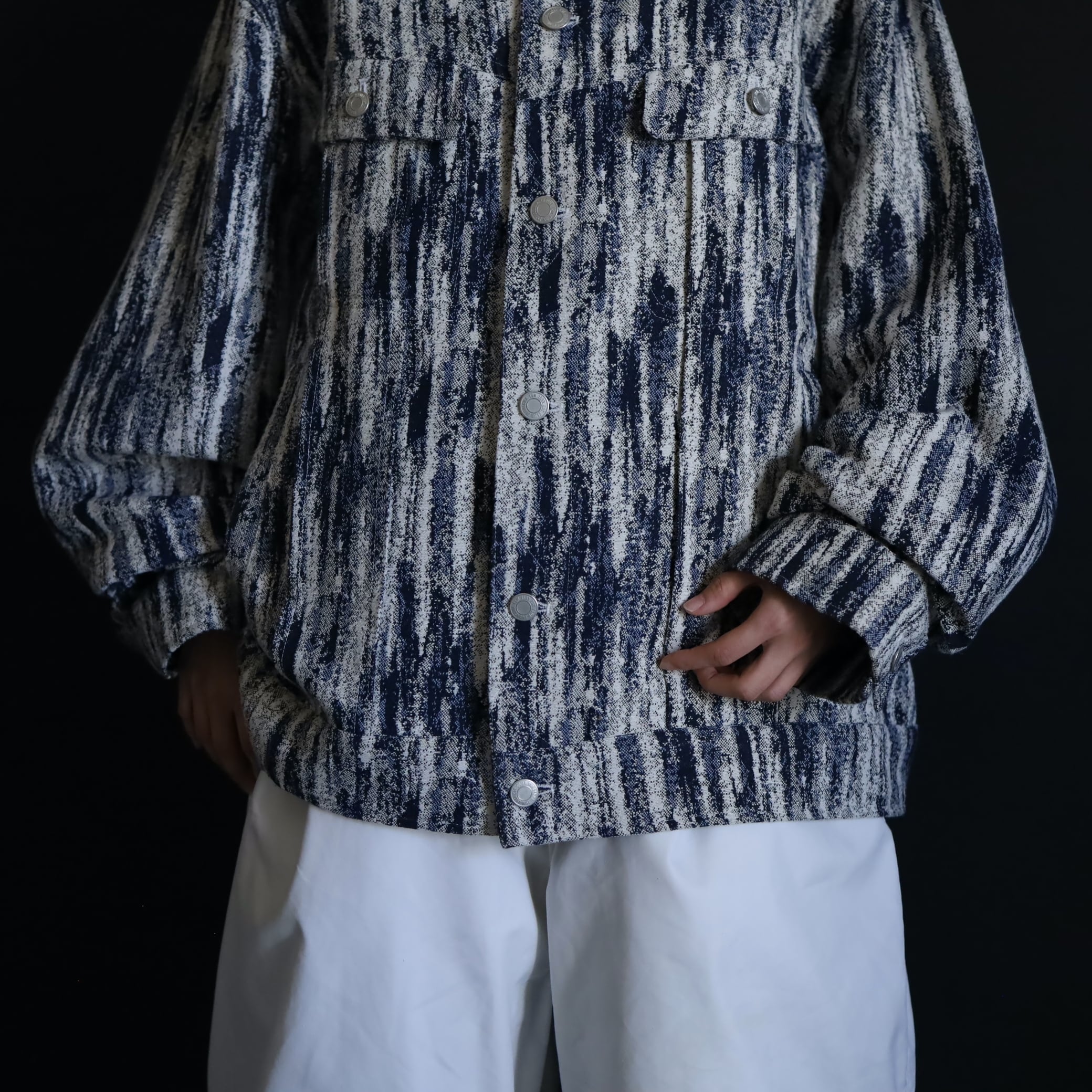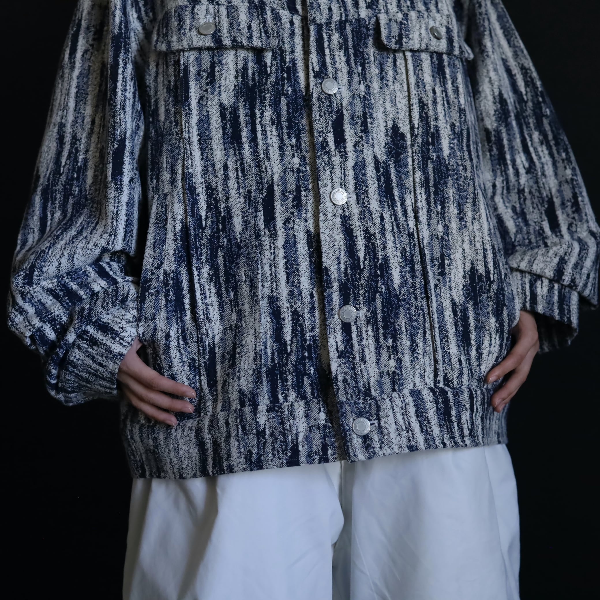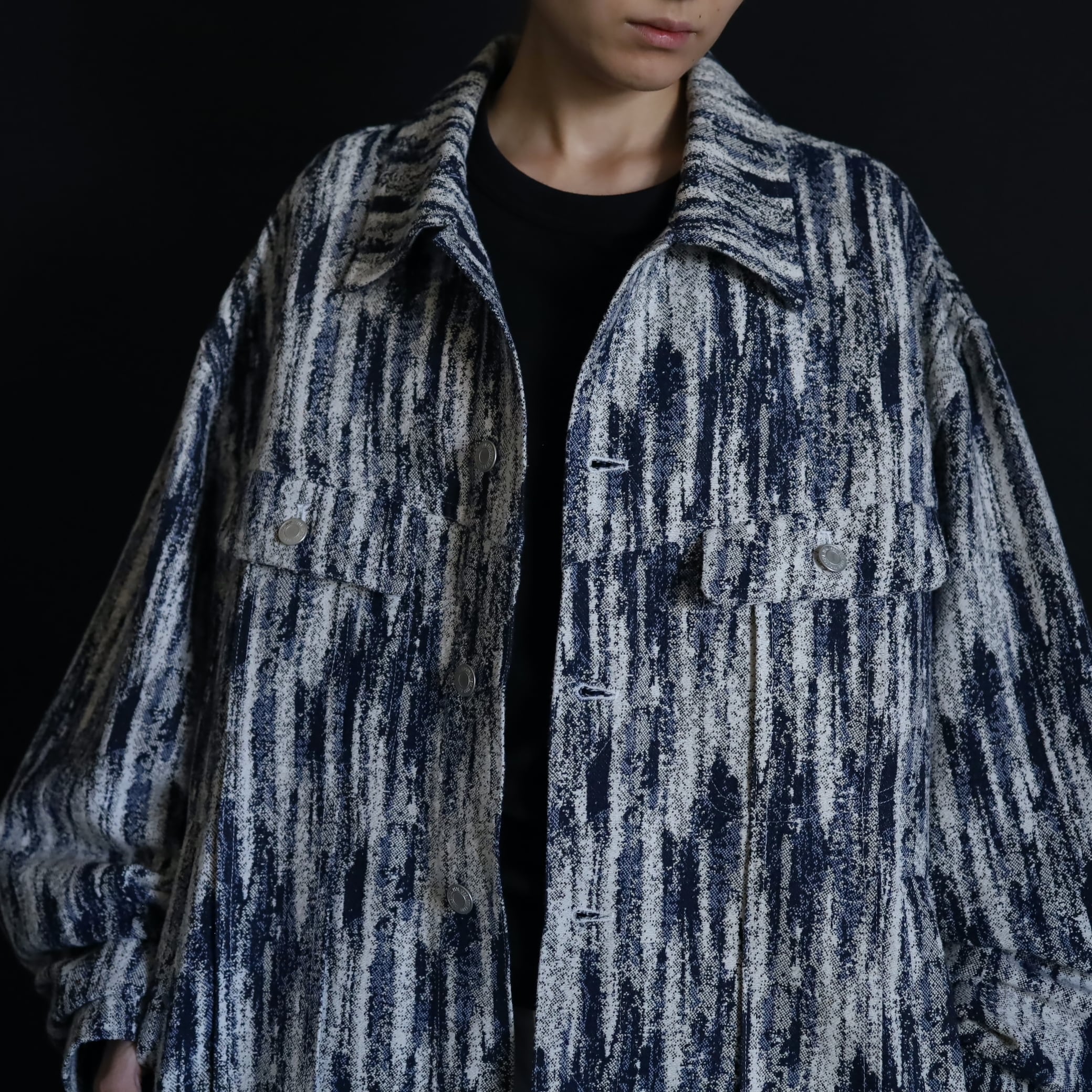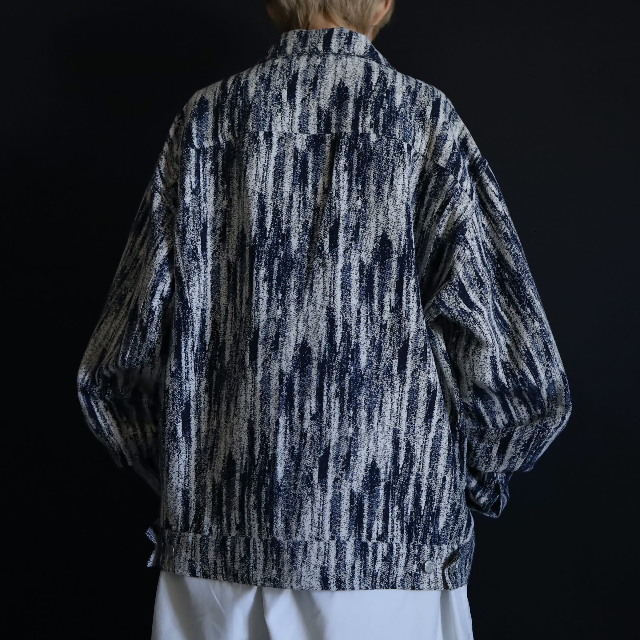 ホワイトとインディゴの2色を用いた,ペイントのような擦れ感のある独特の柄.