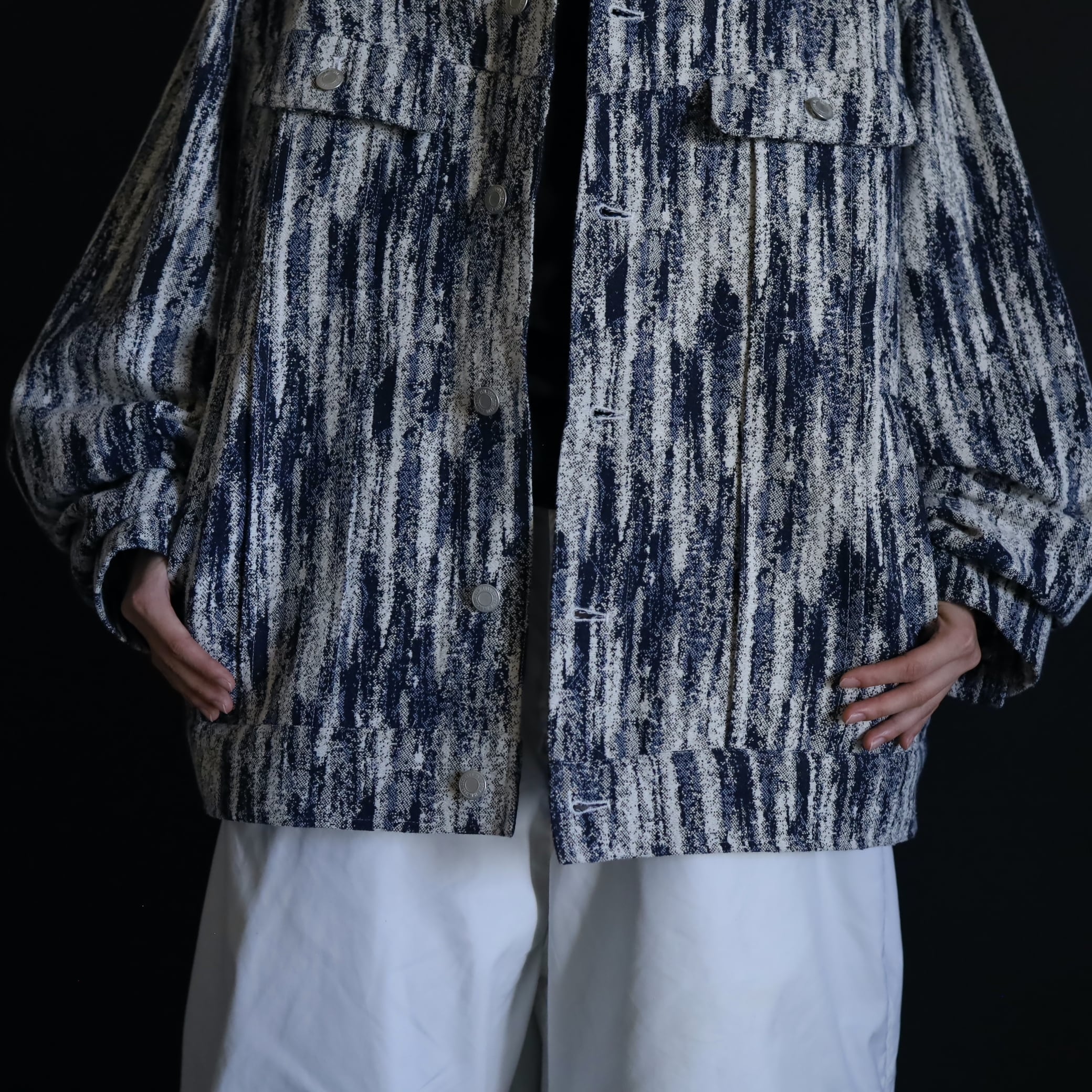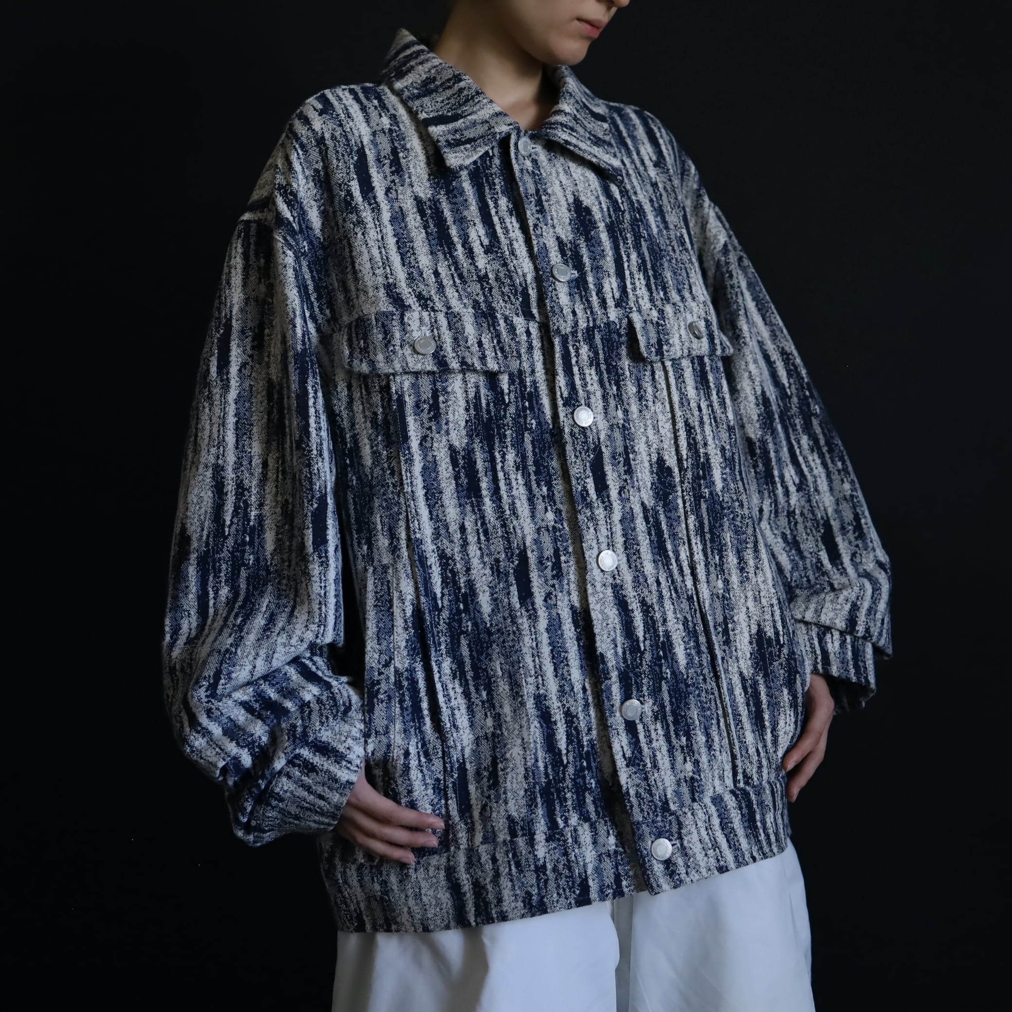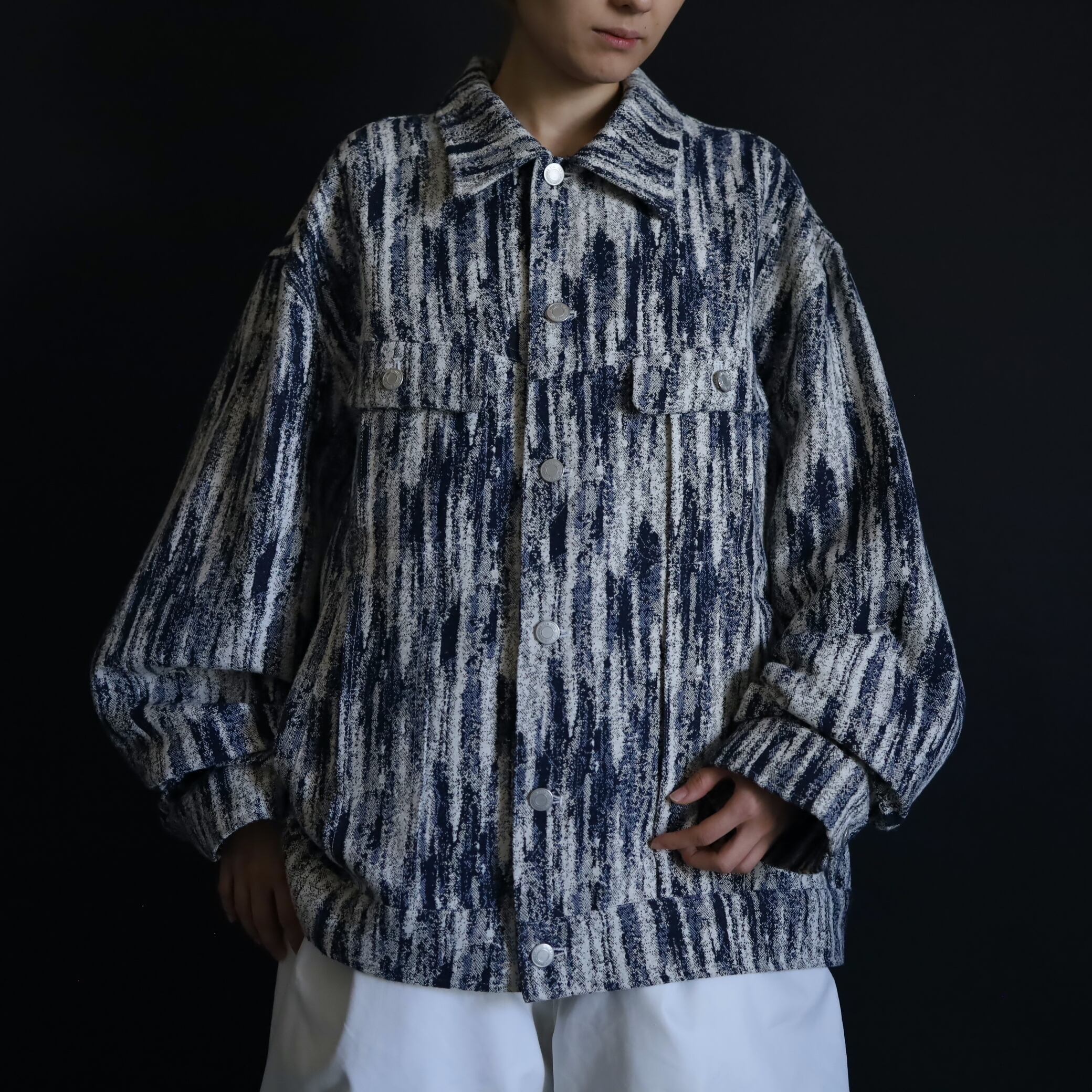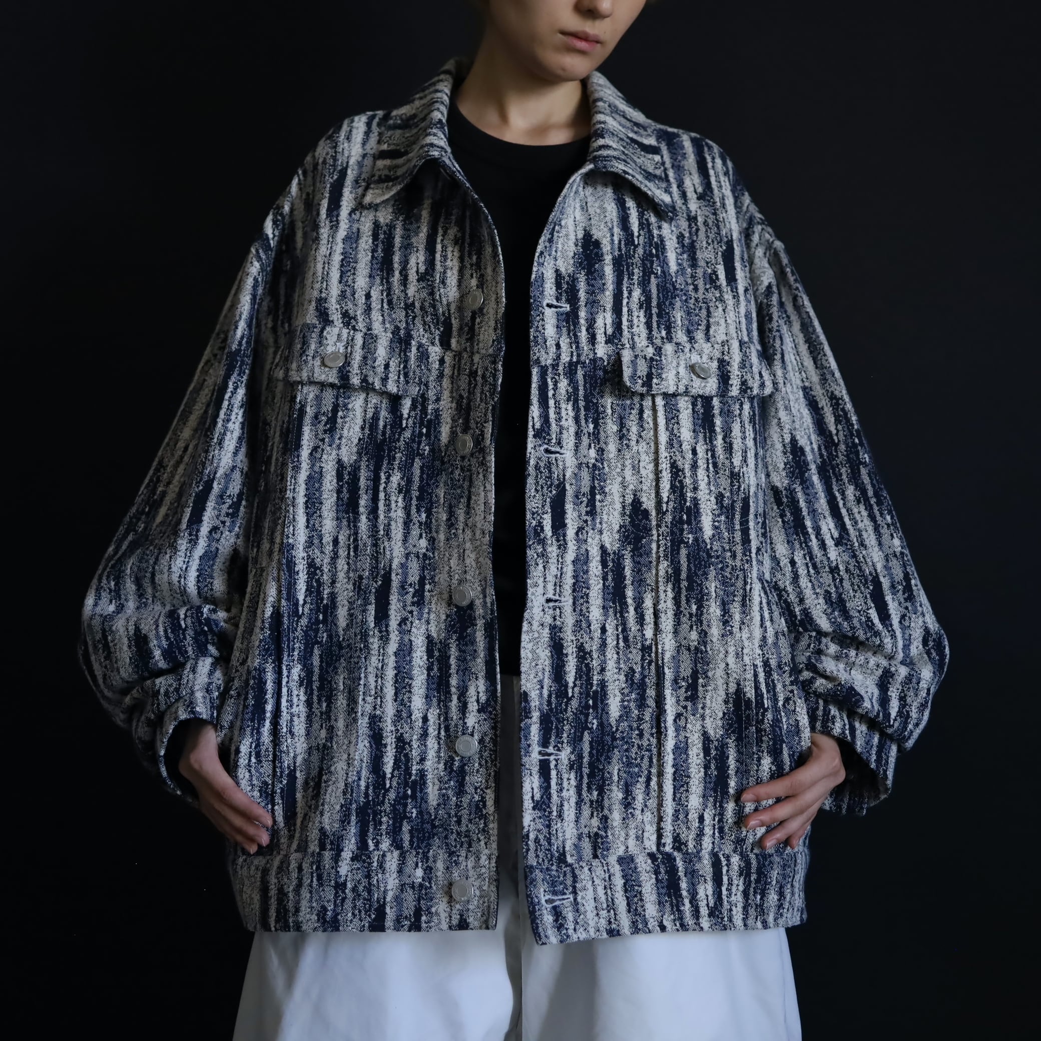 ホワイトとインディゴの2色を用いた,ペイントのような擦れ感のある独特の柄.