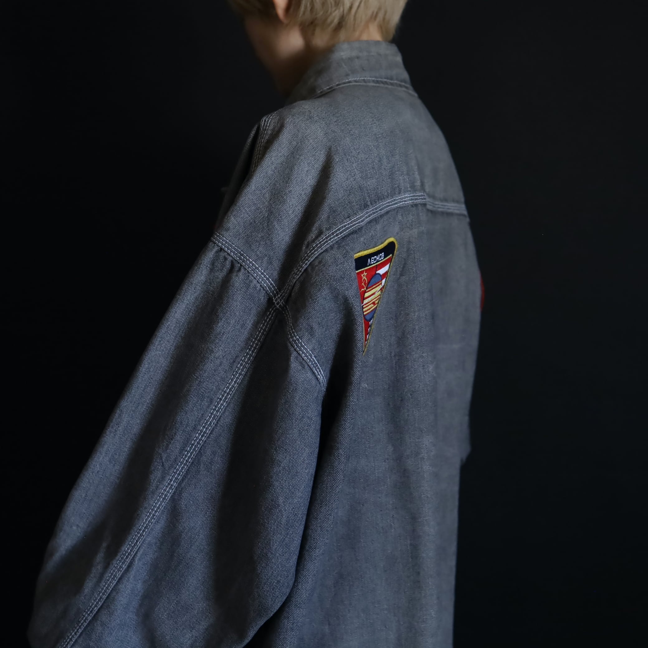 ワッペンがある分差し色も効いており,コーデの主役としても存在感抜群.