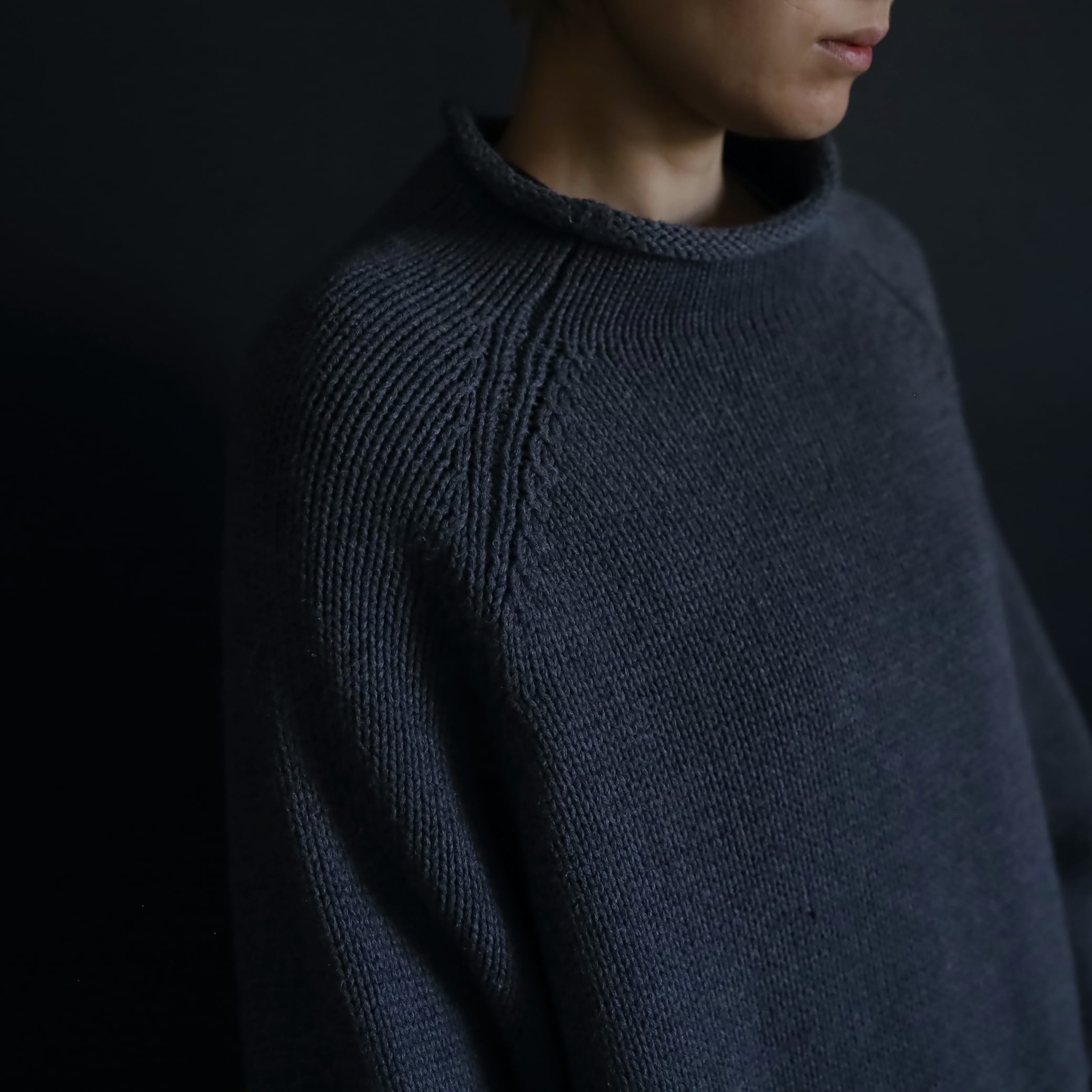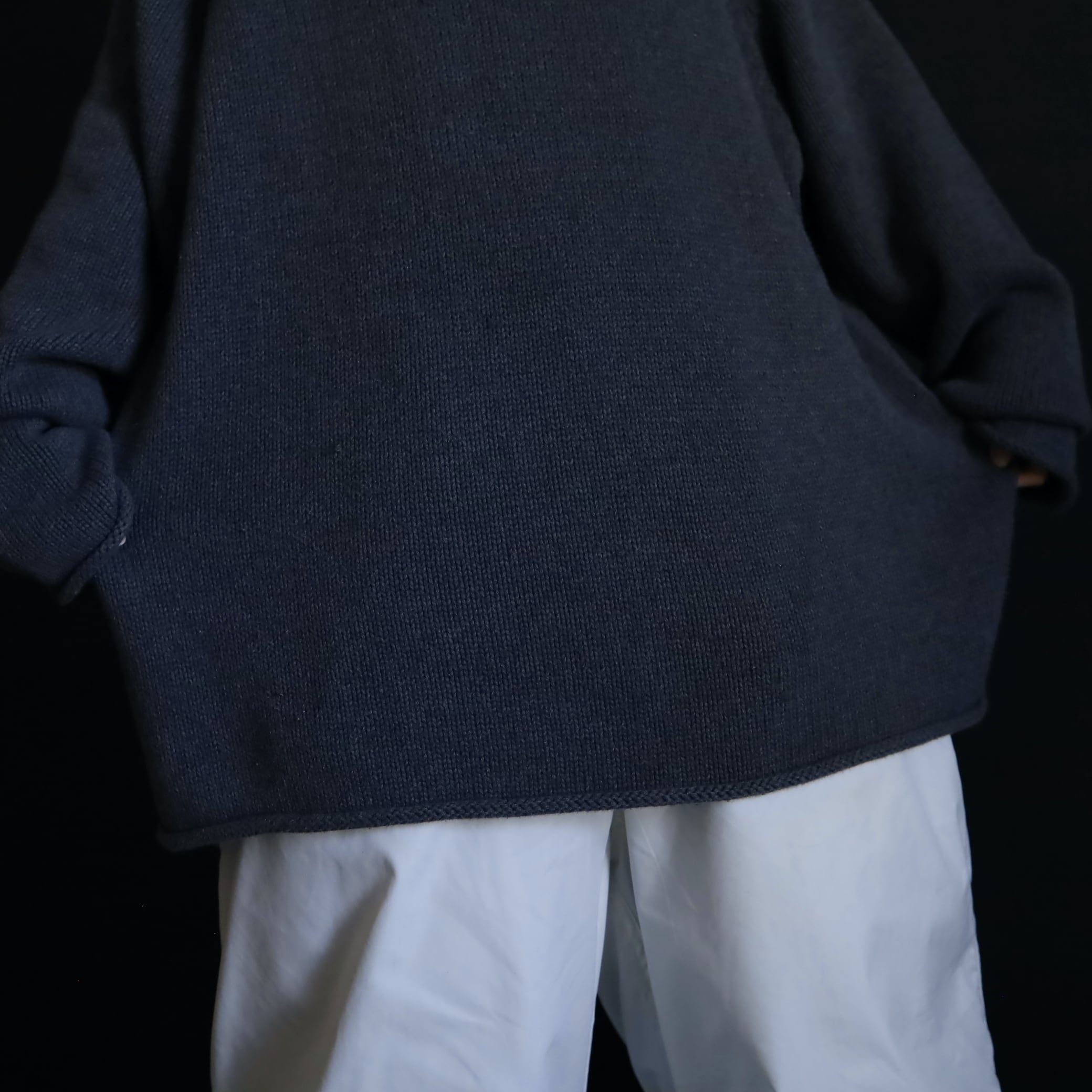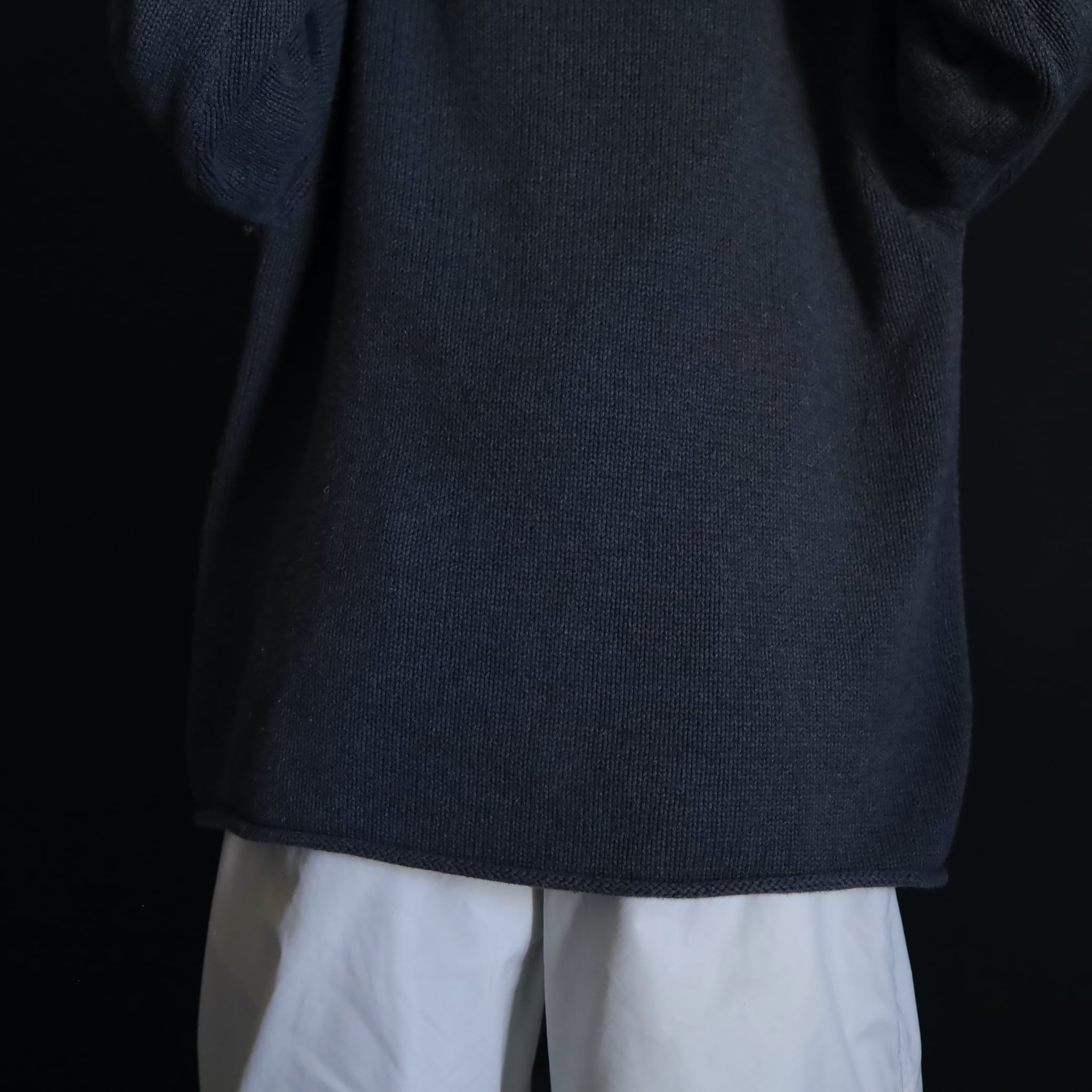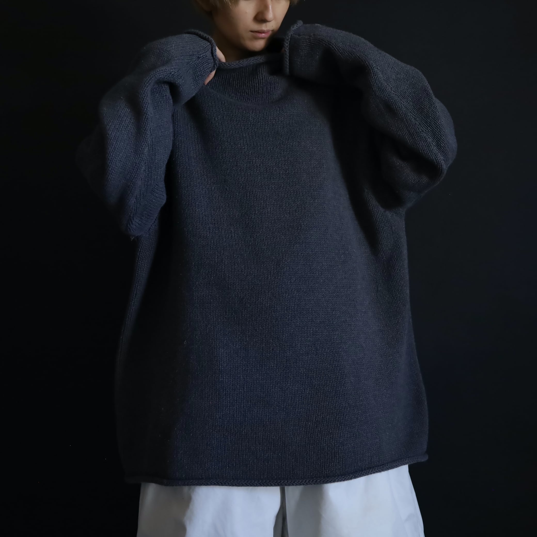 ロールネックデザインに加えて,袖先や裾も同様のロールデザイン.