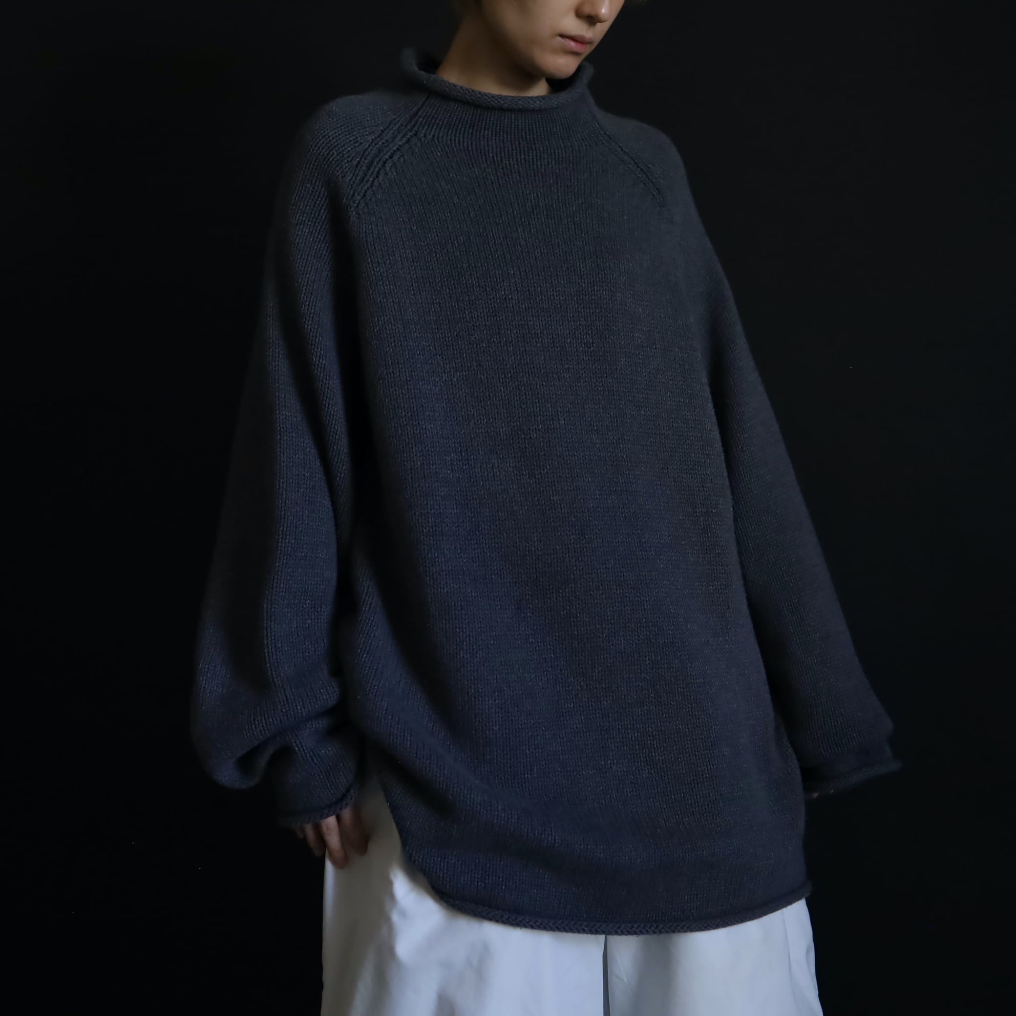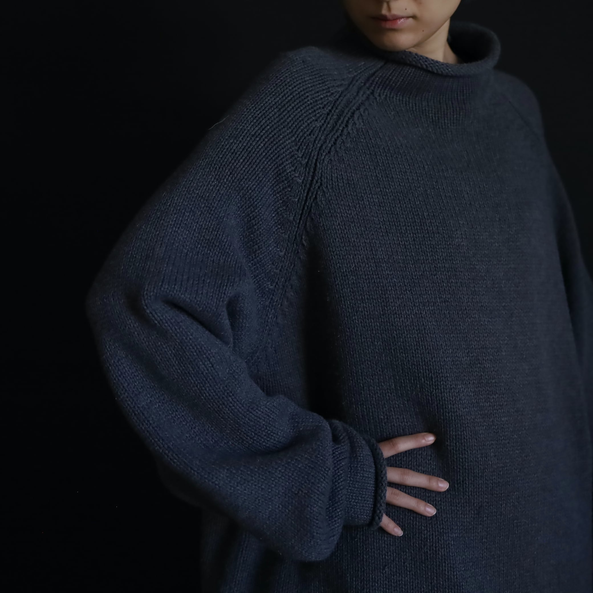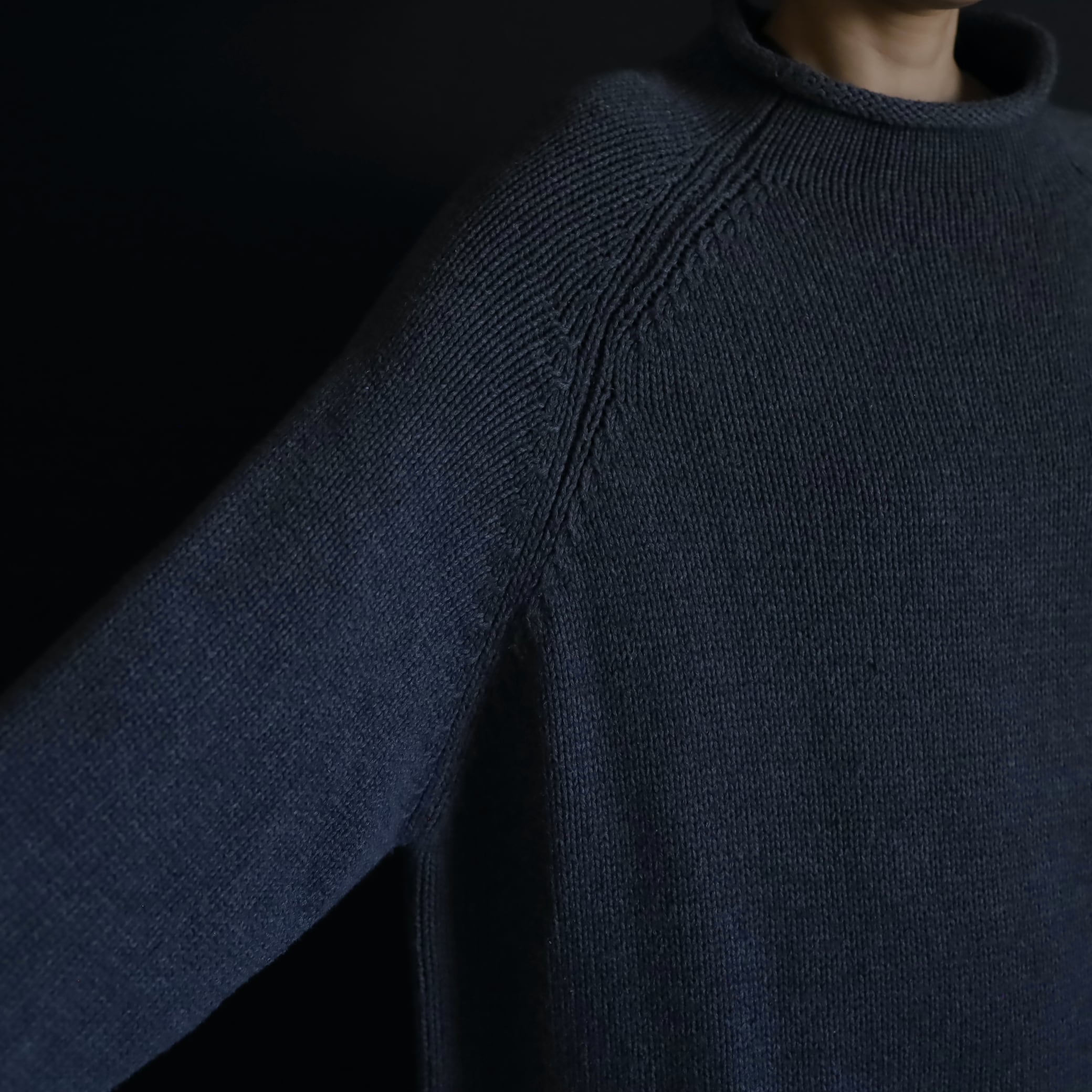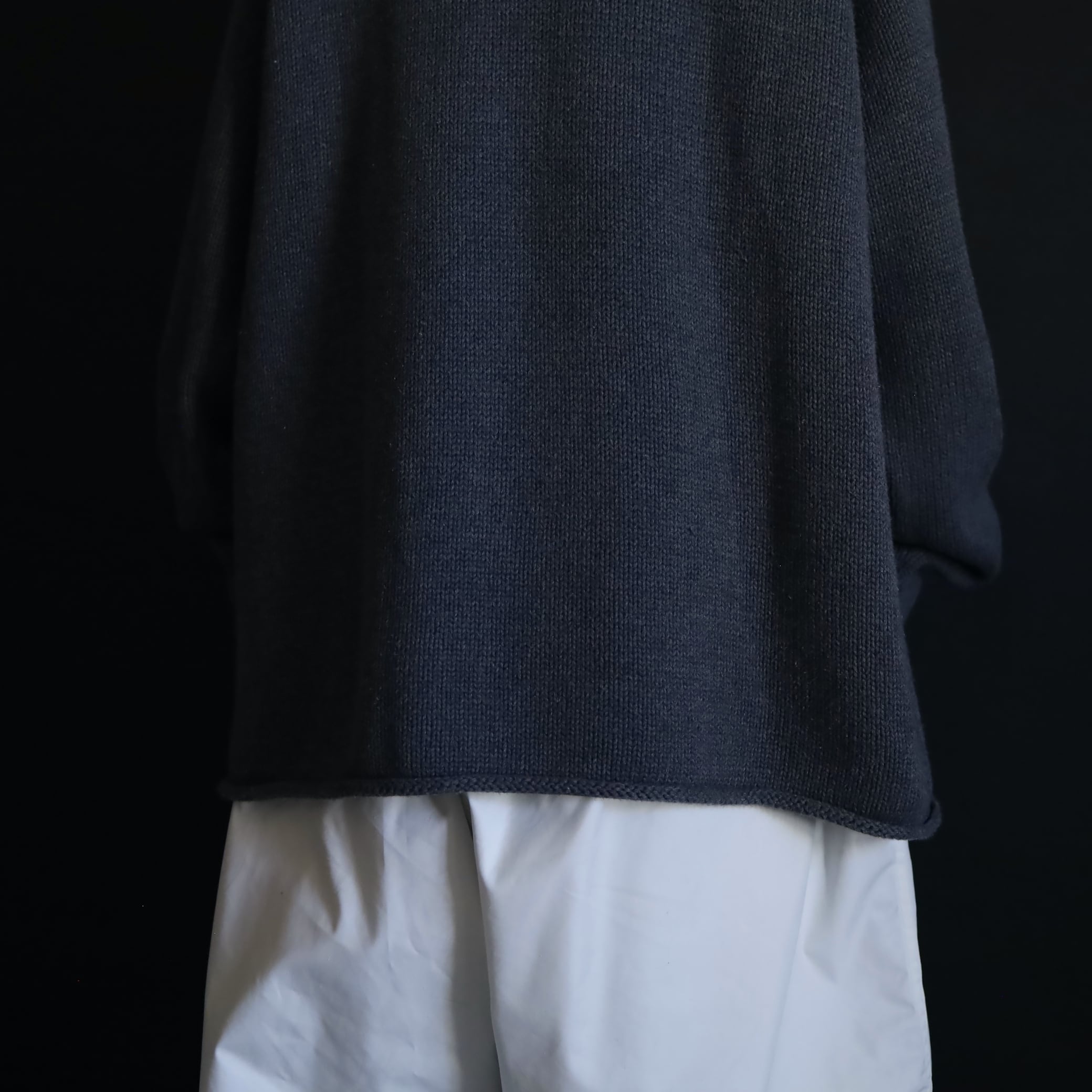 ロールネックデザインに加えて,袖先や裾も同様のロールデザイン.