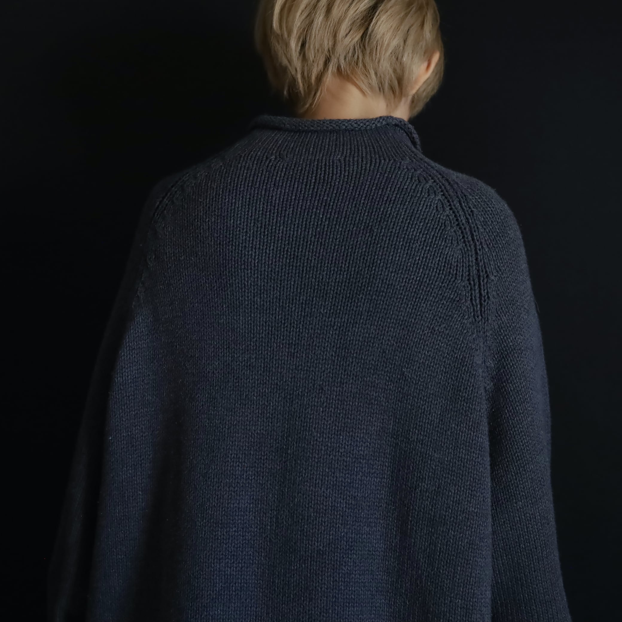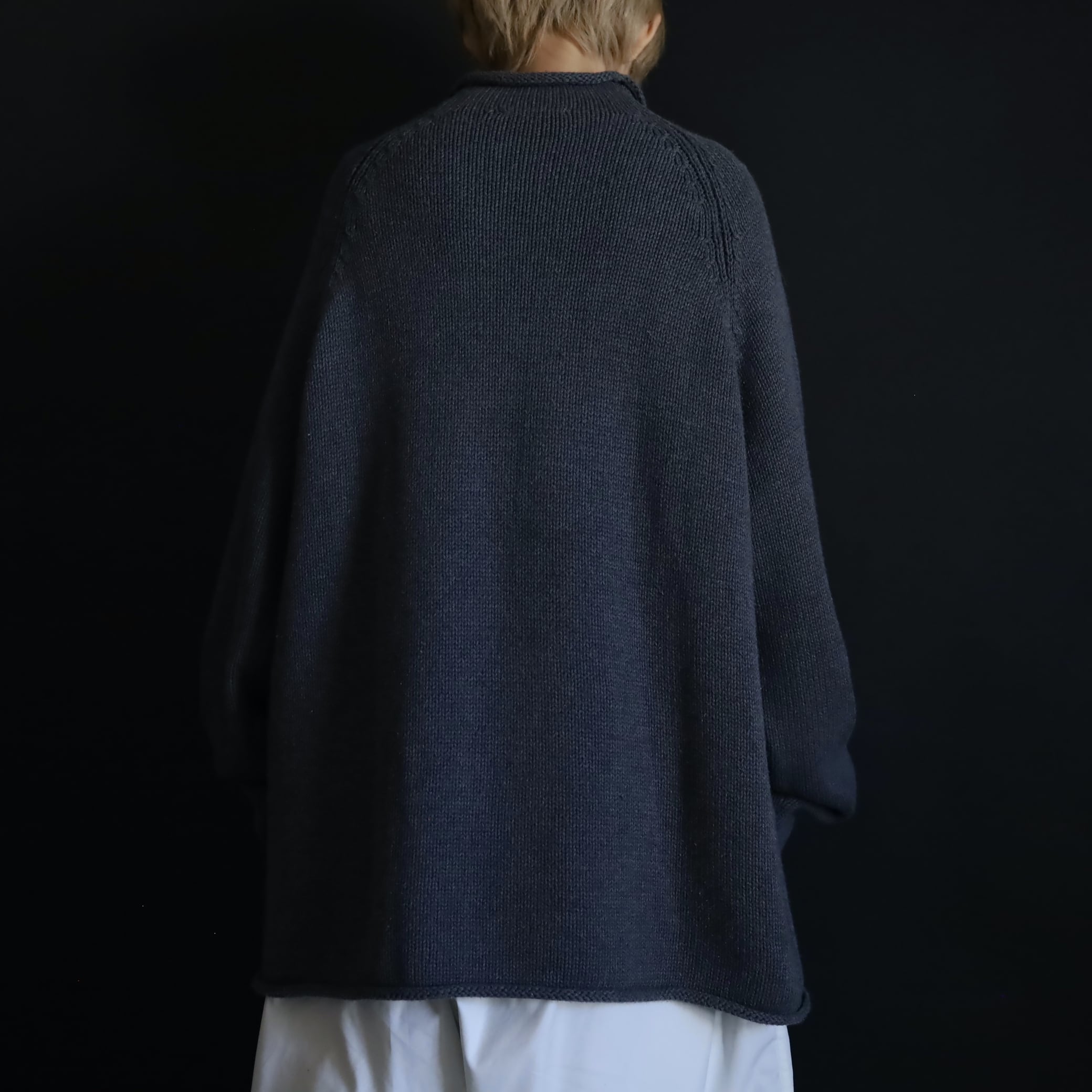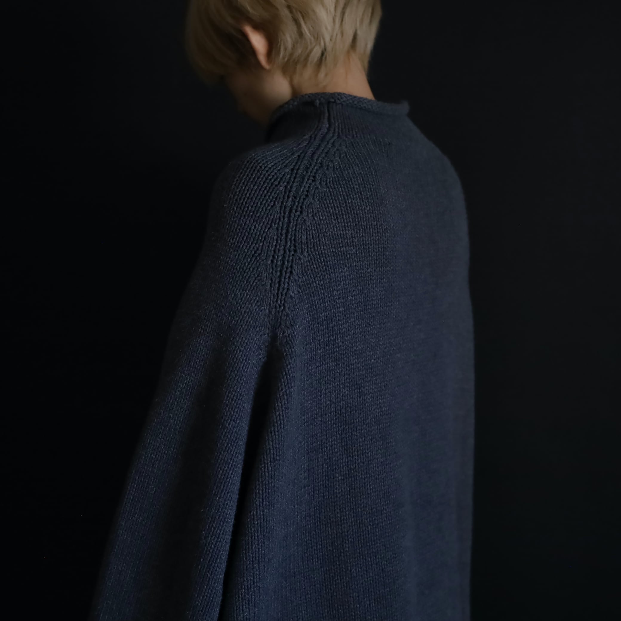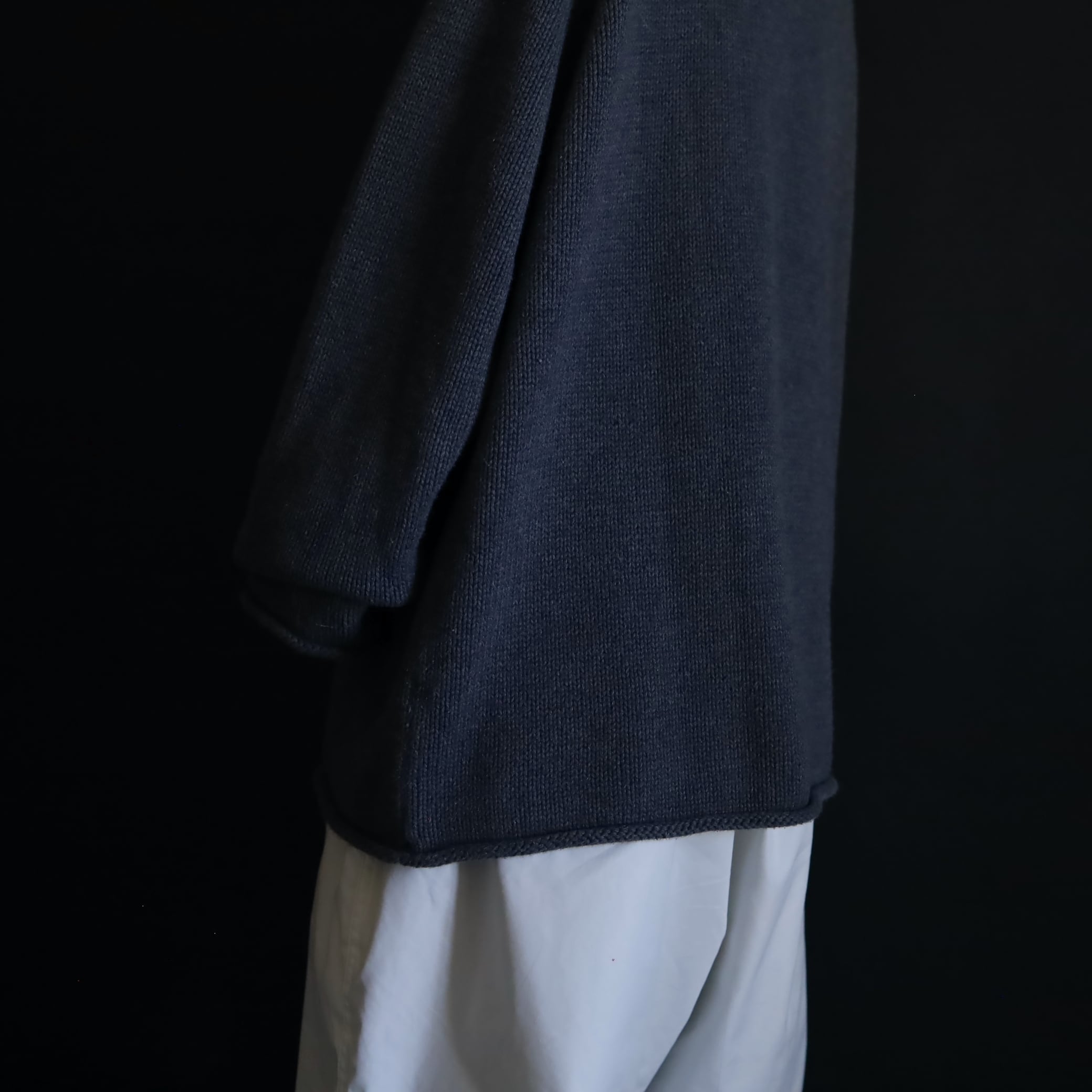 ロールネックデザインに加えて,袖先や裾も同様のロールデザイン.