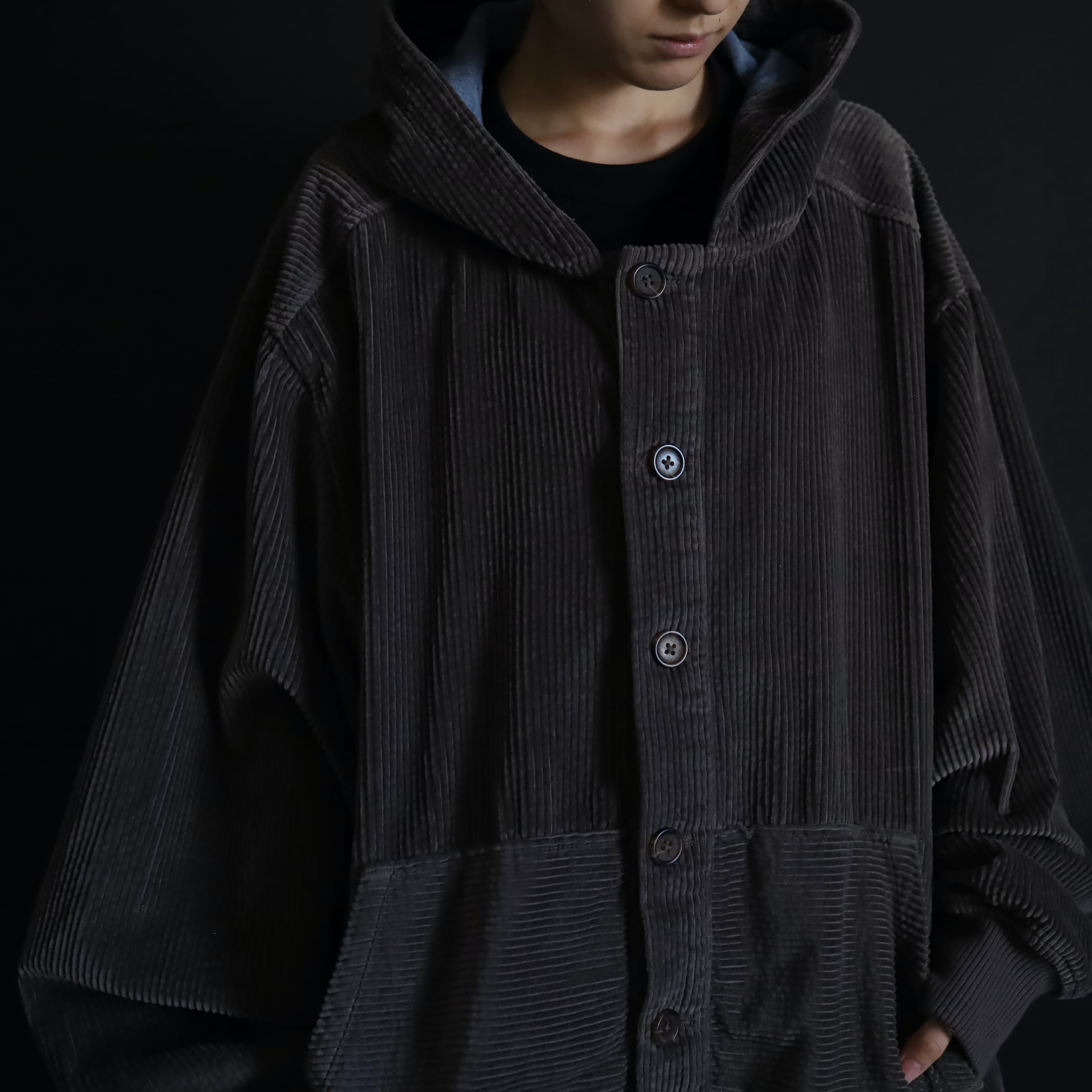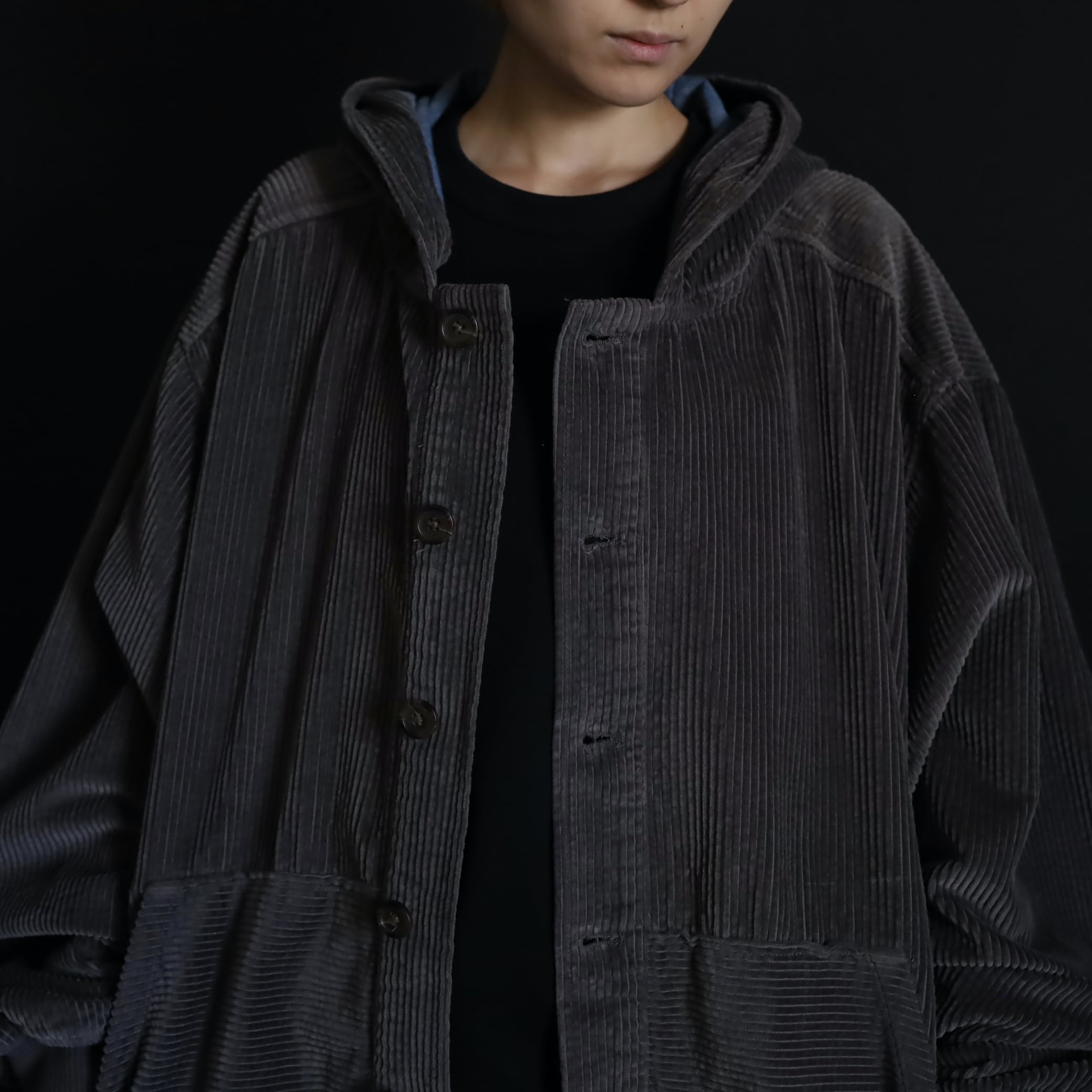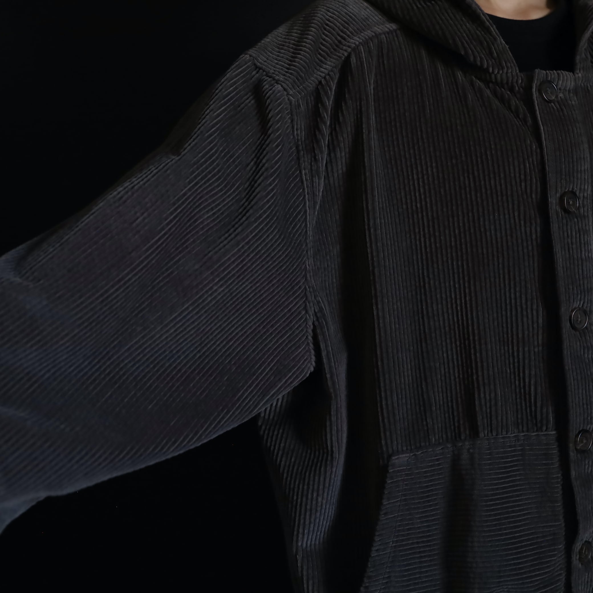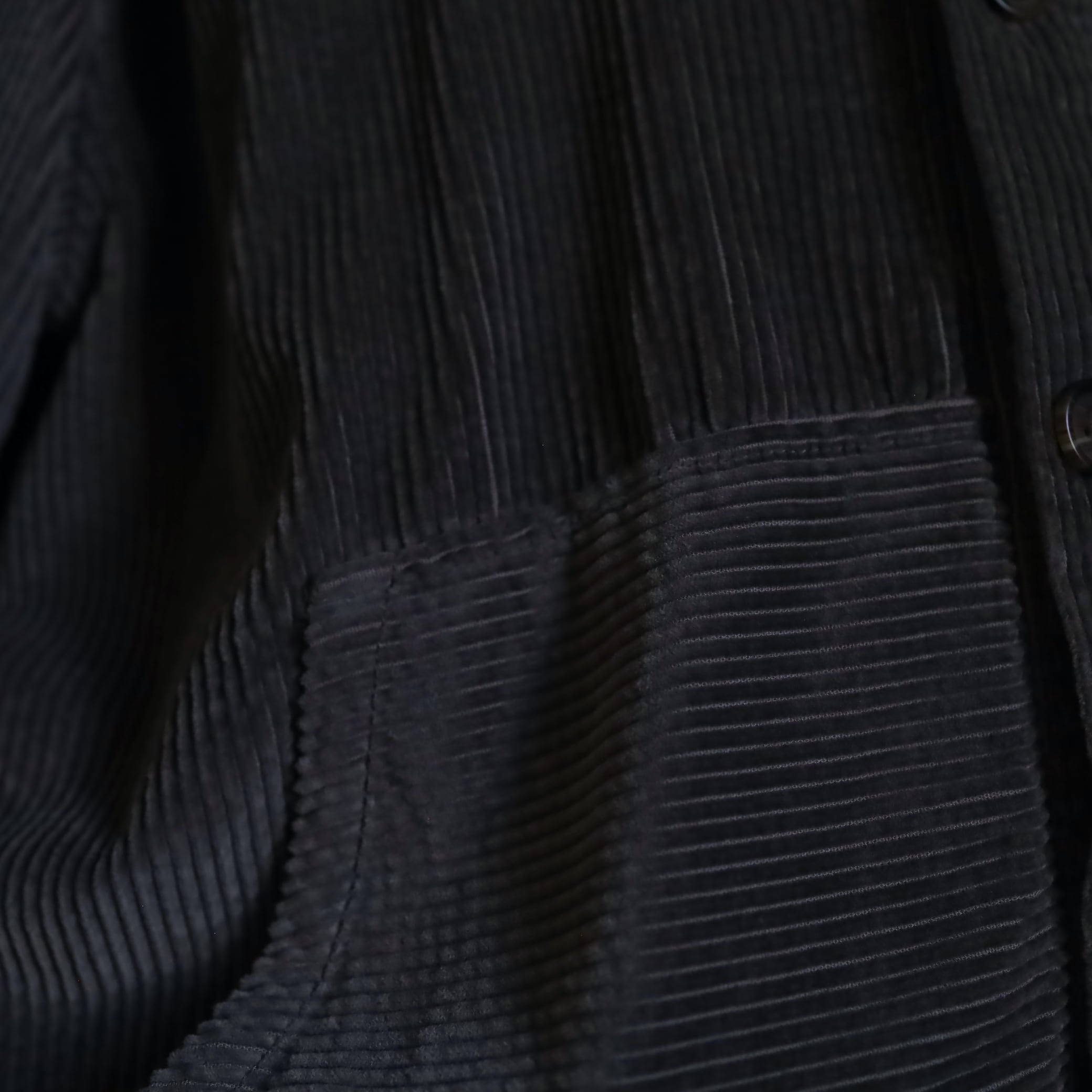 前立てがジップではなくボタン開閉という点と,コーデュロイの方向がボディとポケットで切替わる,ユーモア性を兼ね備えた1着.