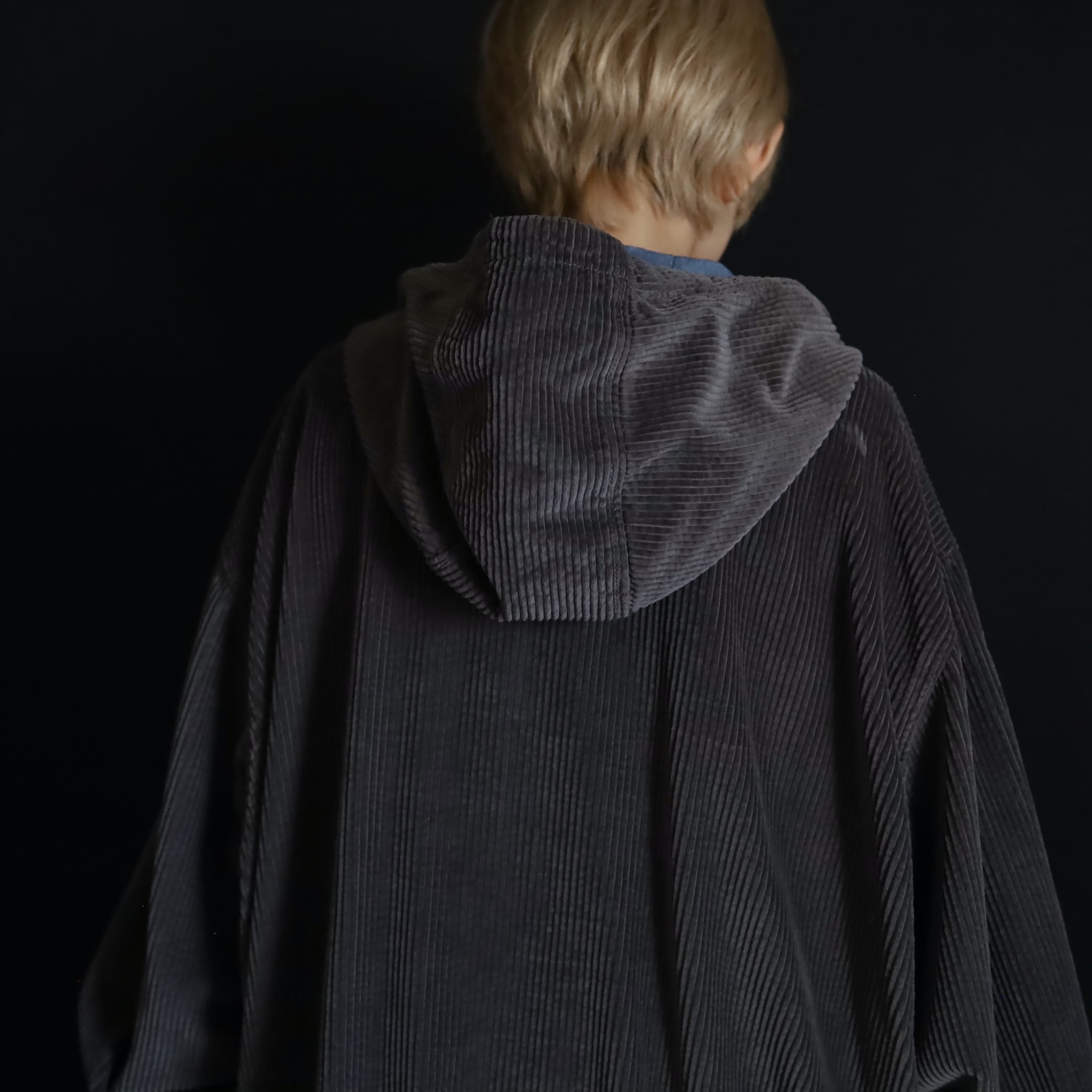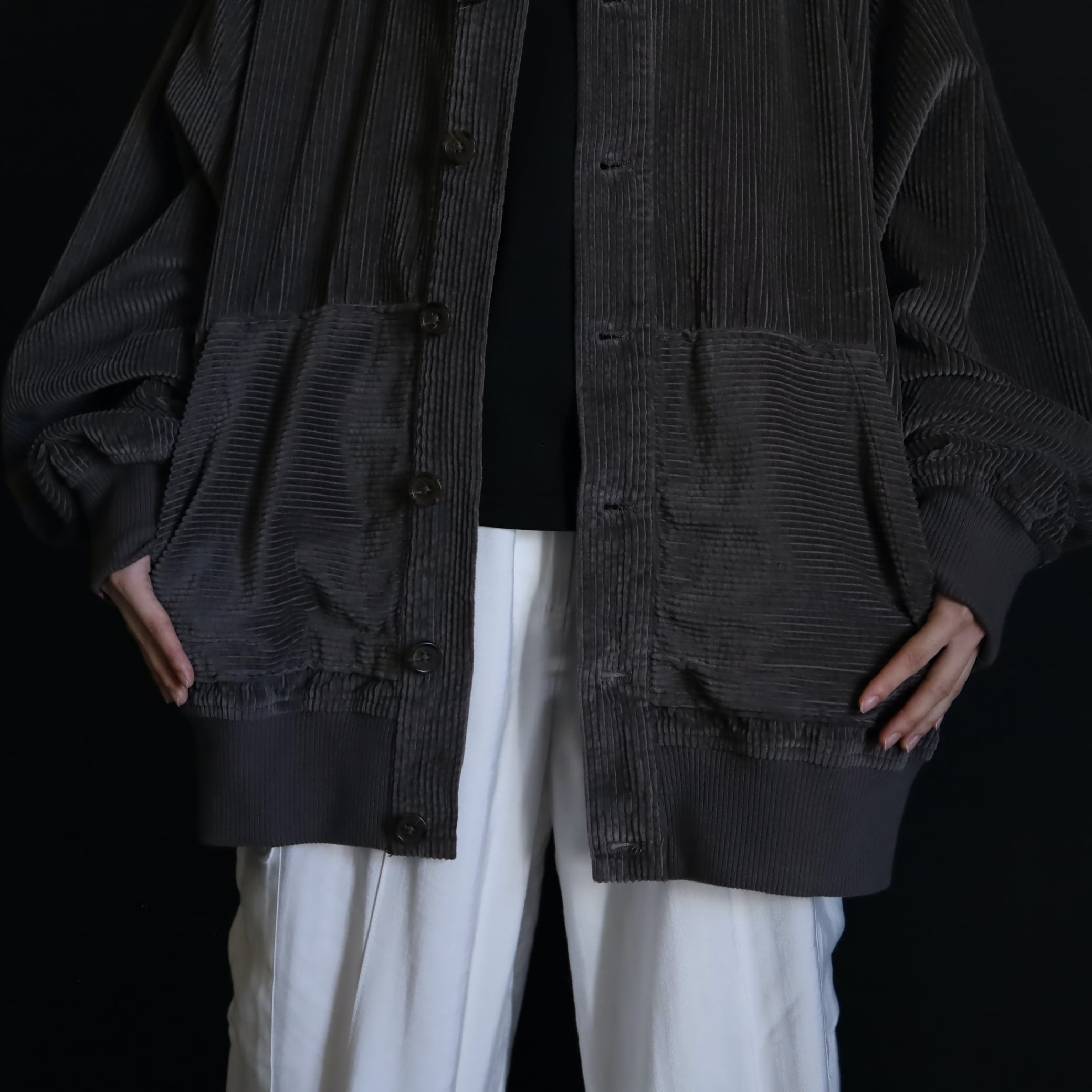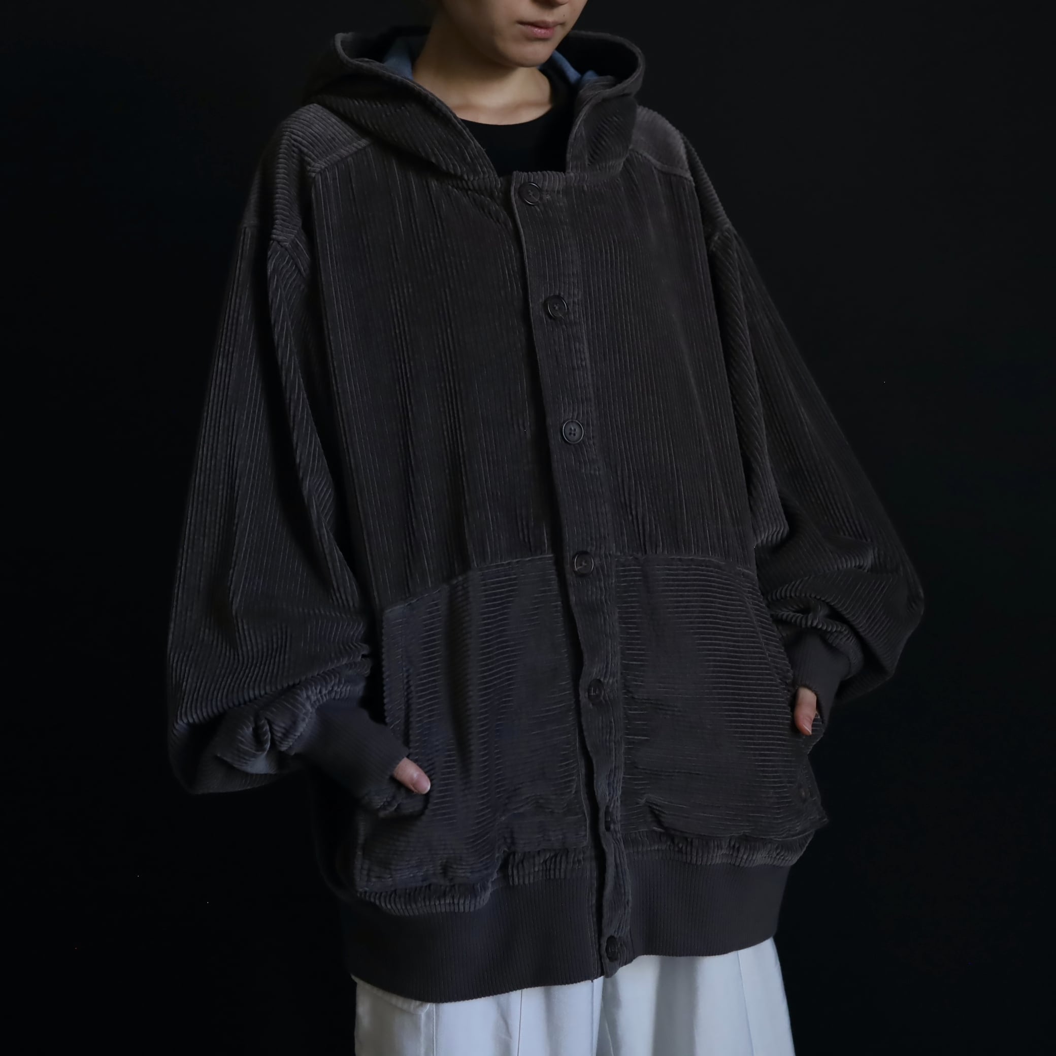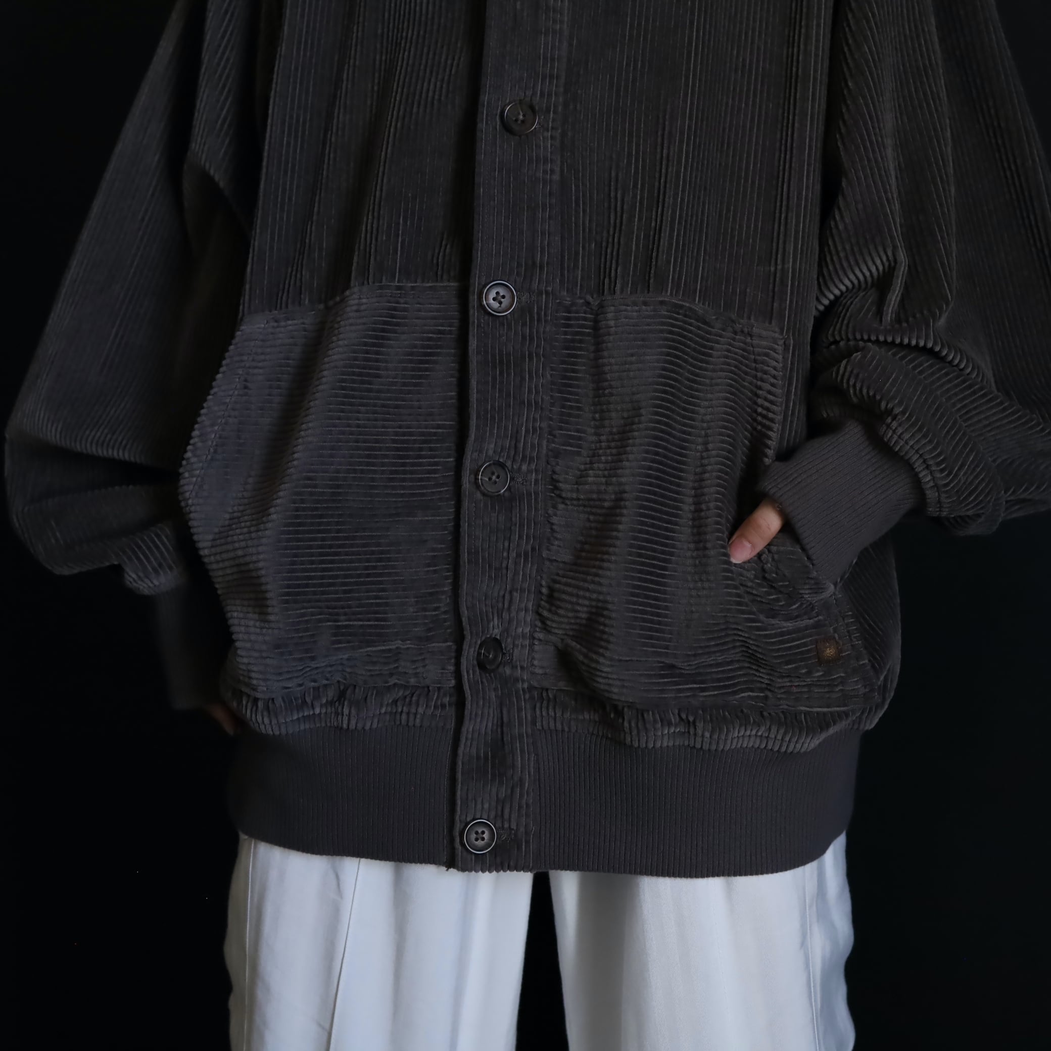 前立てがジップではなくボタン開閉という点と,コーデュロイの方向がボディとポケットで切替わる,ユーモア性を兼ね備えた1着.