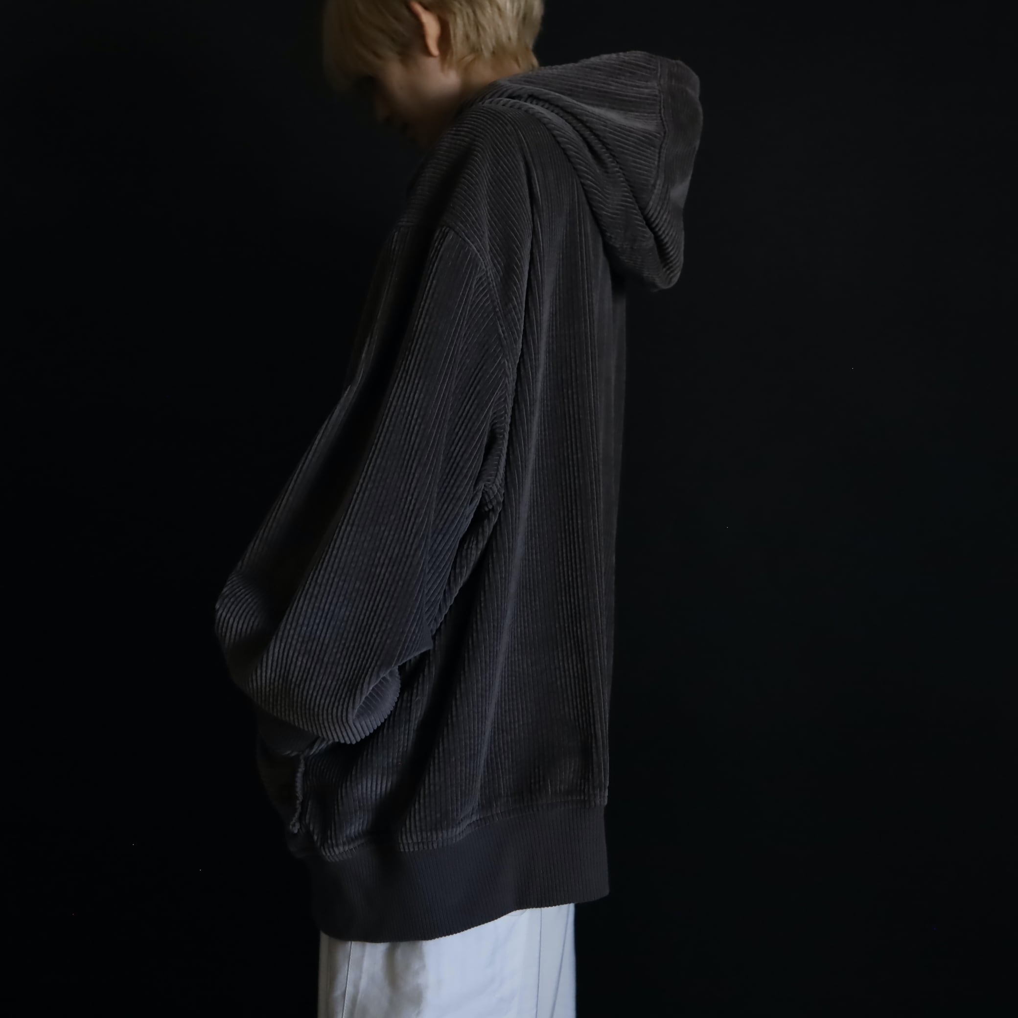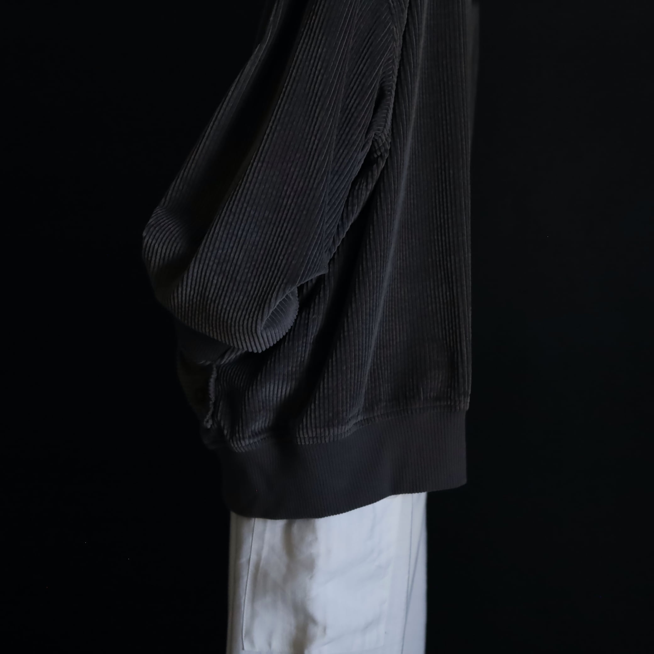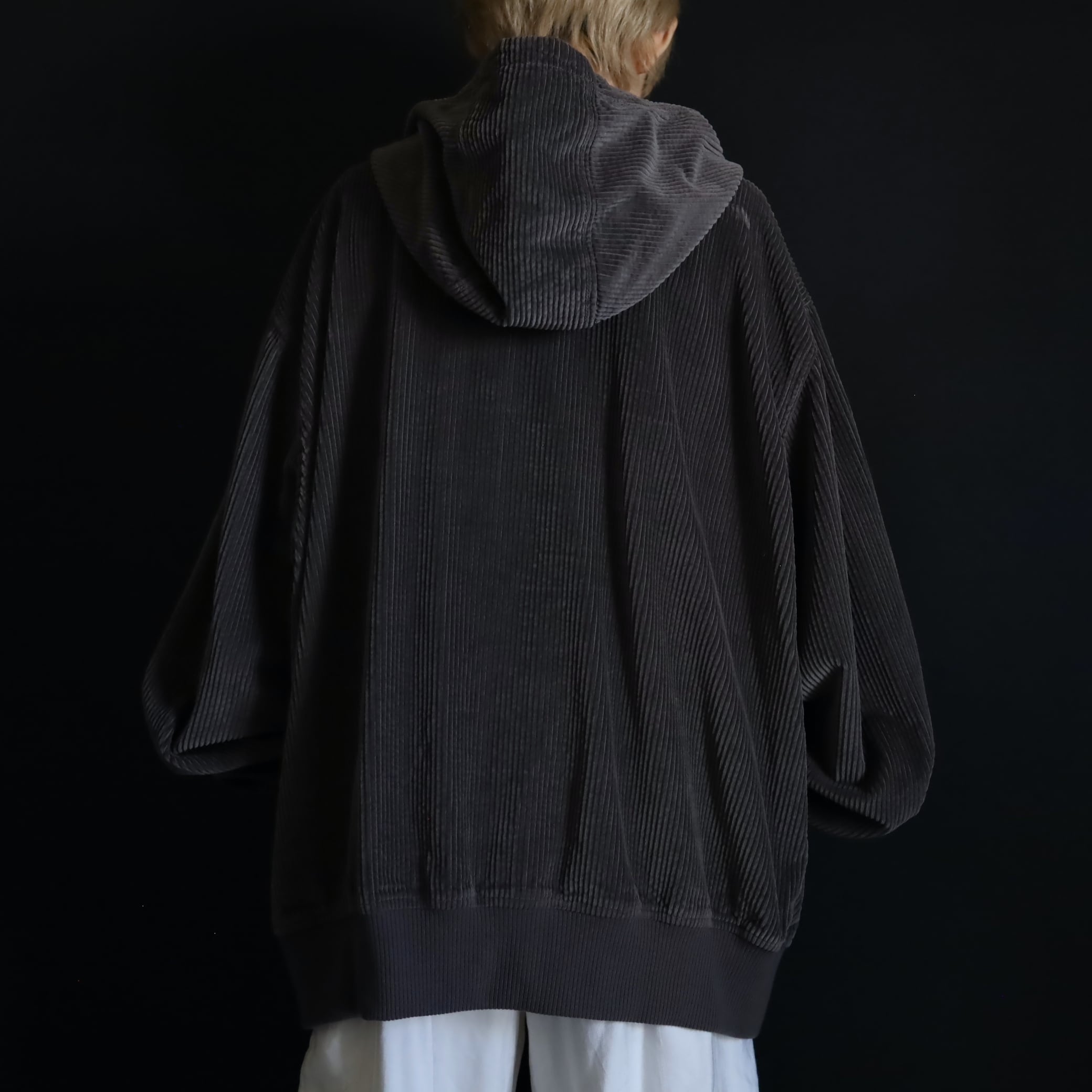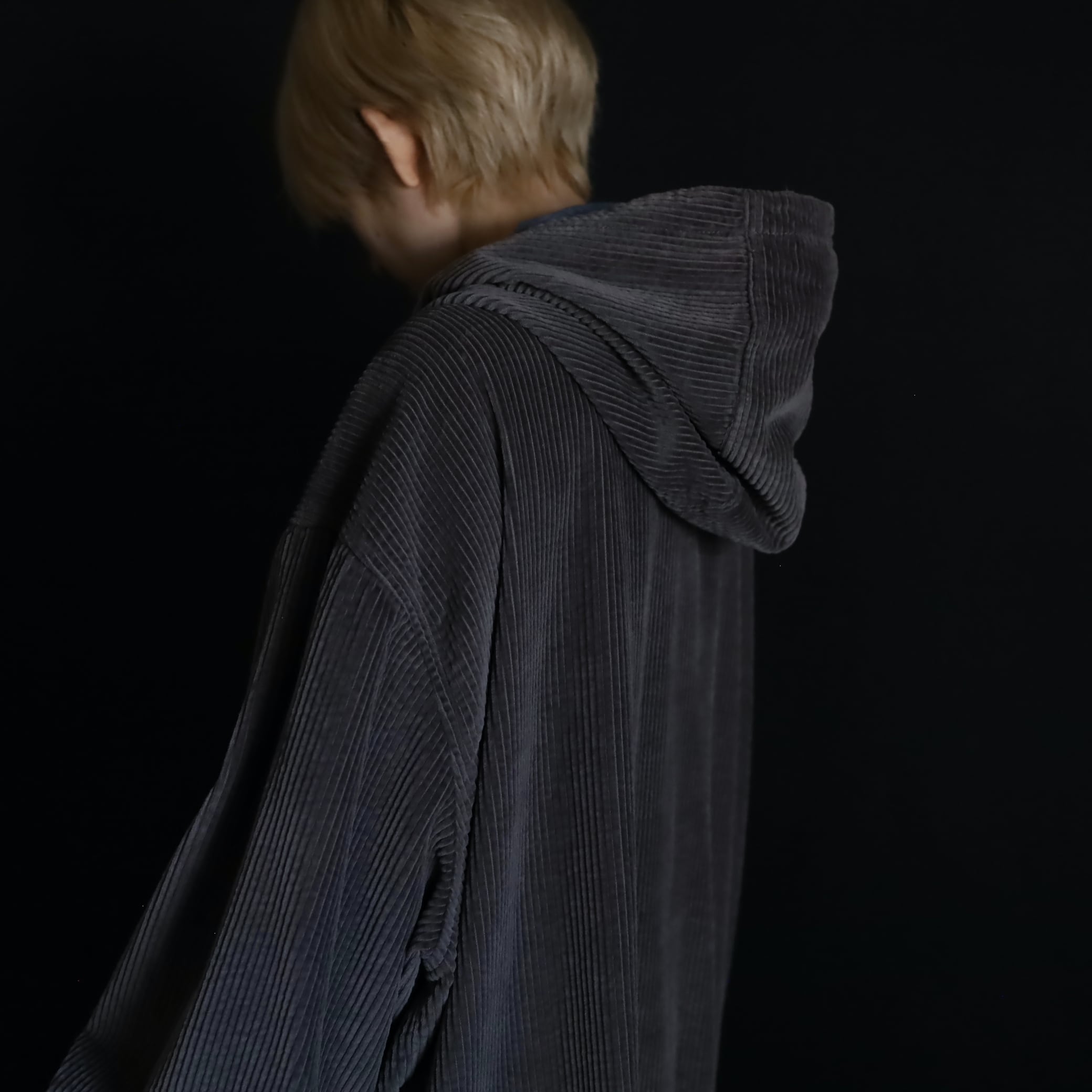 前立てがジップではなくボタン開閉という点と,コーデュロイの方向がボディとポケットで切替わる,ユーモア性を兼ね備えた1着.