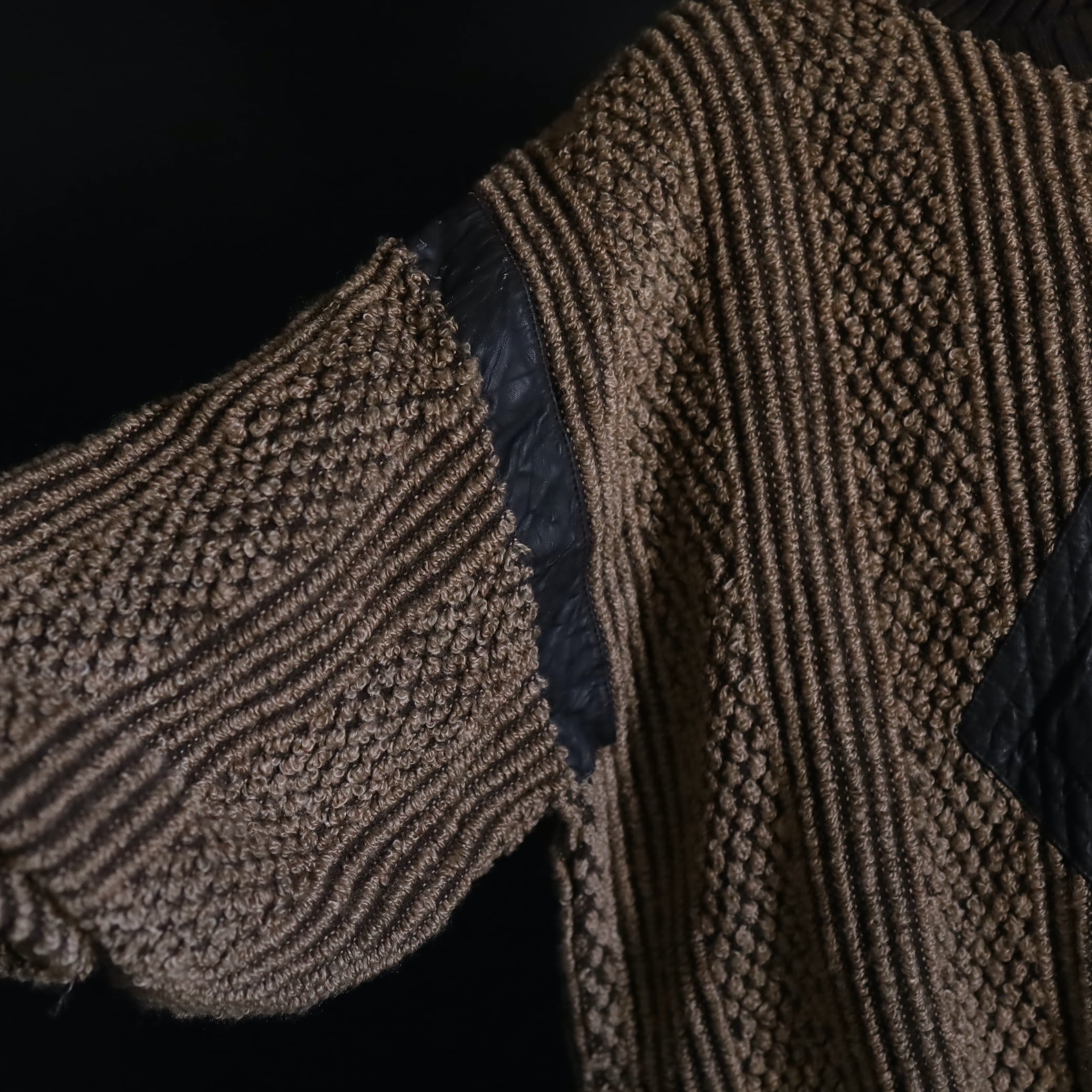 ニットの織りによる柄デザインと,レザーの質感による雰囲気の変化が絶妙な一枚.